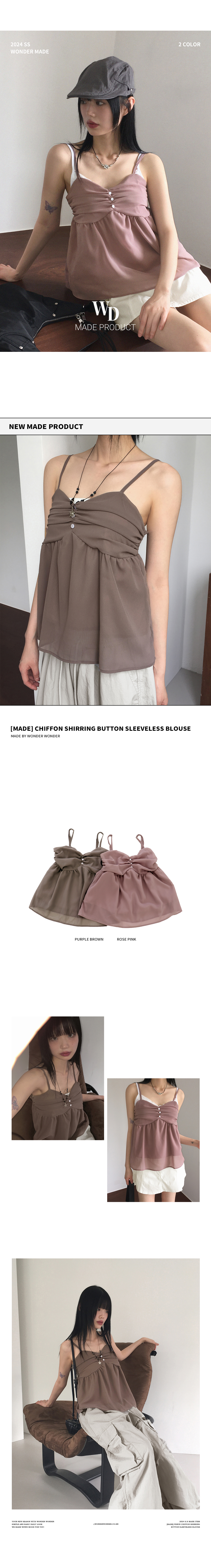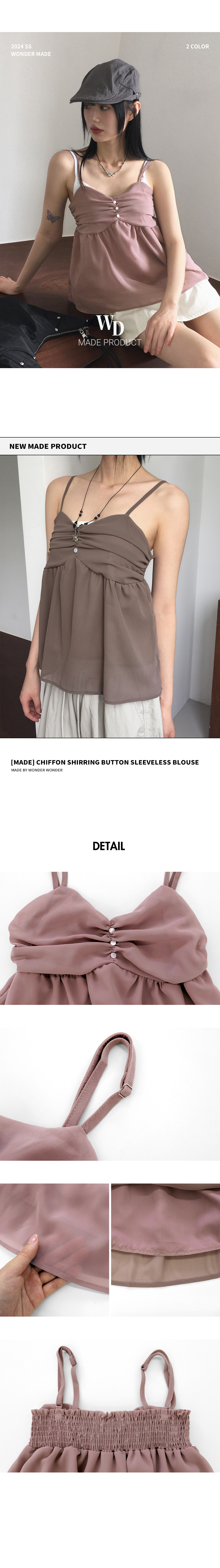 [original]シフォンシャーリングボタンノースリーブブラウス