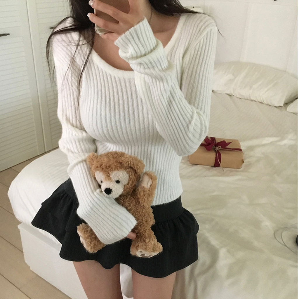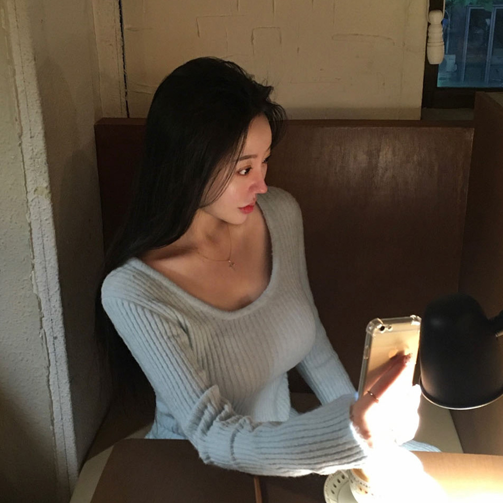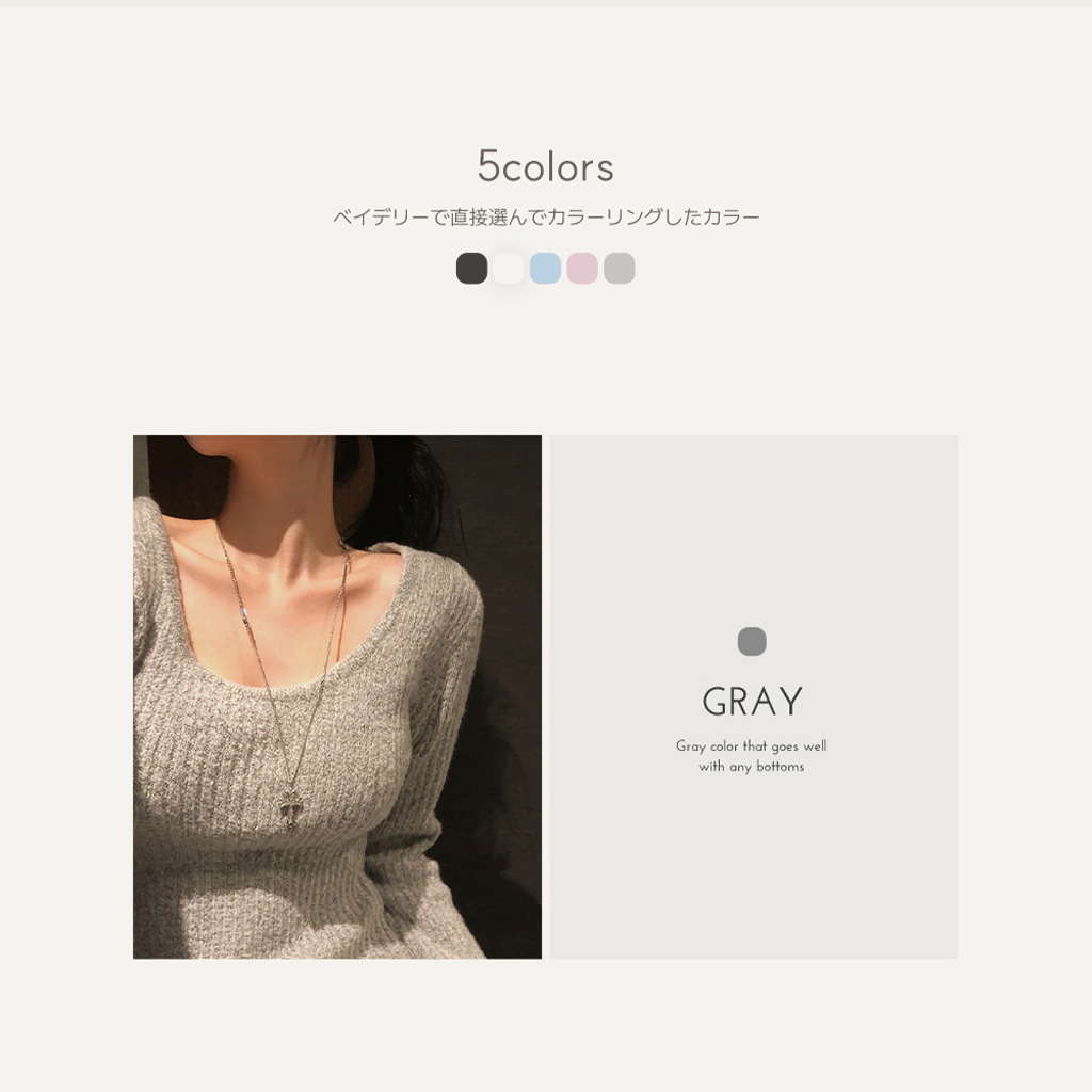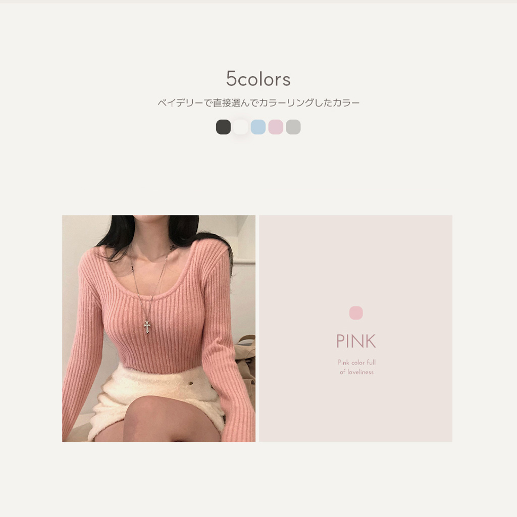 ラウンドネックで鎖骨ラインが露出し、華奢なムードをさらに高めます!