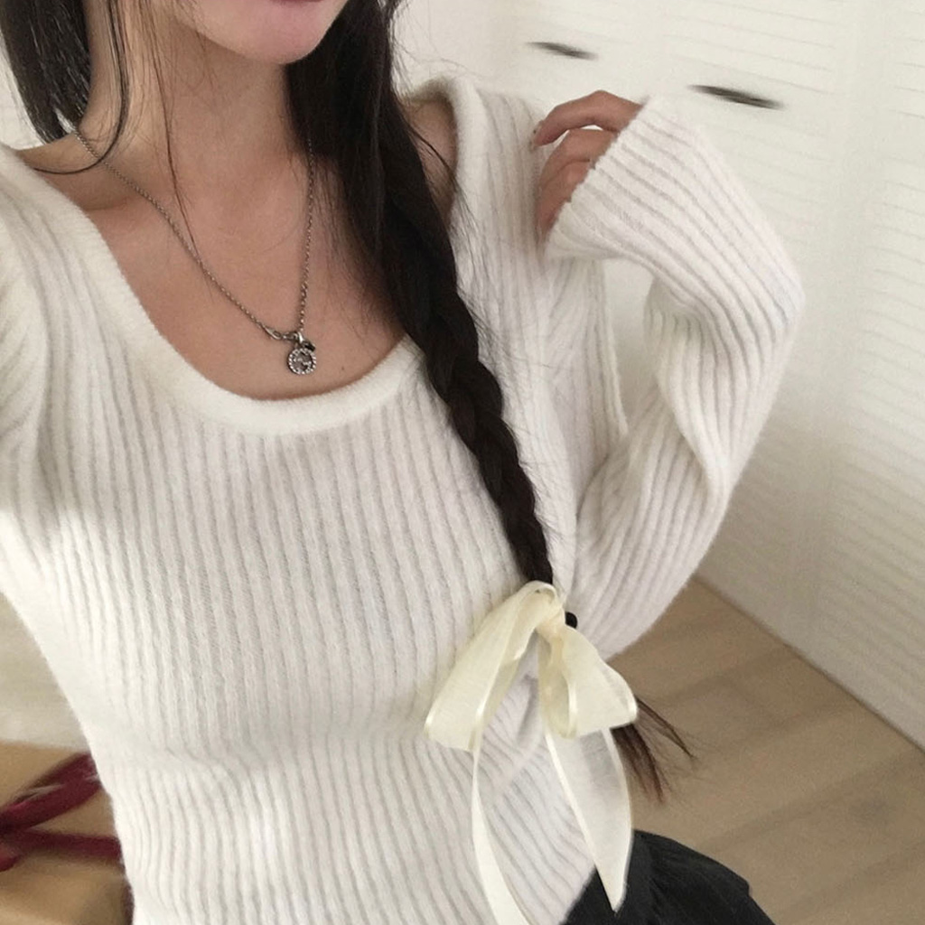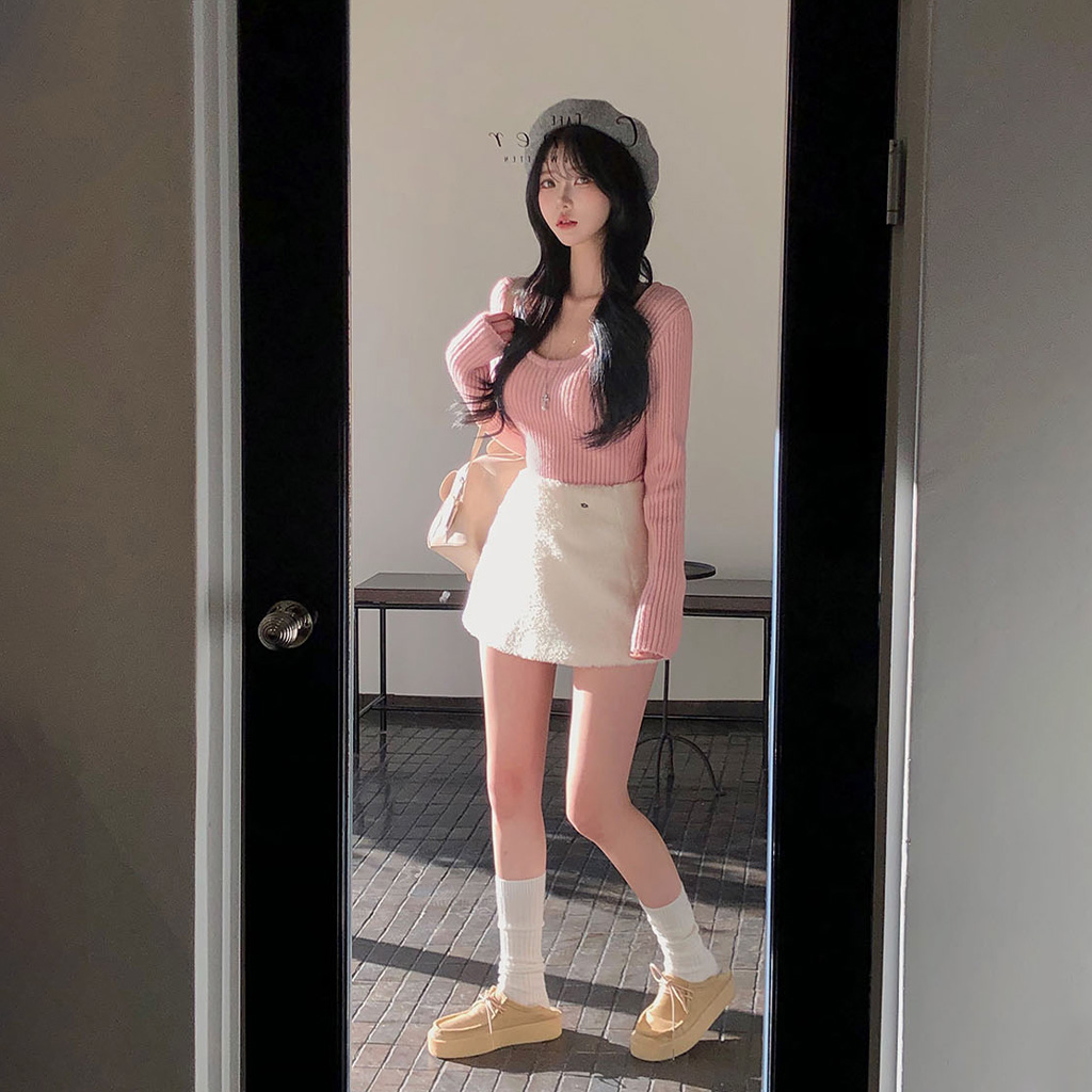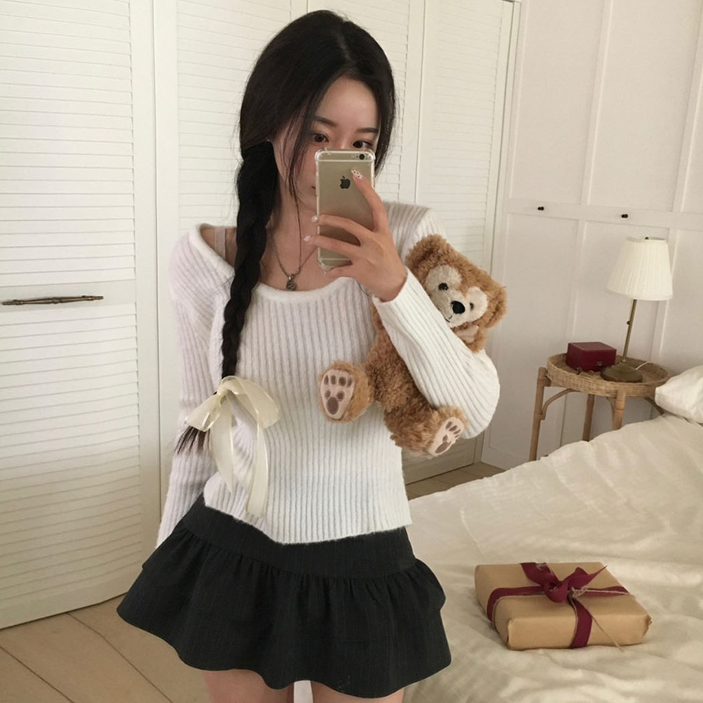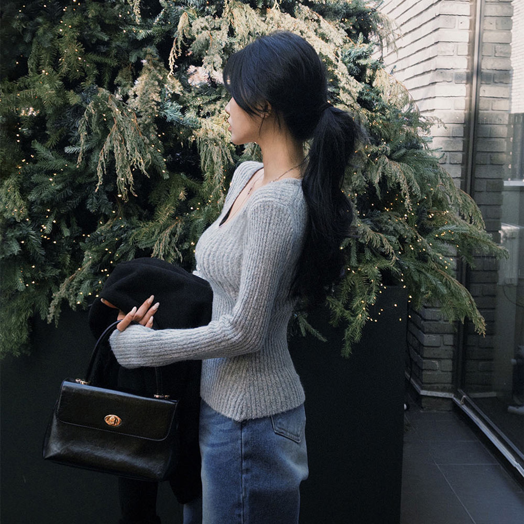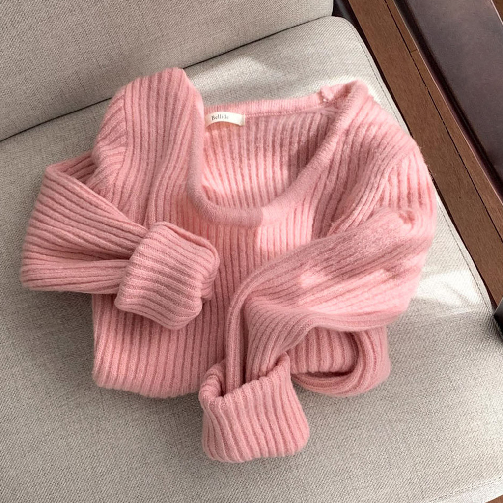 ラウンドネックで鎖骨ラインが露出し、華奢なムードをさらに高めます!