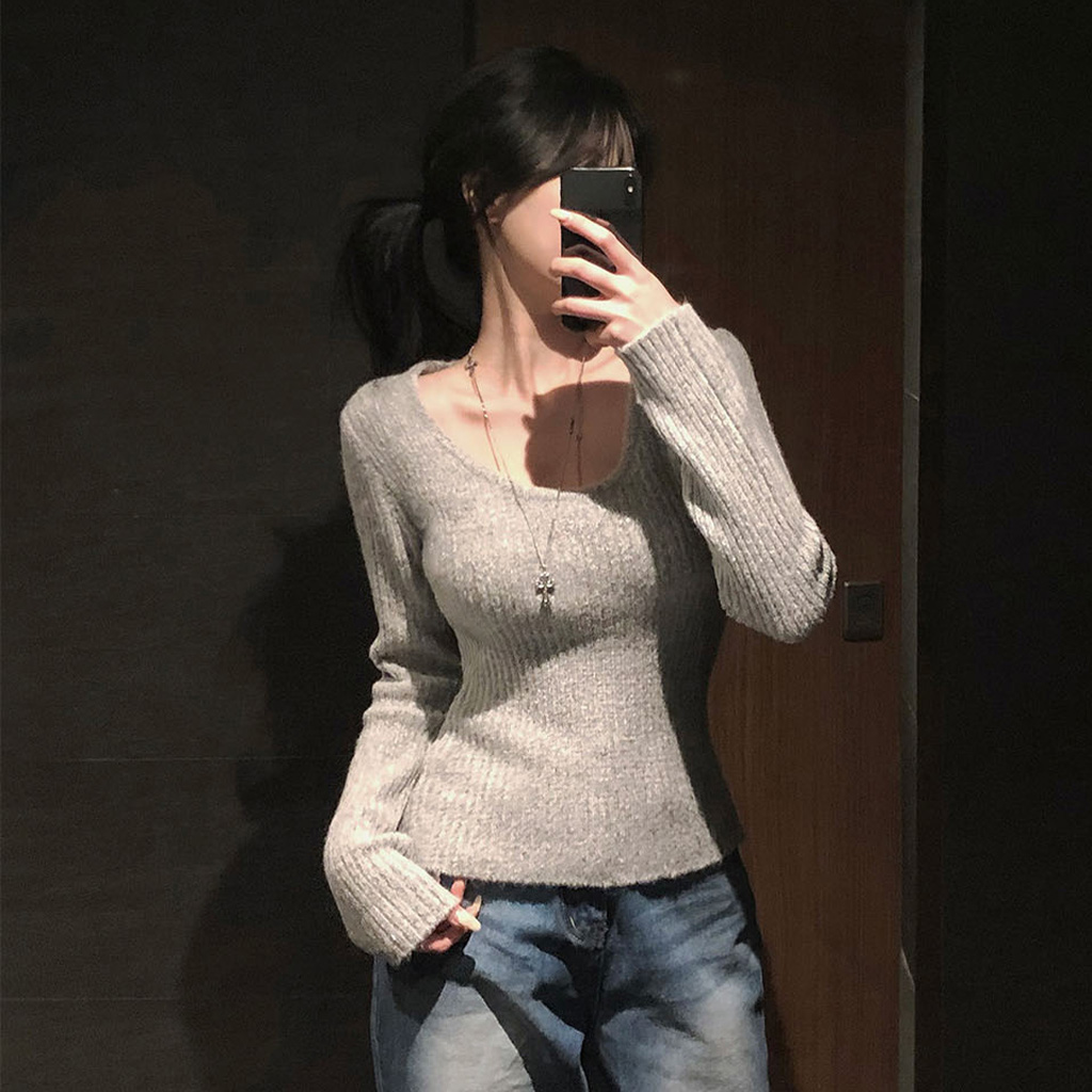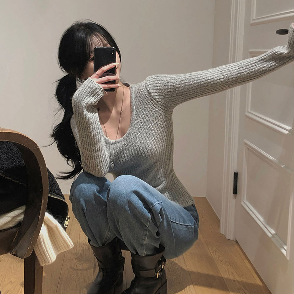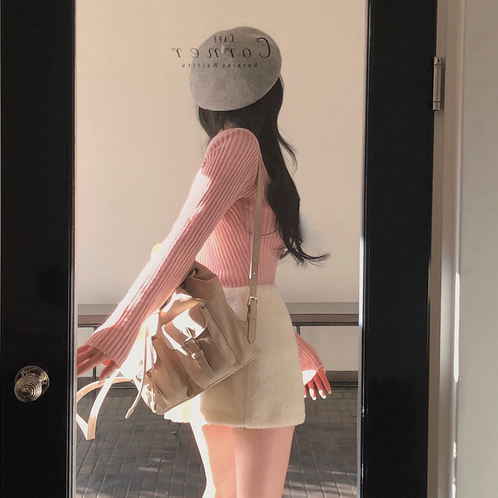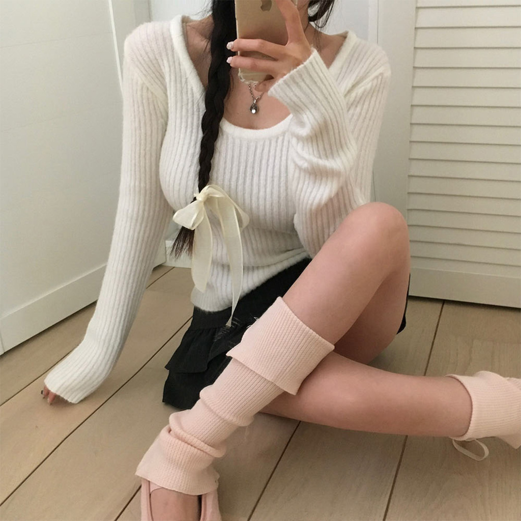 ラウンドネックで鎖骨ラインが露出し、華奢なムードをさらに高めます!