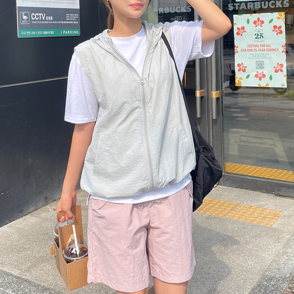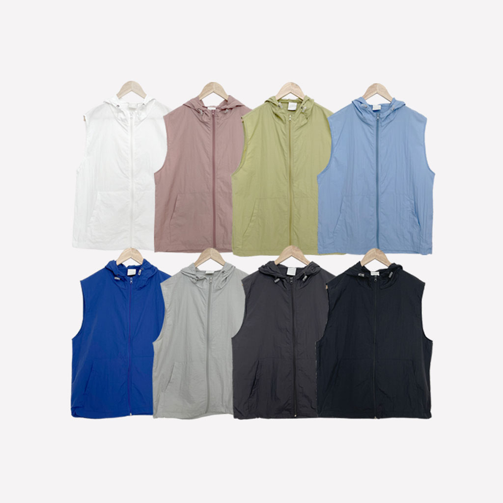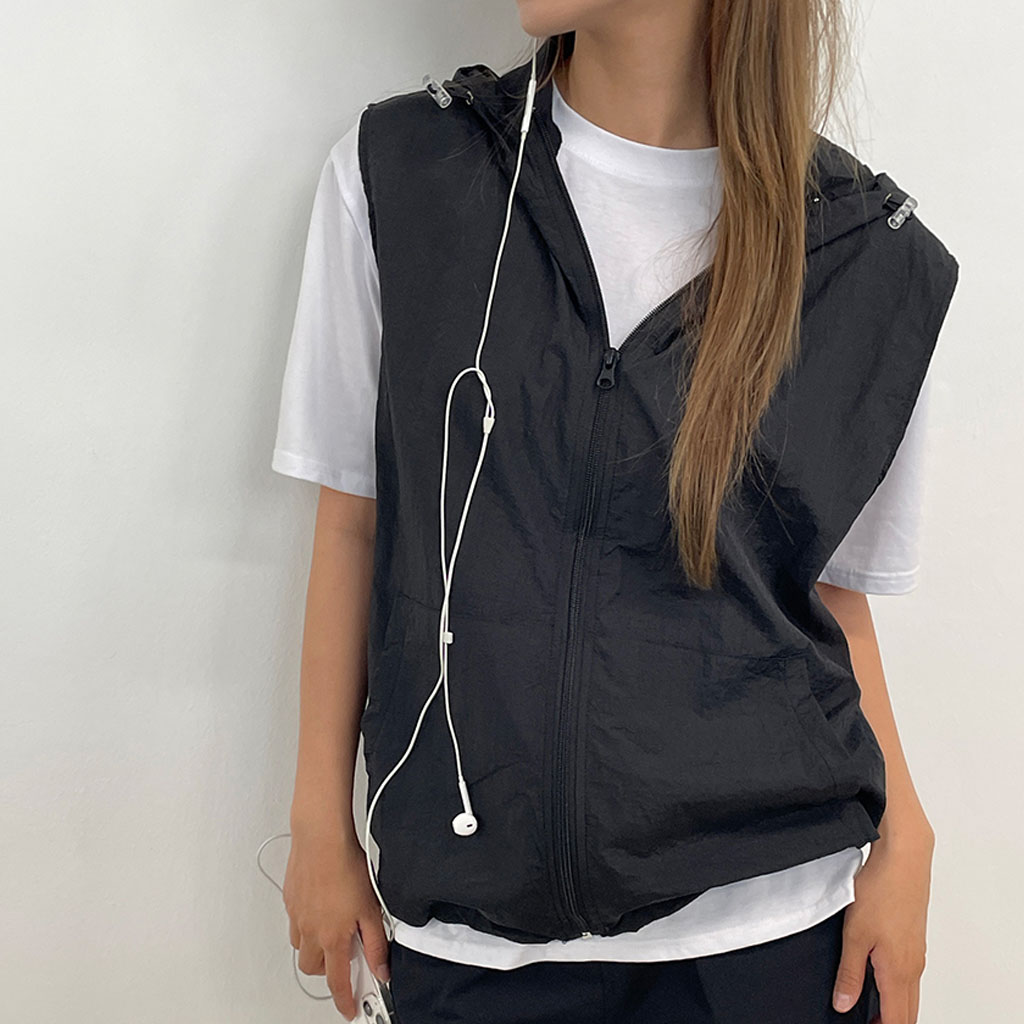 [unisex/8color]ナイロンストリングアノラックベストパーカー