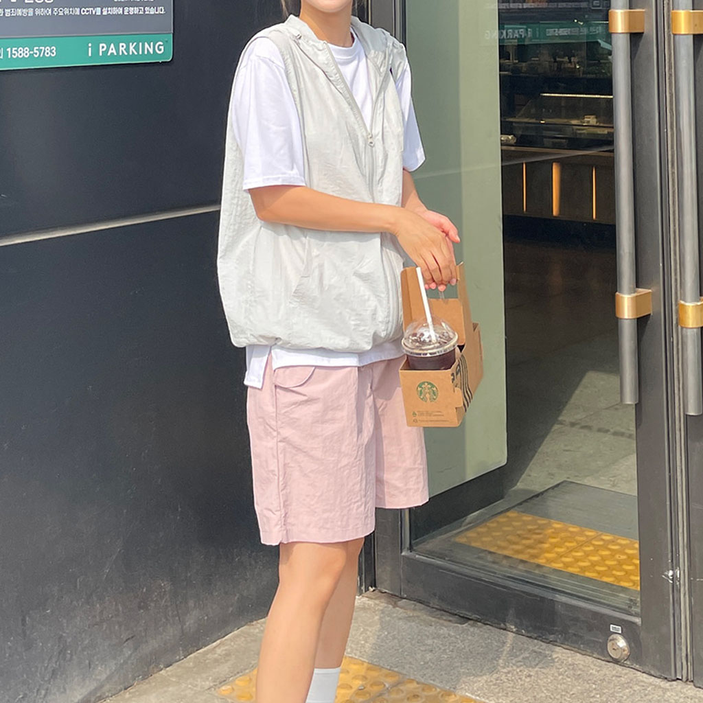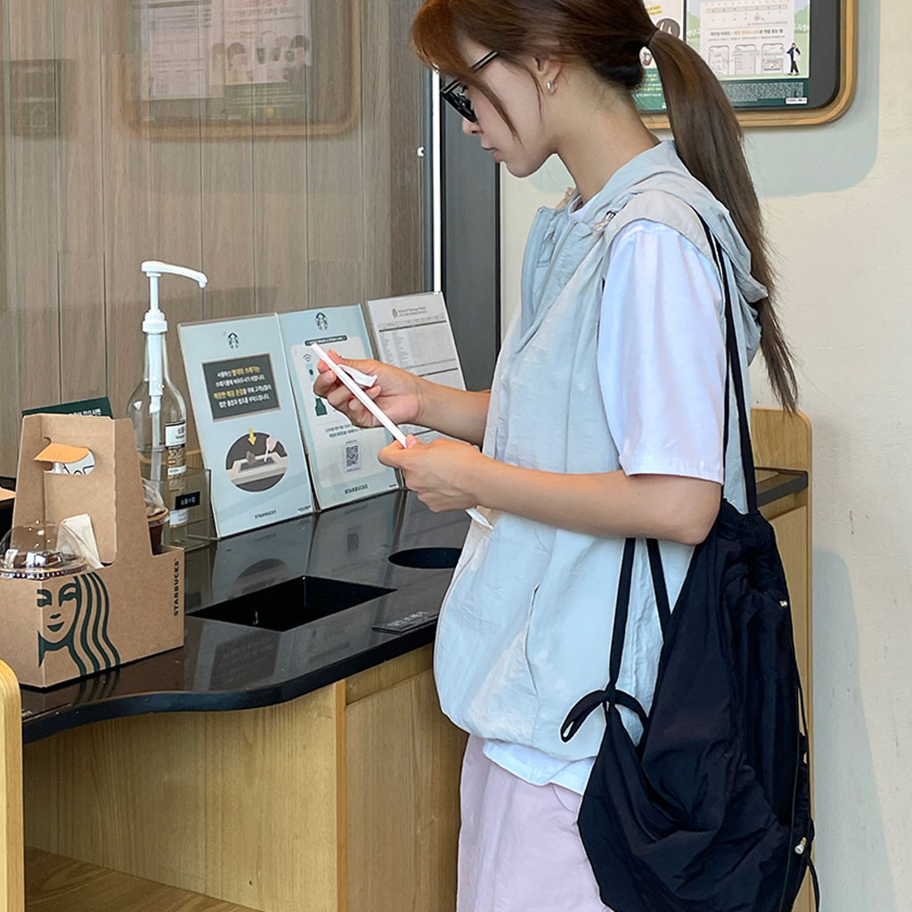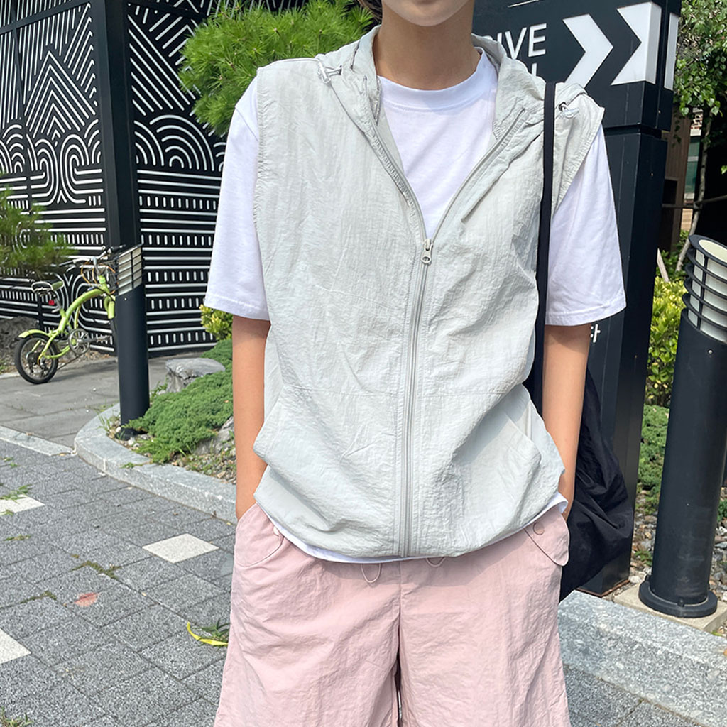[unisex/8color]ナイロンストリングアノラックベストパーカー