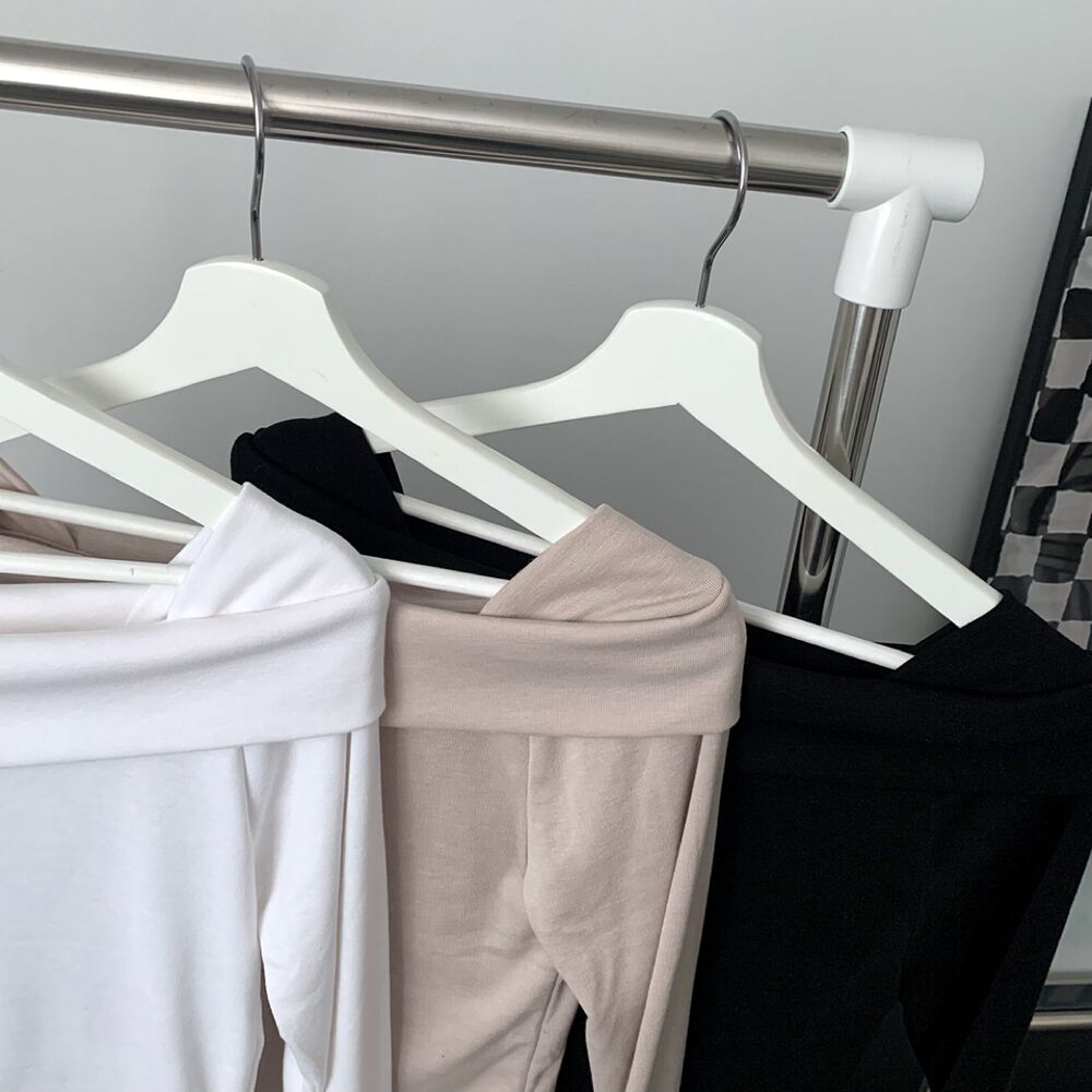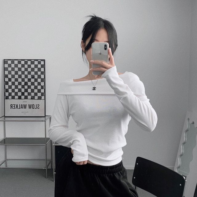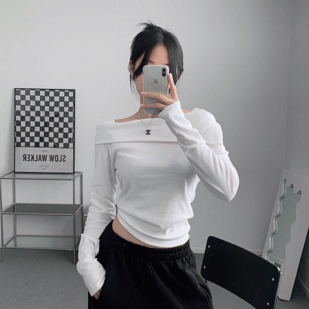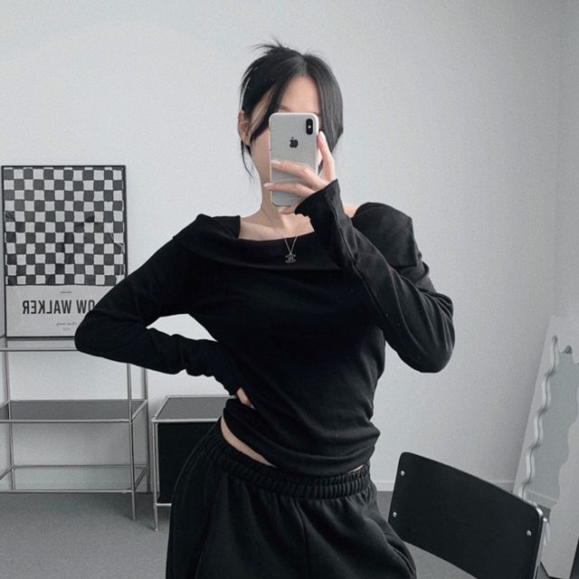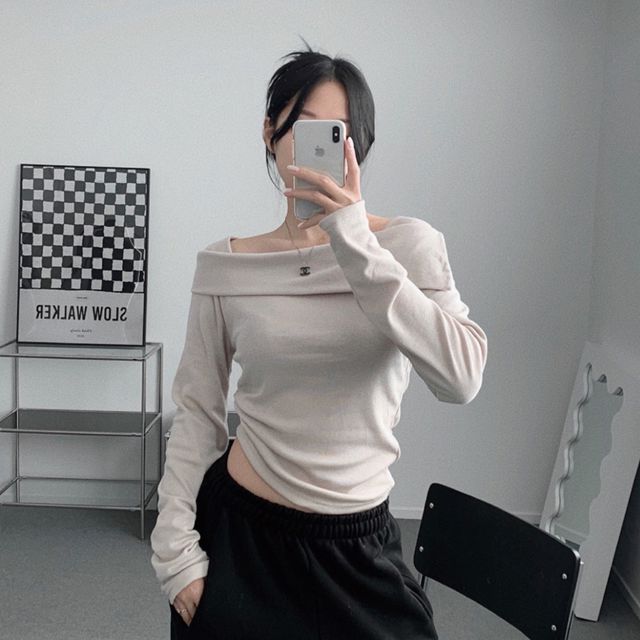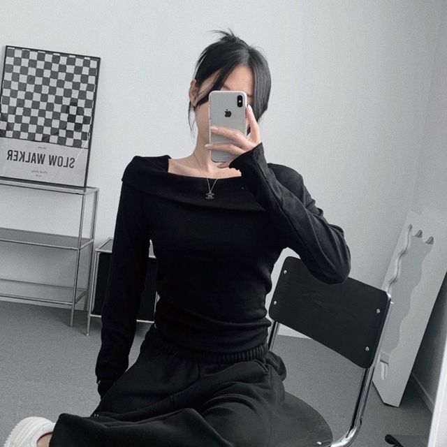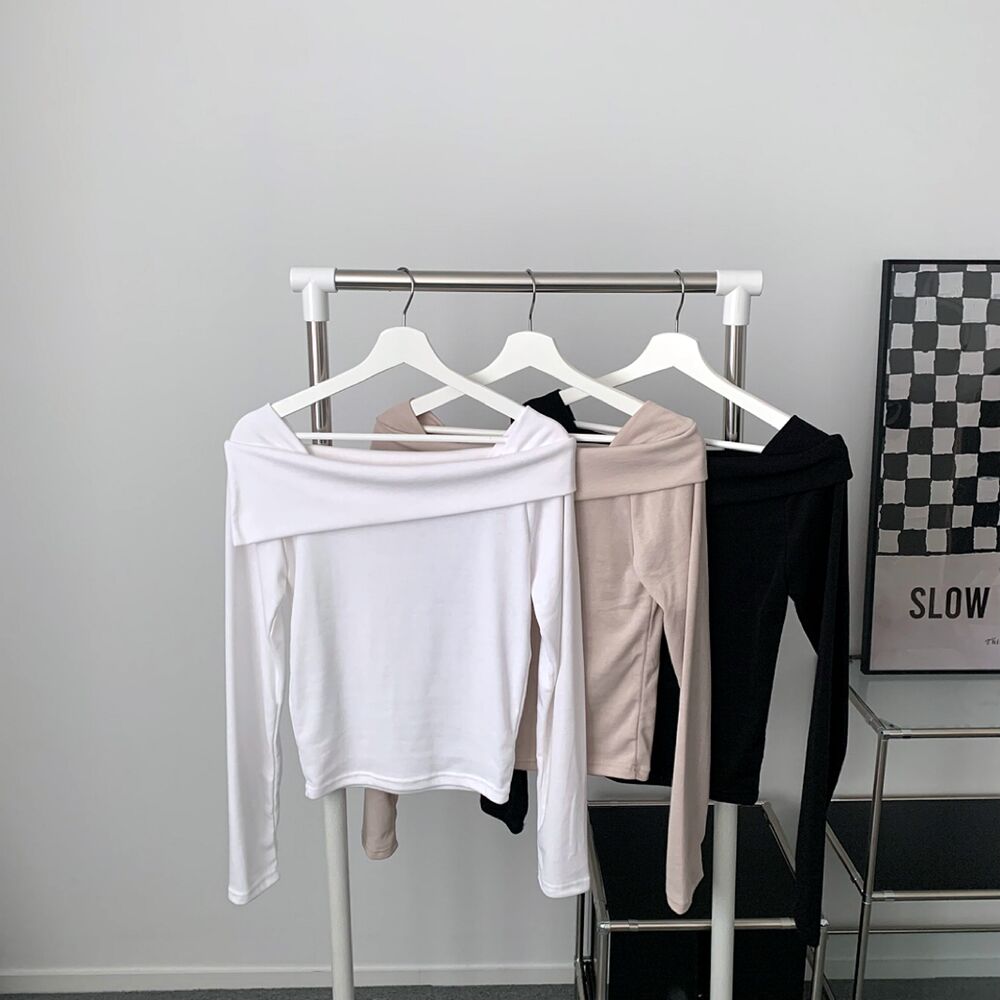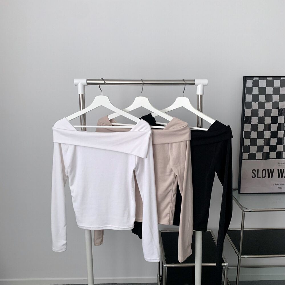 [裏起毛] アンバランススクエアネック長袖Tシャツ (3color)