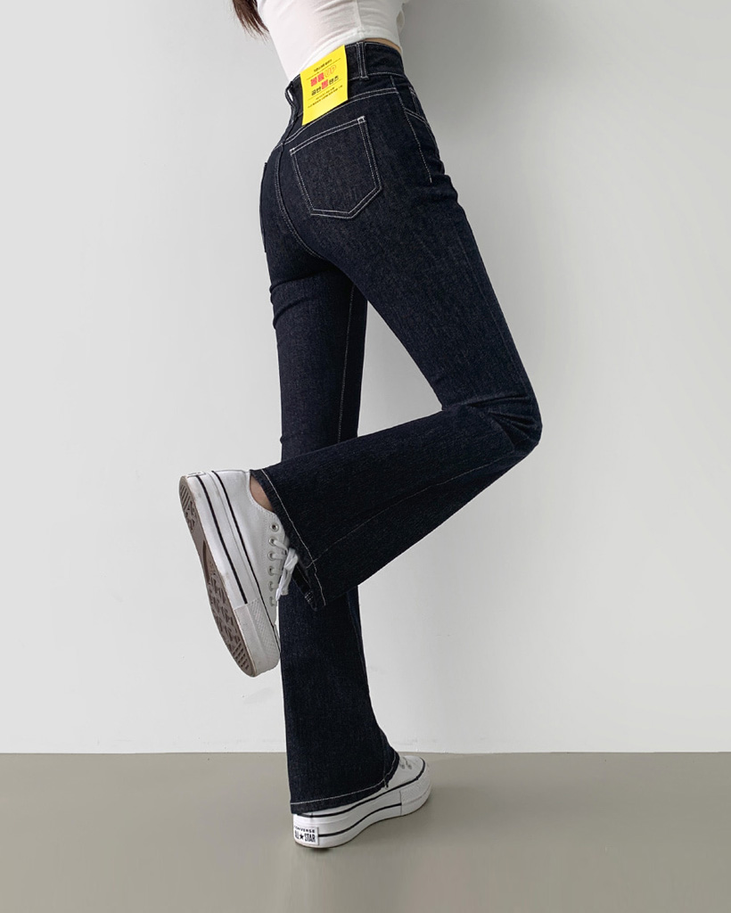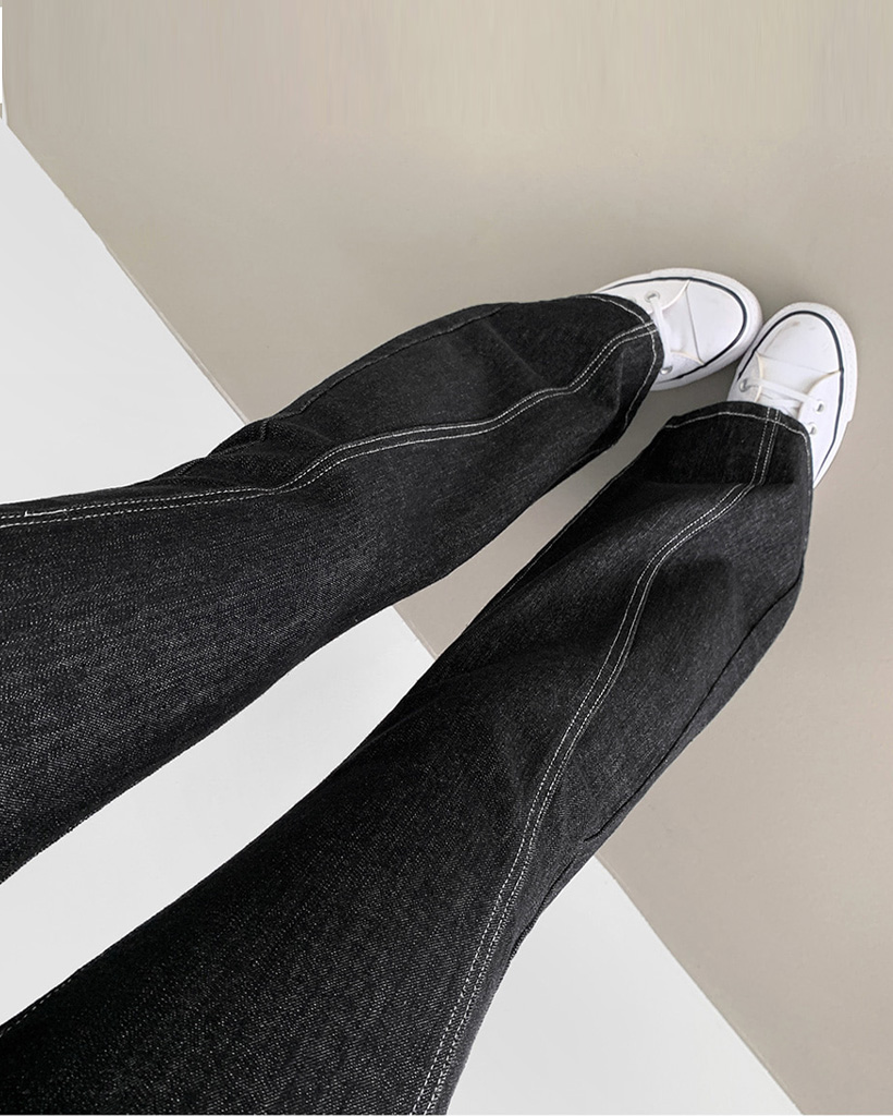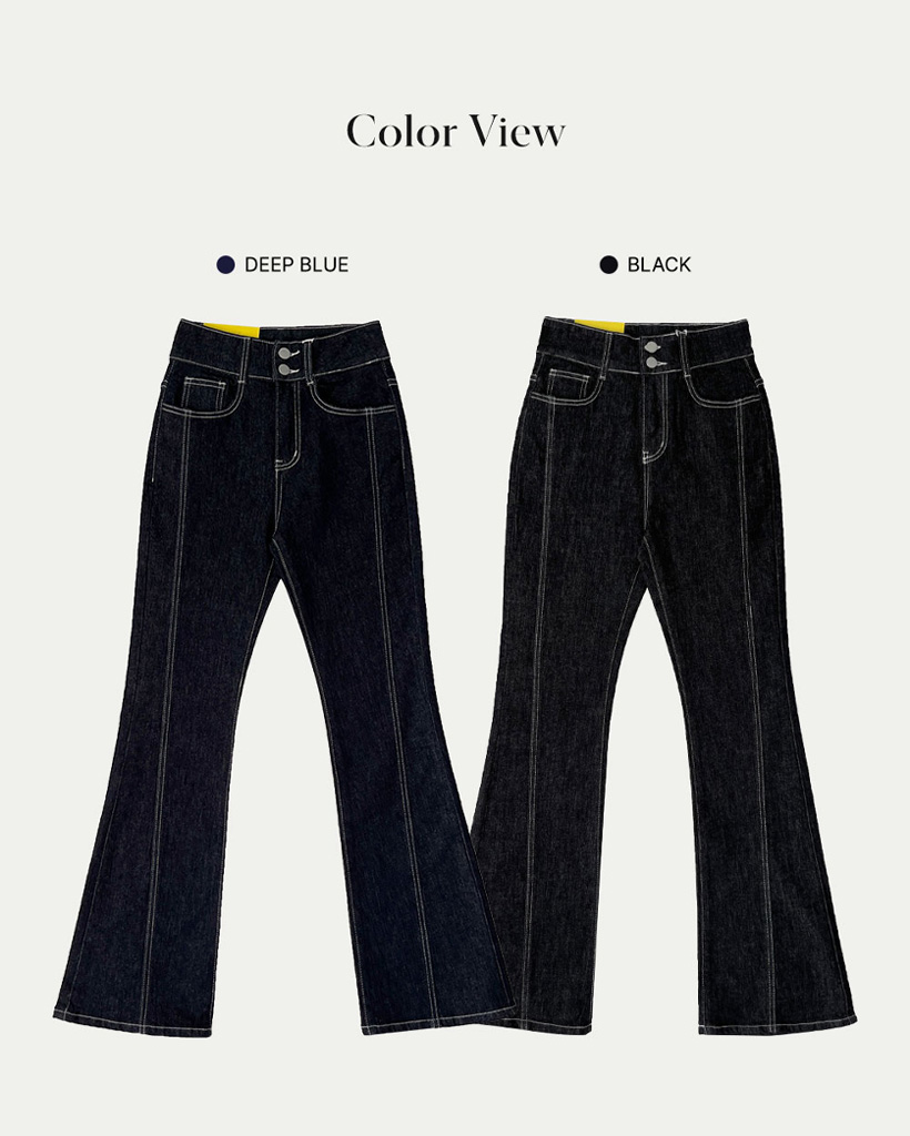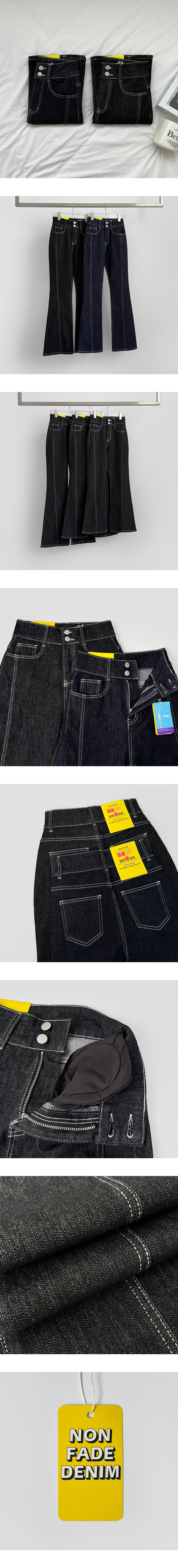 ローデニム斜めストライプスリットスパンブーツカットデニムパンツ