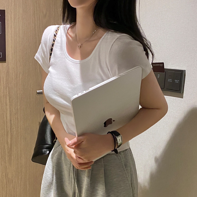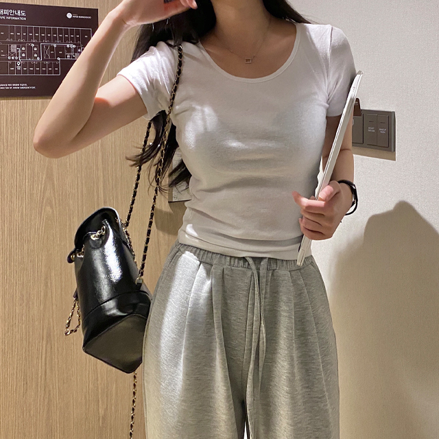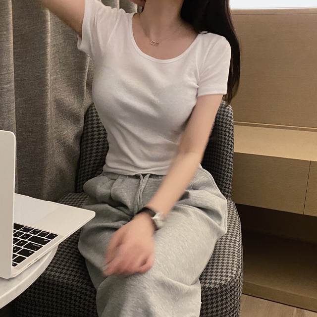 ピンクレイヤードインナーUネック半袖Tシャツ
