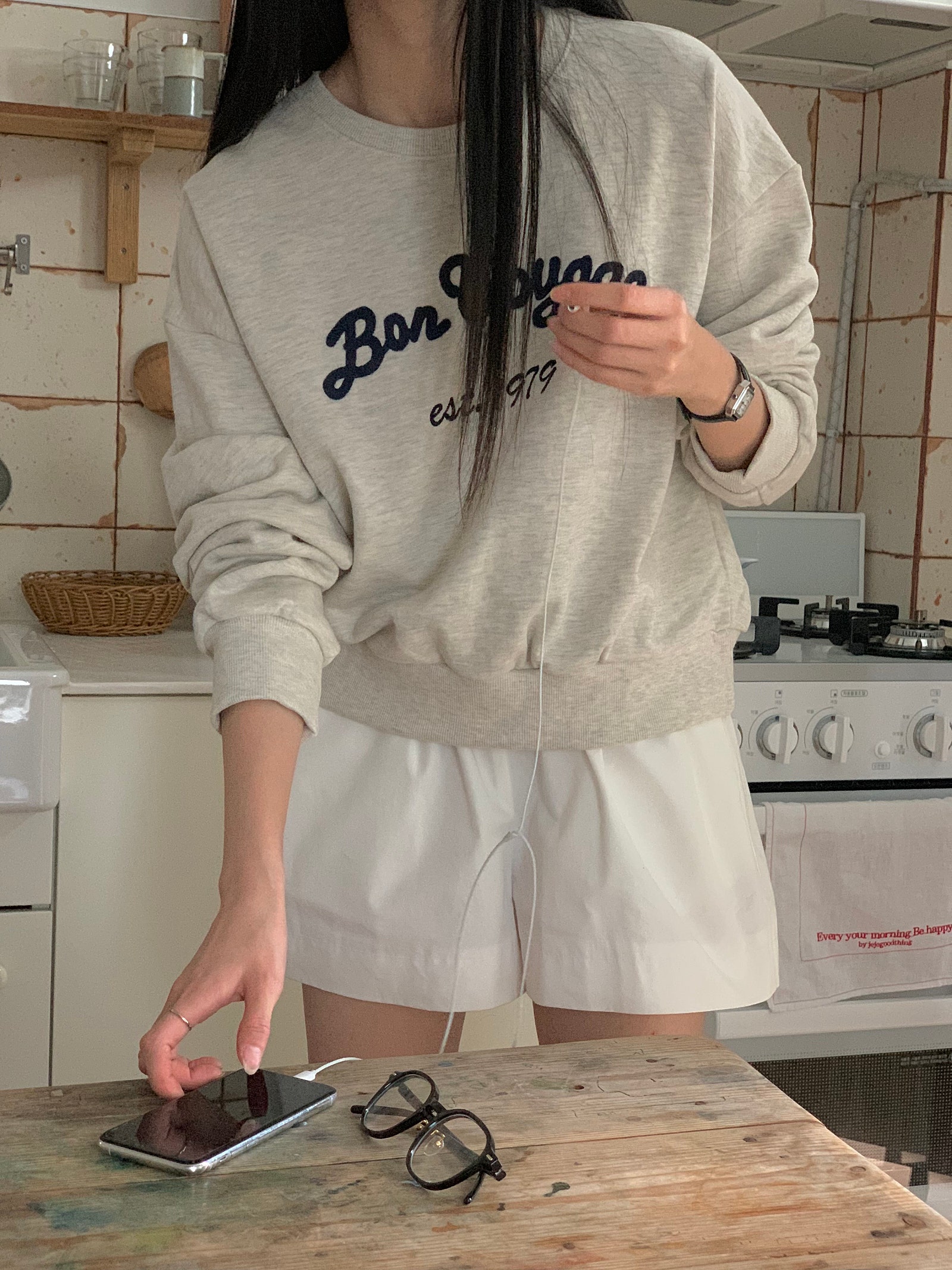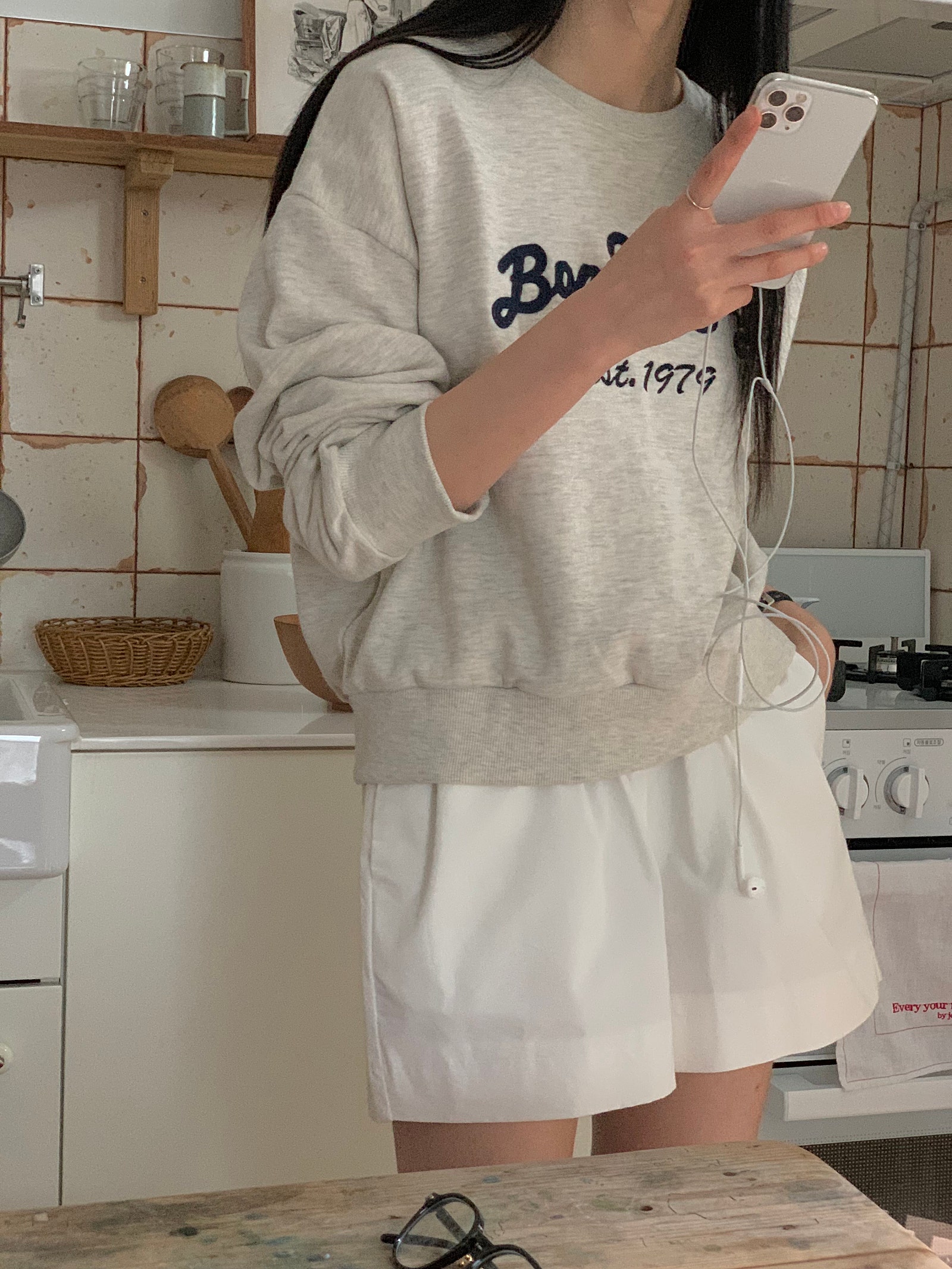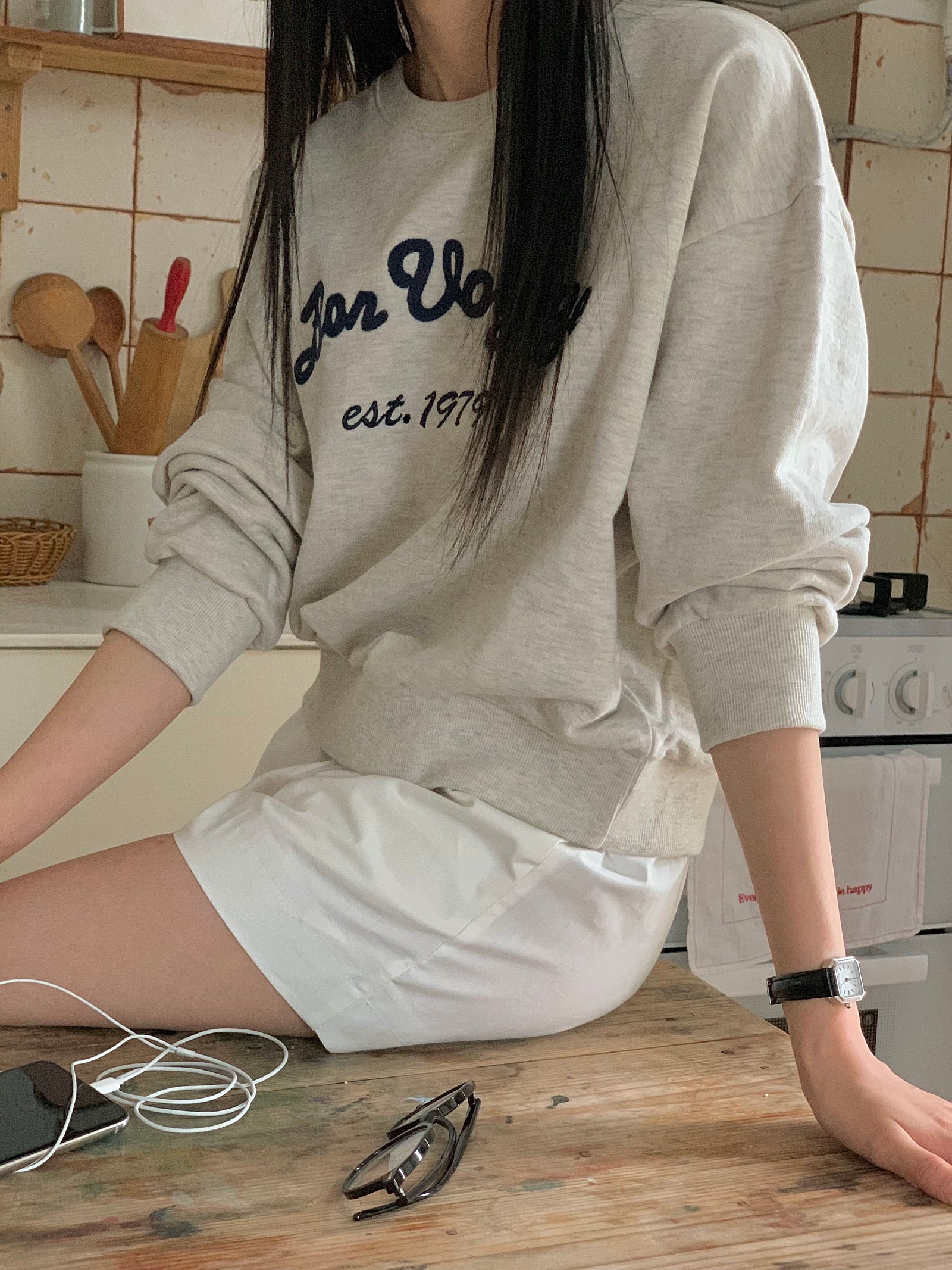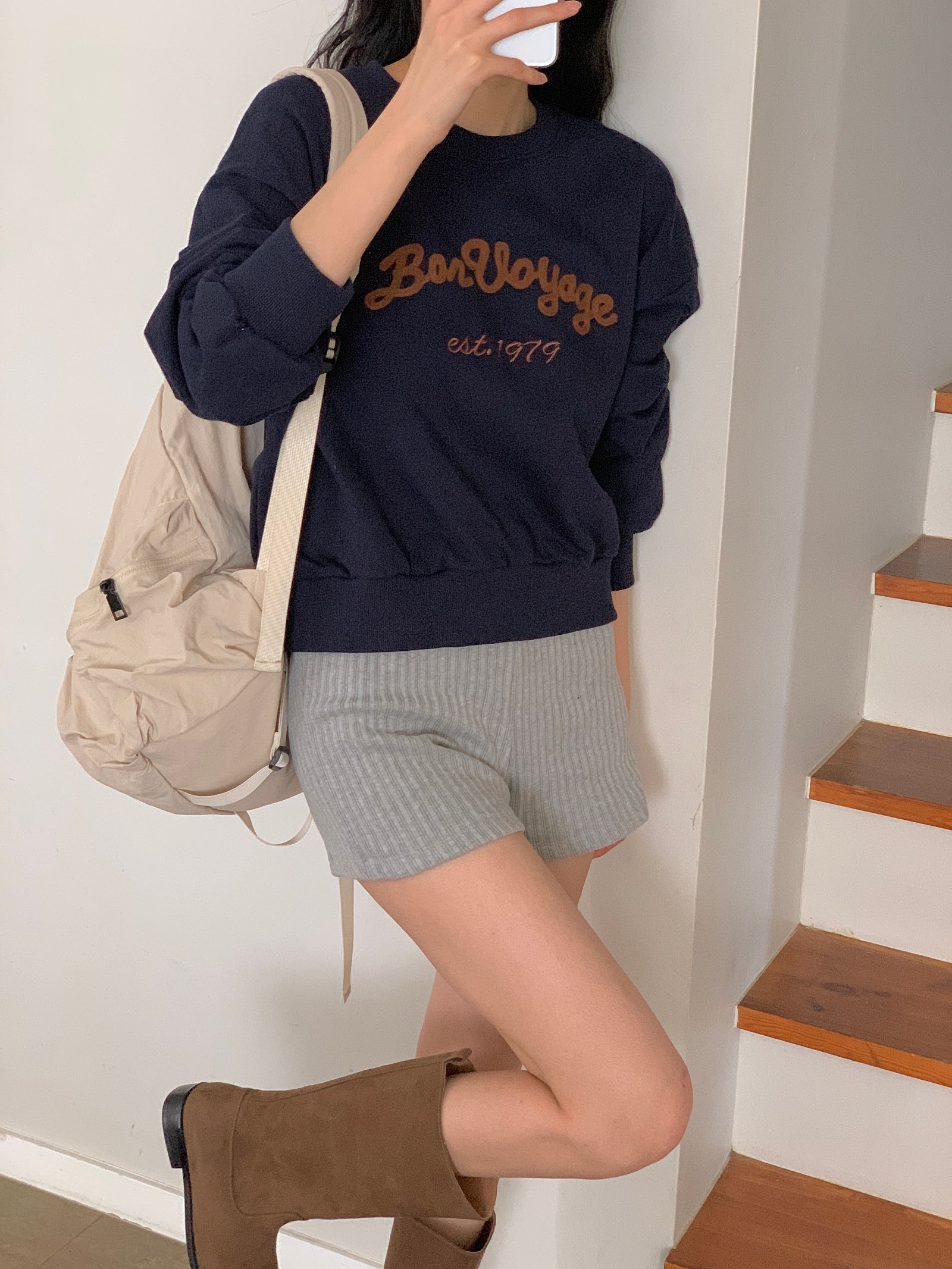 ルーズフィットレタリングステッチクロップドスウェットシャツ
