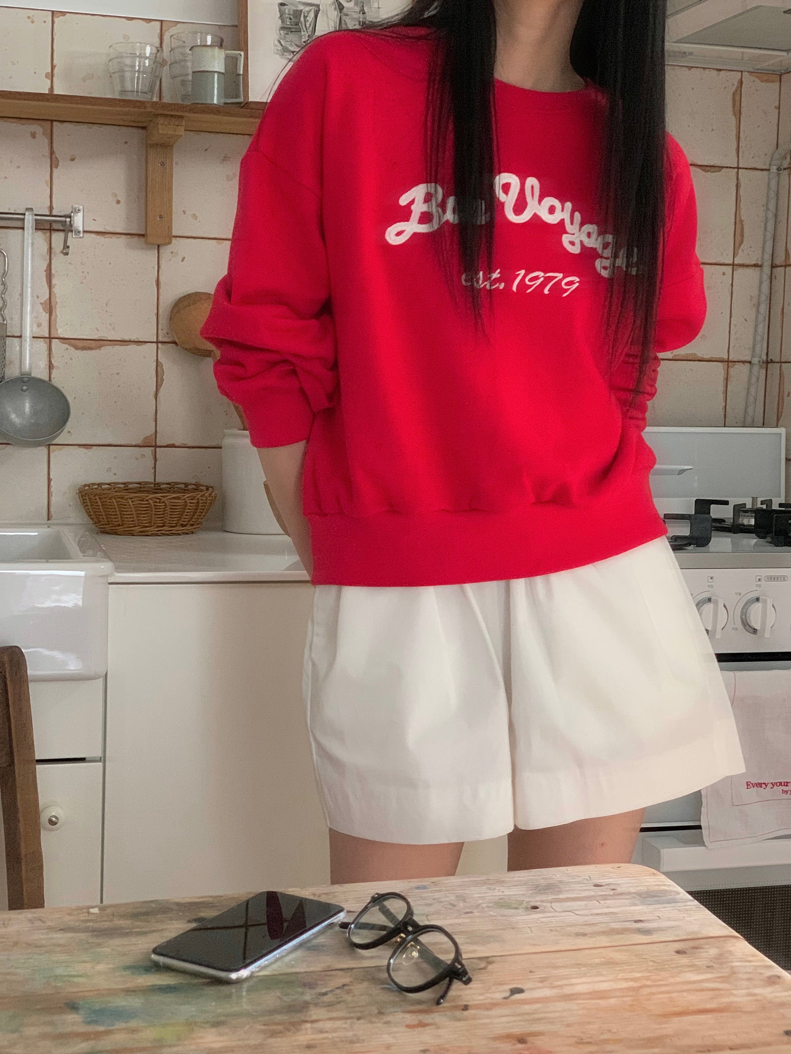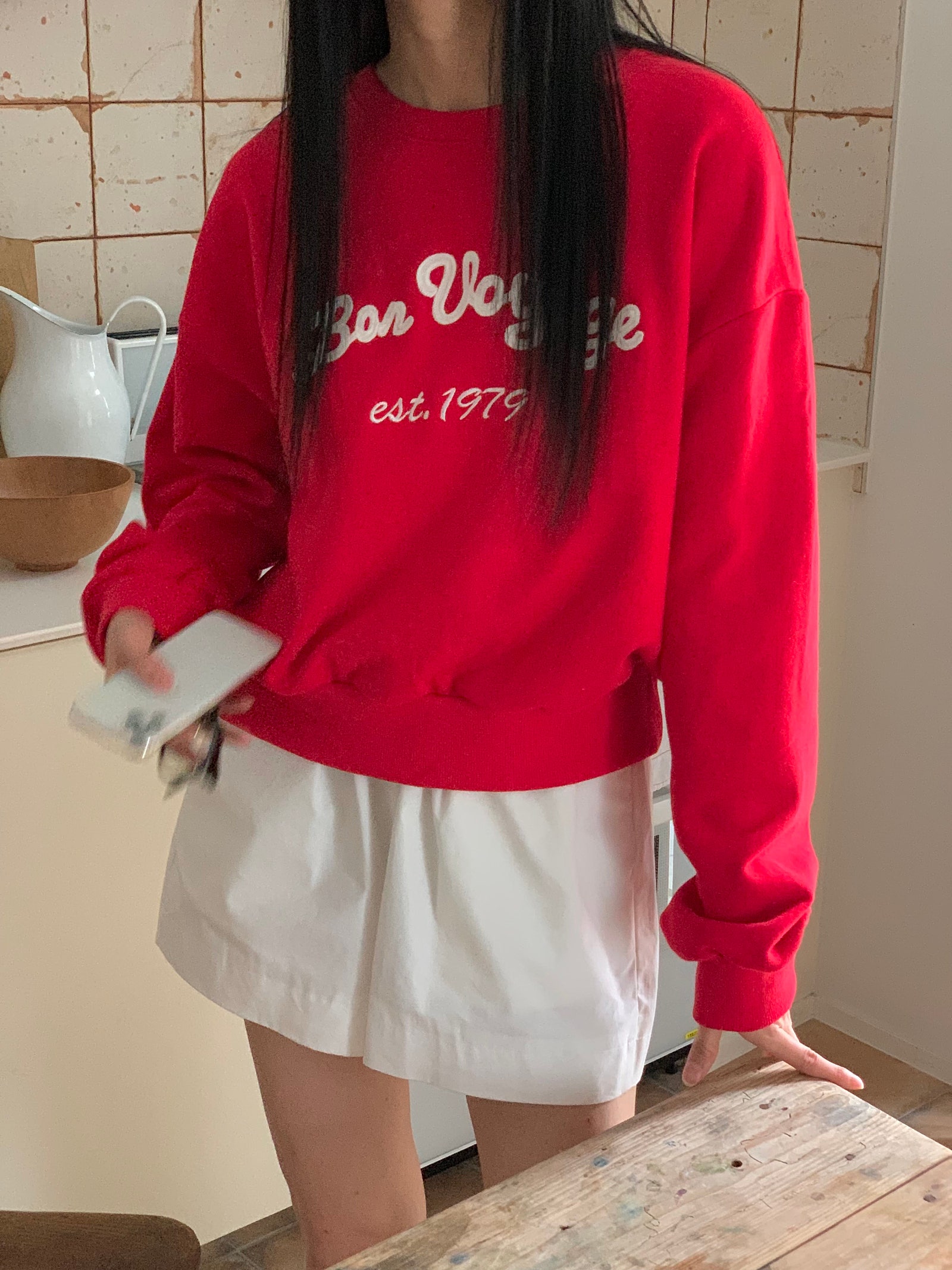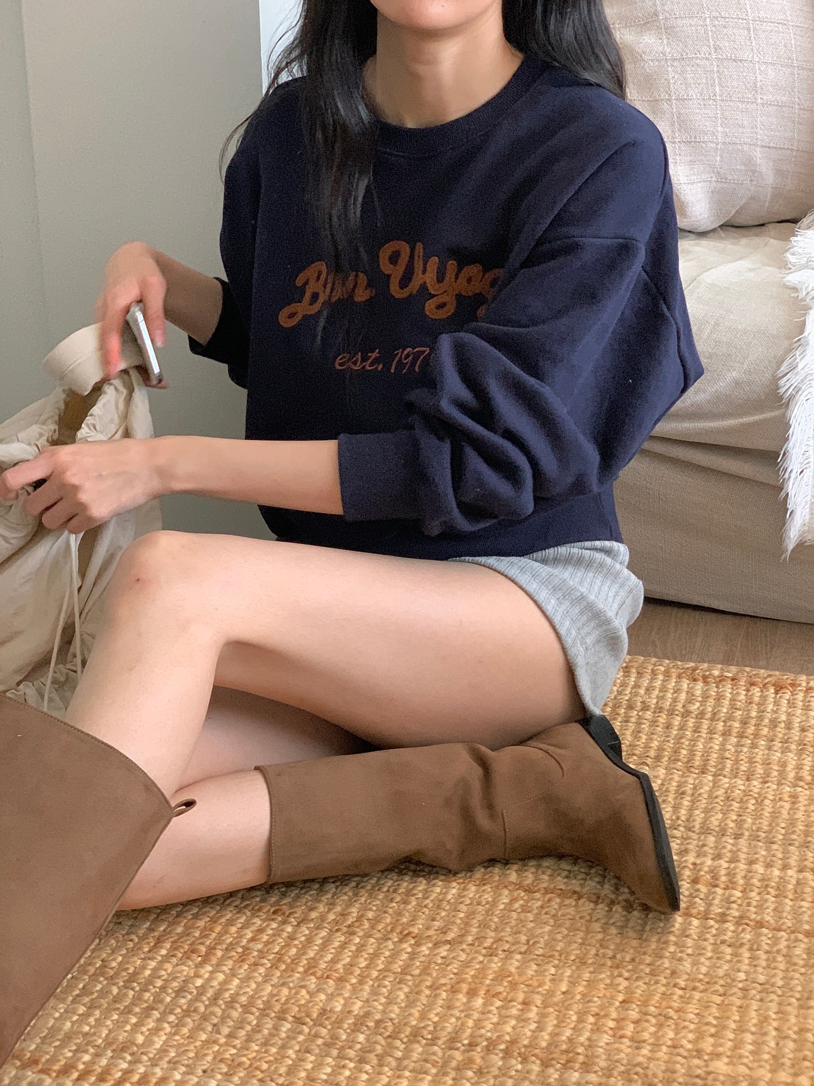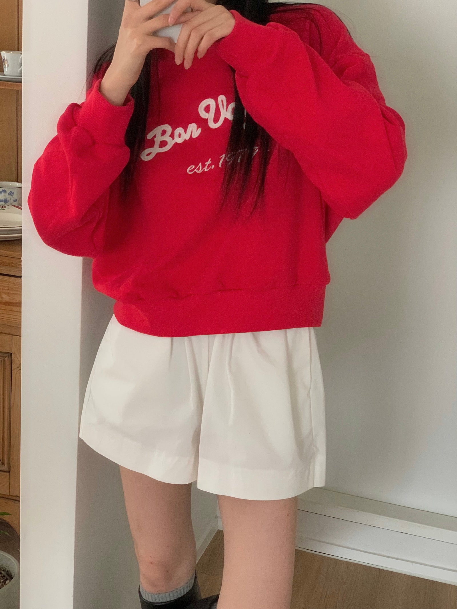 ルーズフィットレタリングステッチクロップドスウェットシャツ