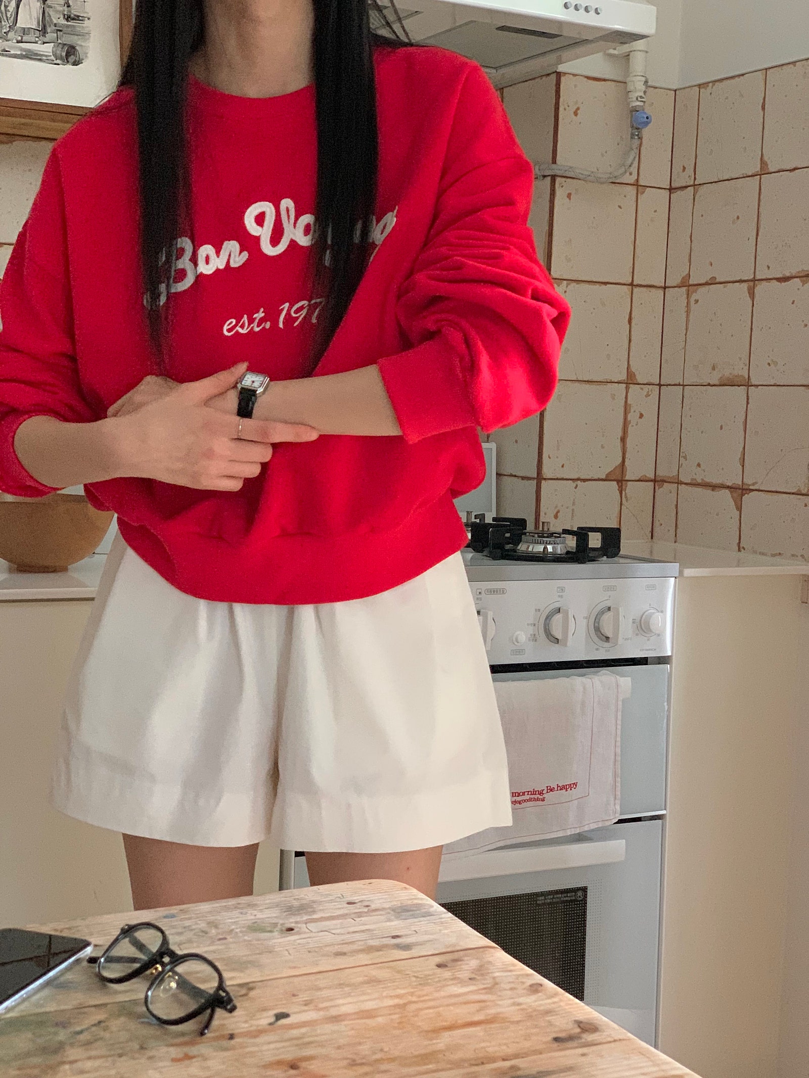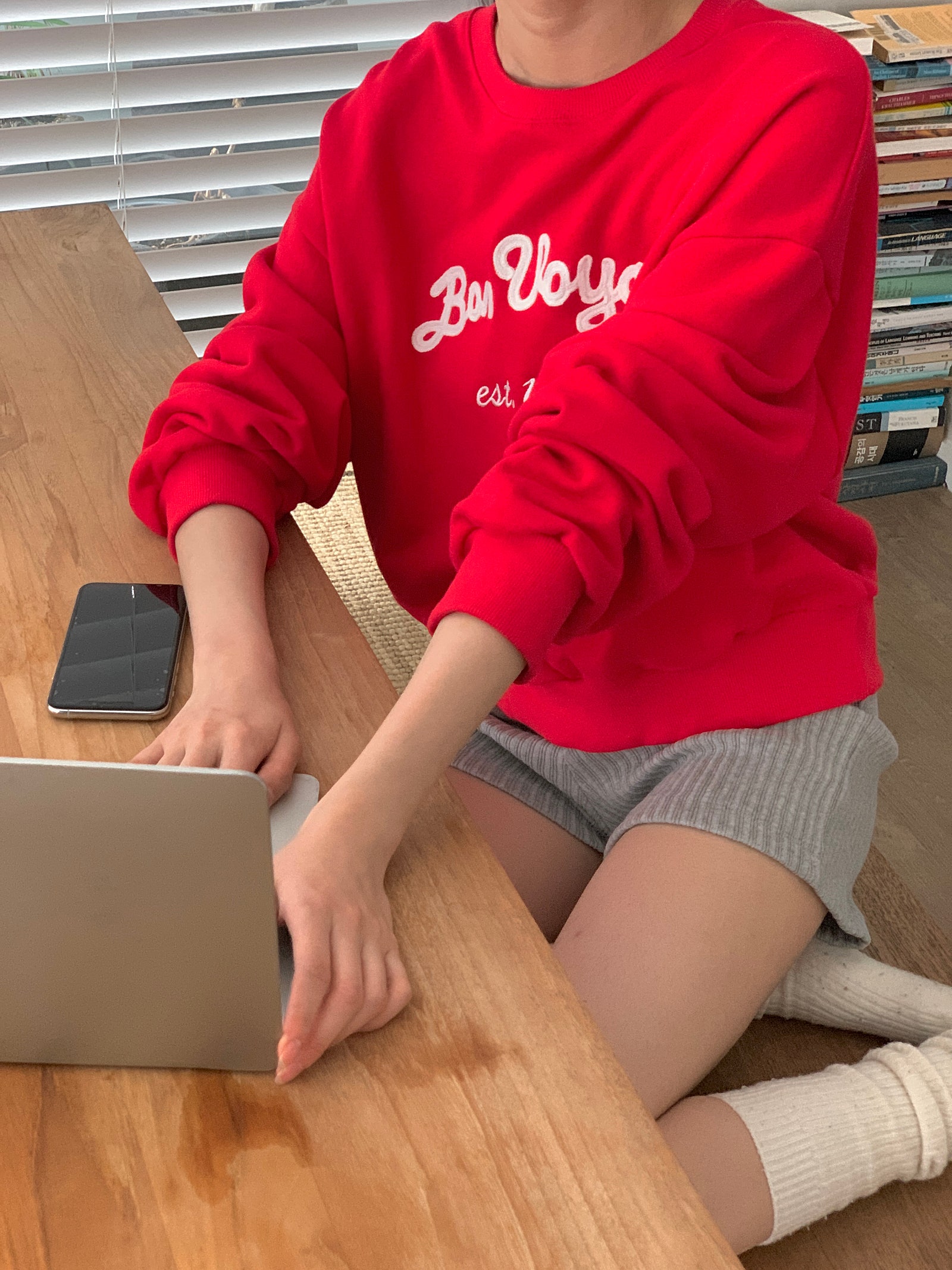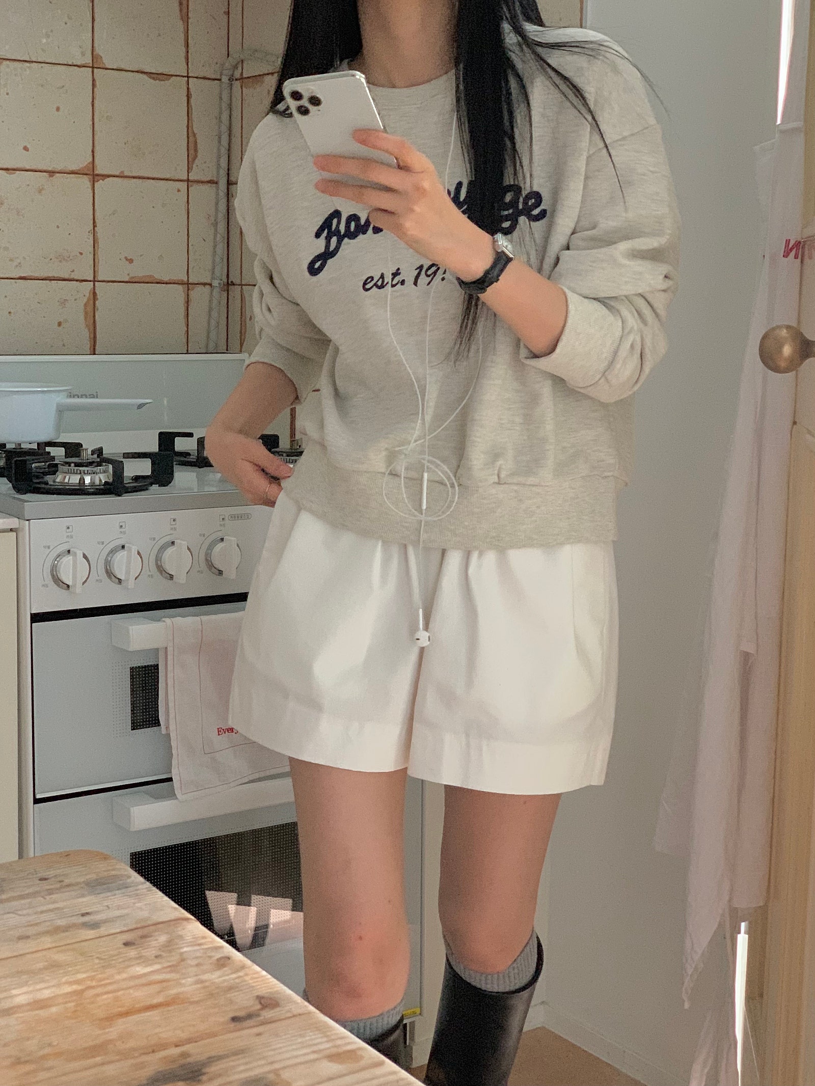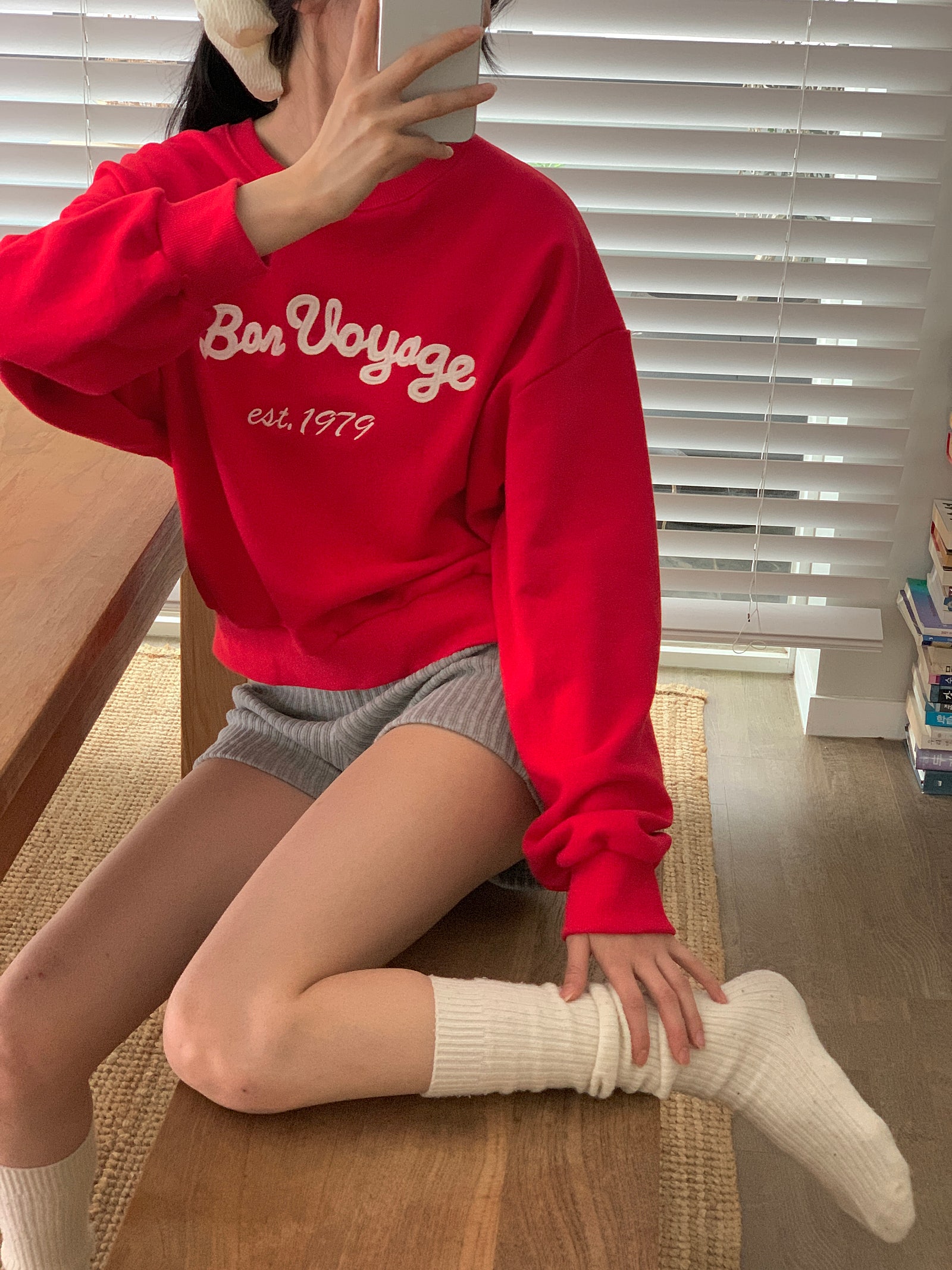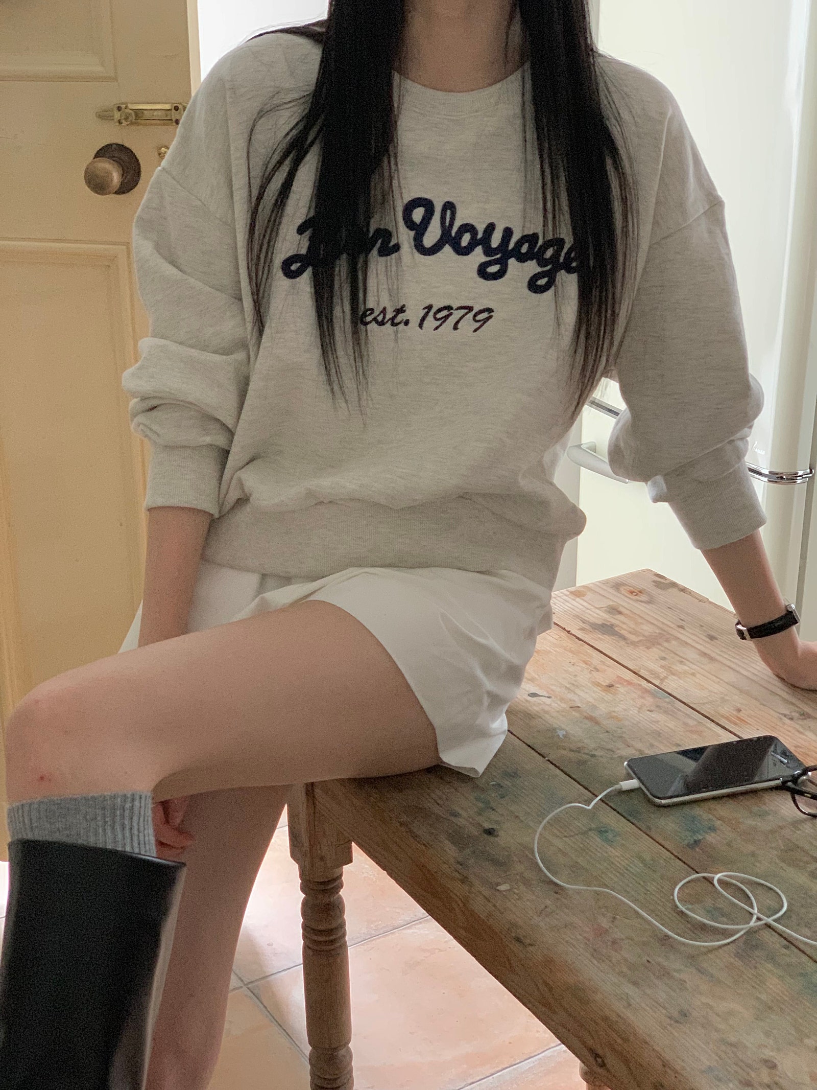 ルーズフィットレタリングステッチクロップドスウェットシャツ