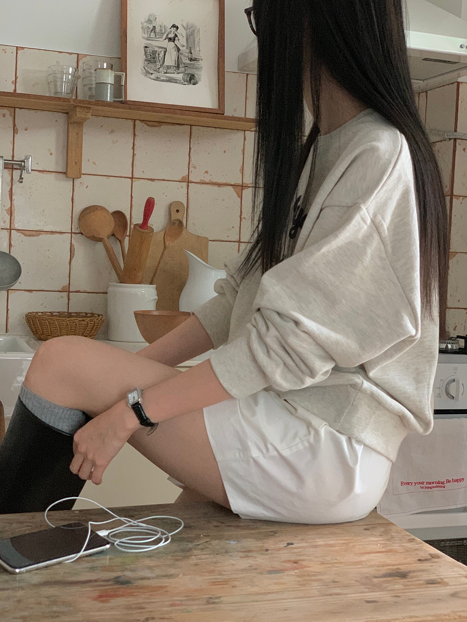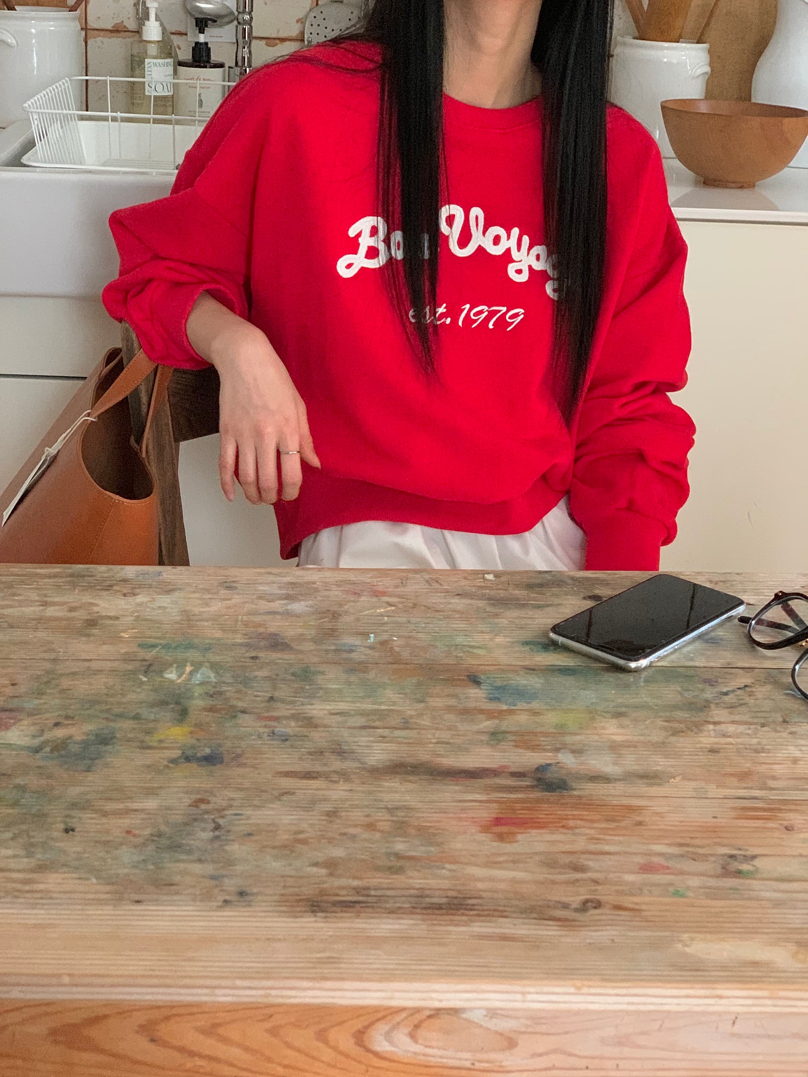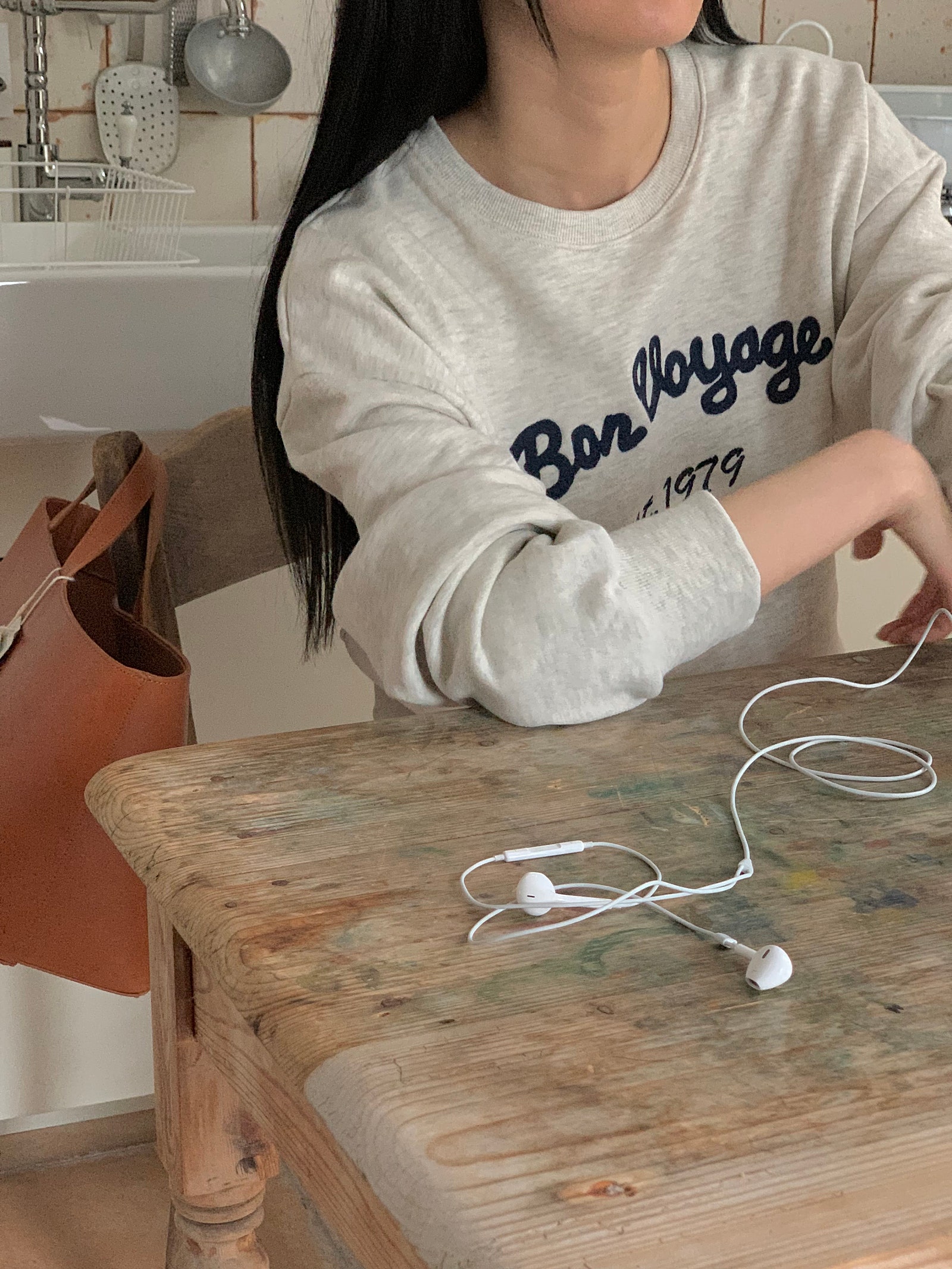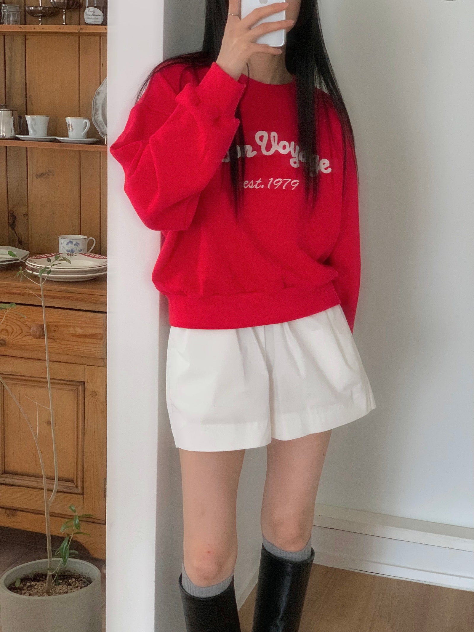 ルーズフィットレタリングステッチクロップドスウェットシャツ