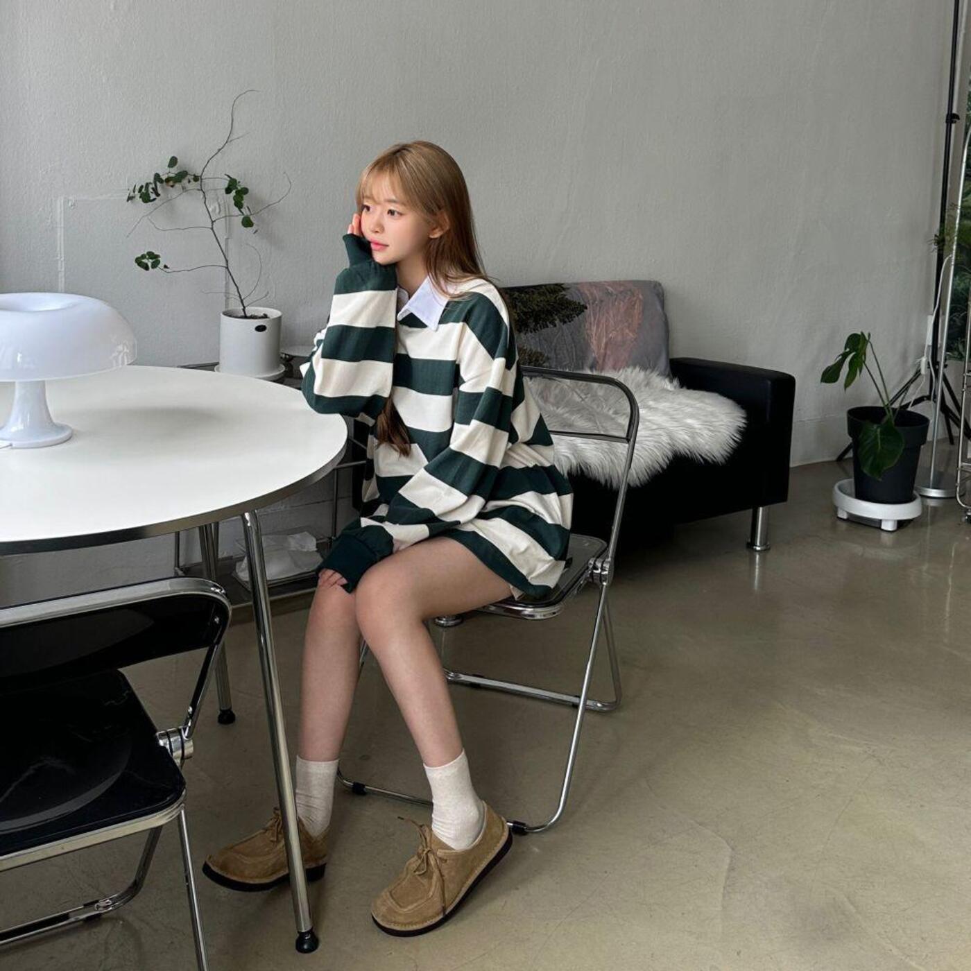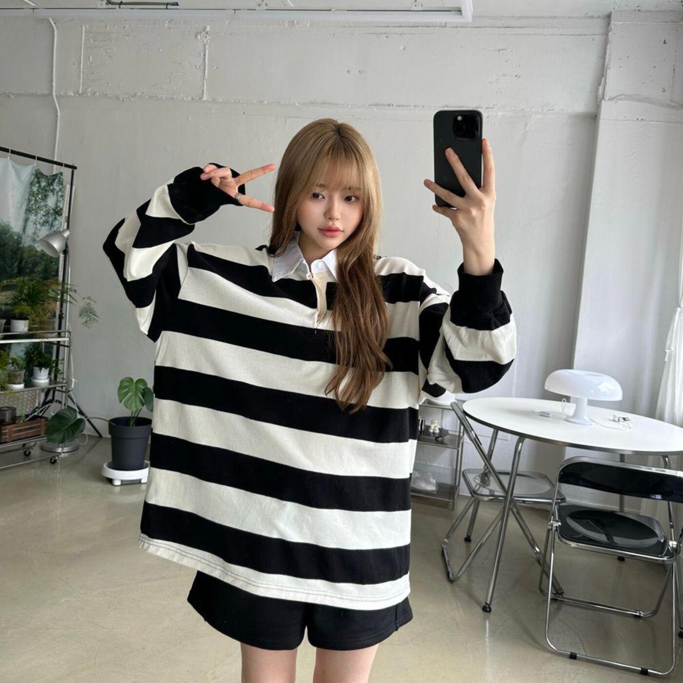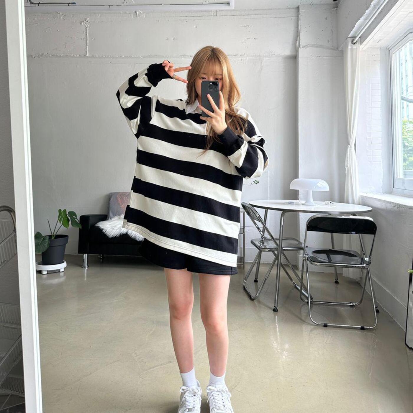 ボーダーオーバーサイズカラーTシャツ-TXZXPS5701