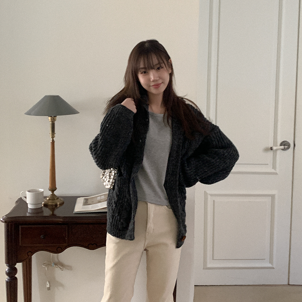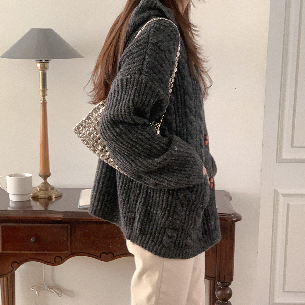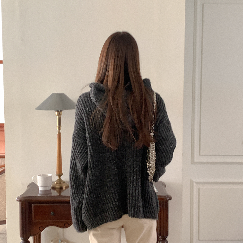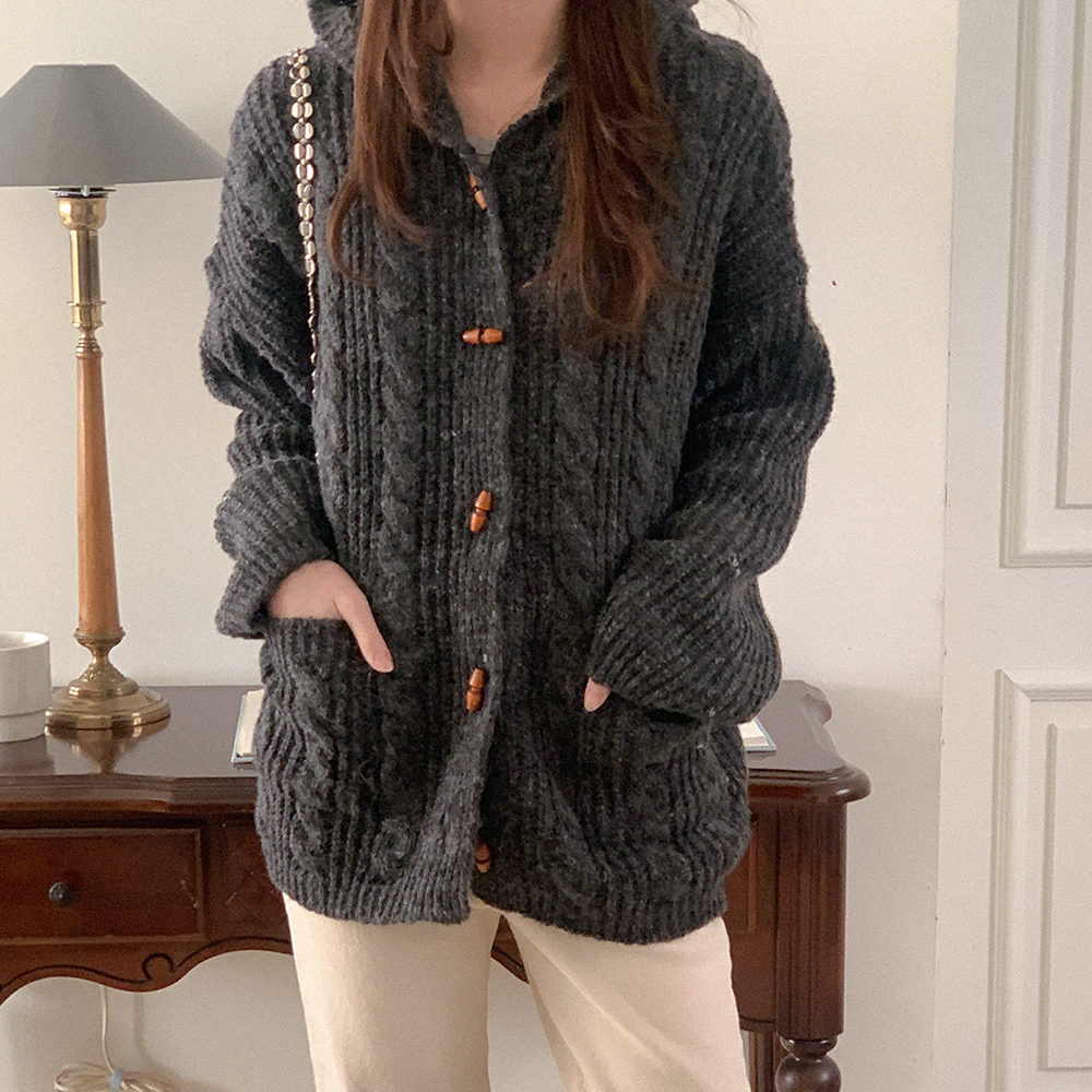 ツイストニットフード付きカーディガン