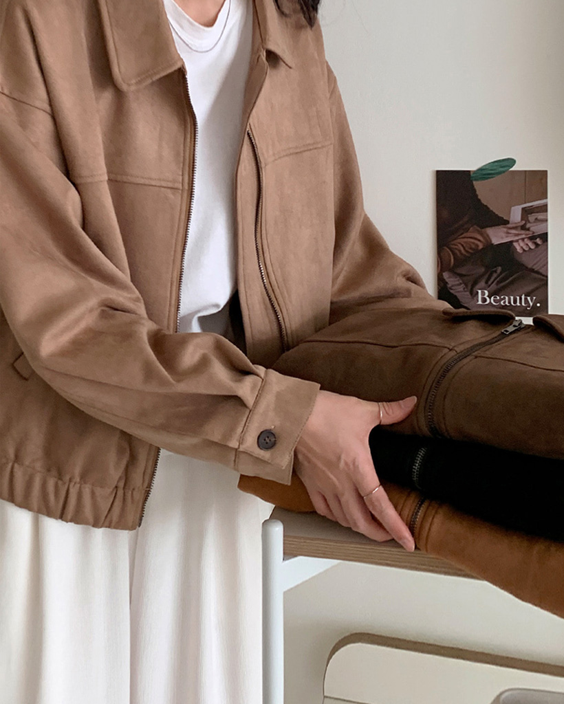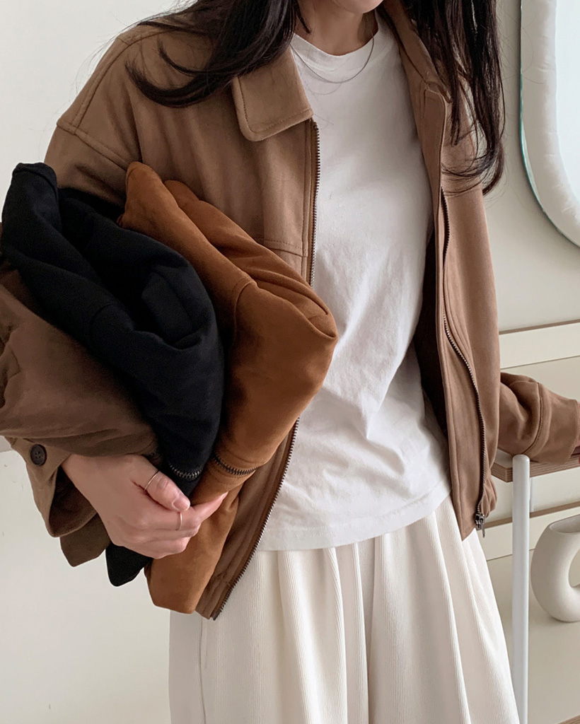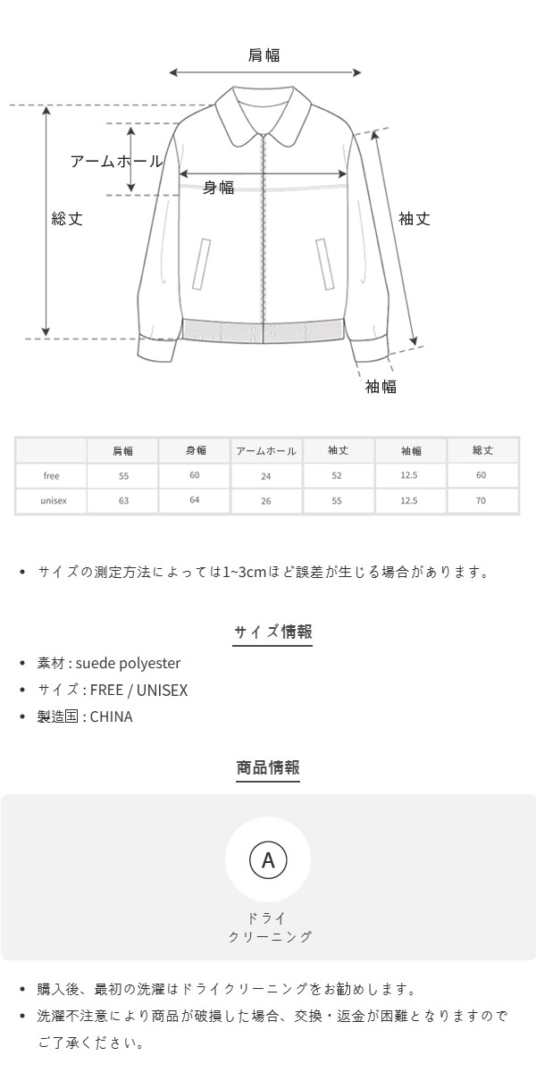(1万枚突破)(unisex)スウェードブルゾンジャケット (4color)