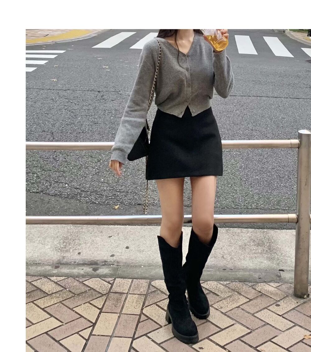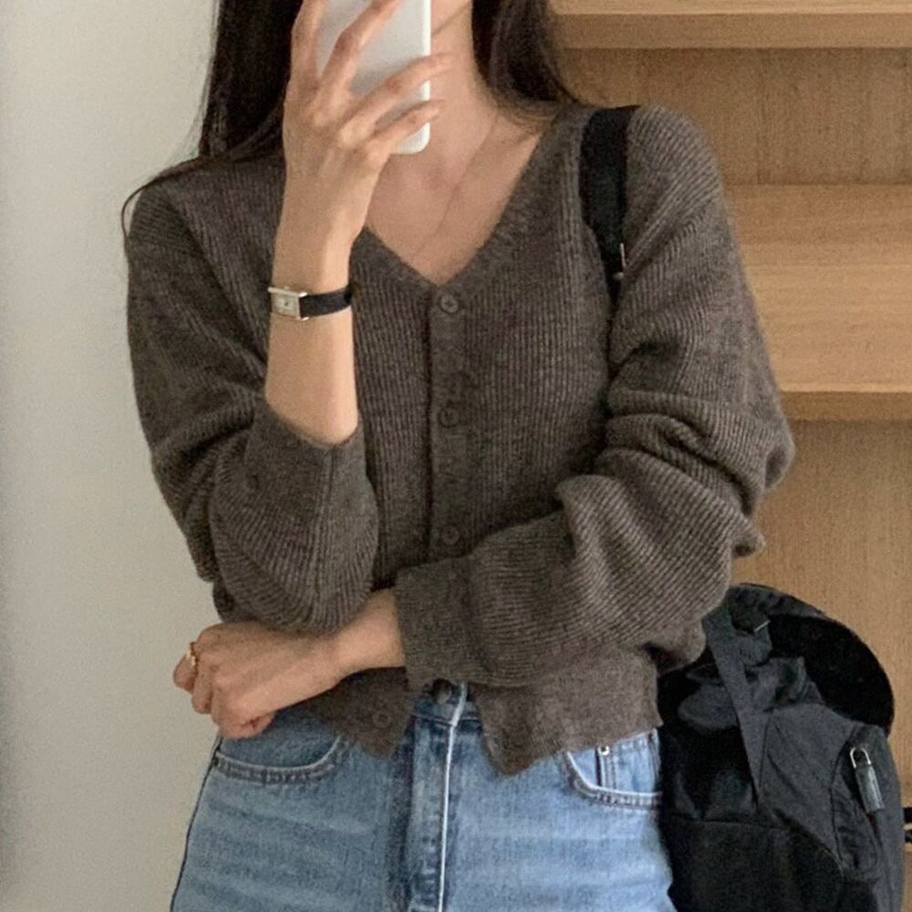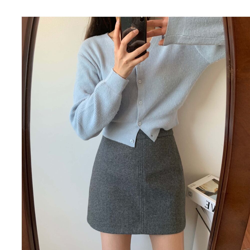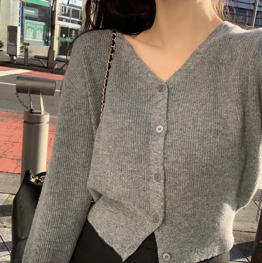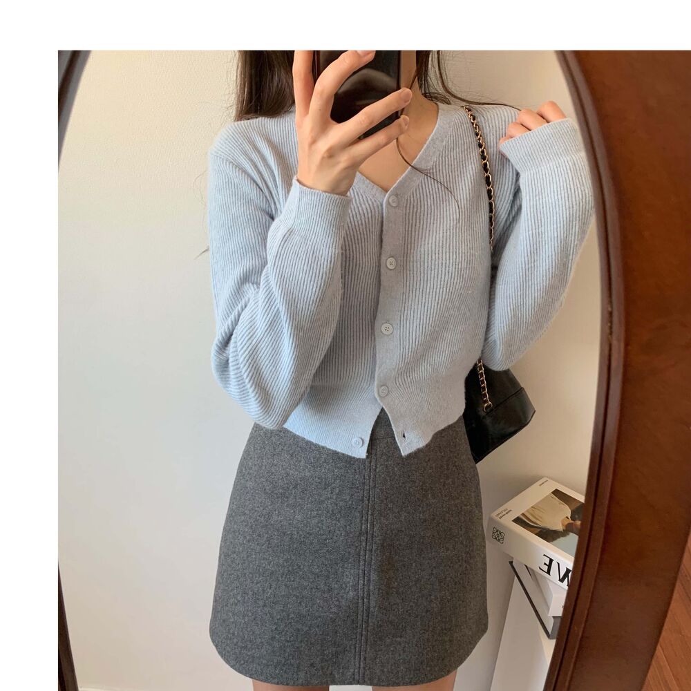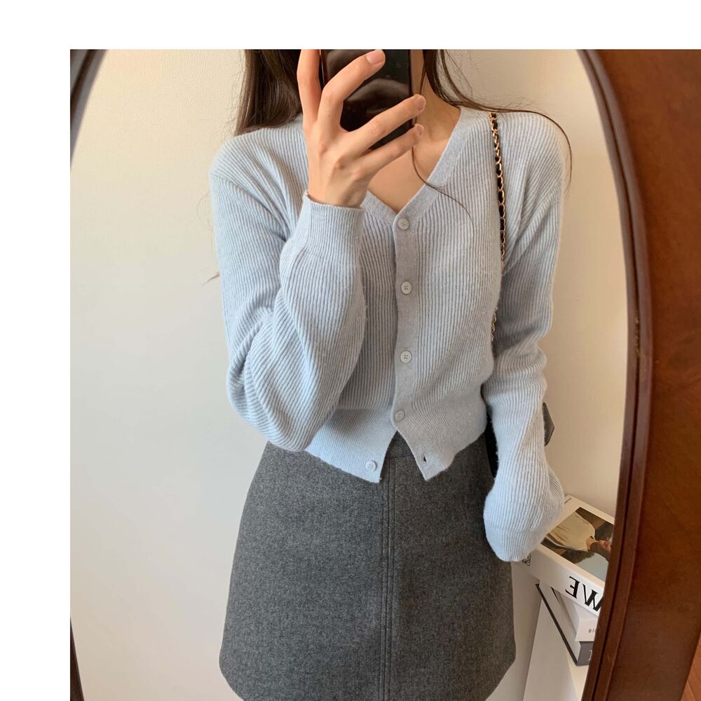 [ウール50/スリムフィット]Vネッククロップドウールカーディガン