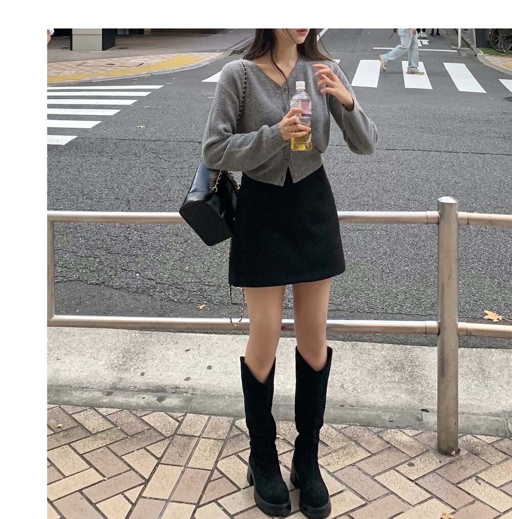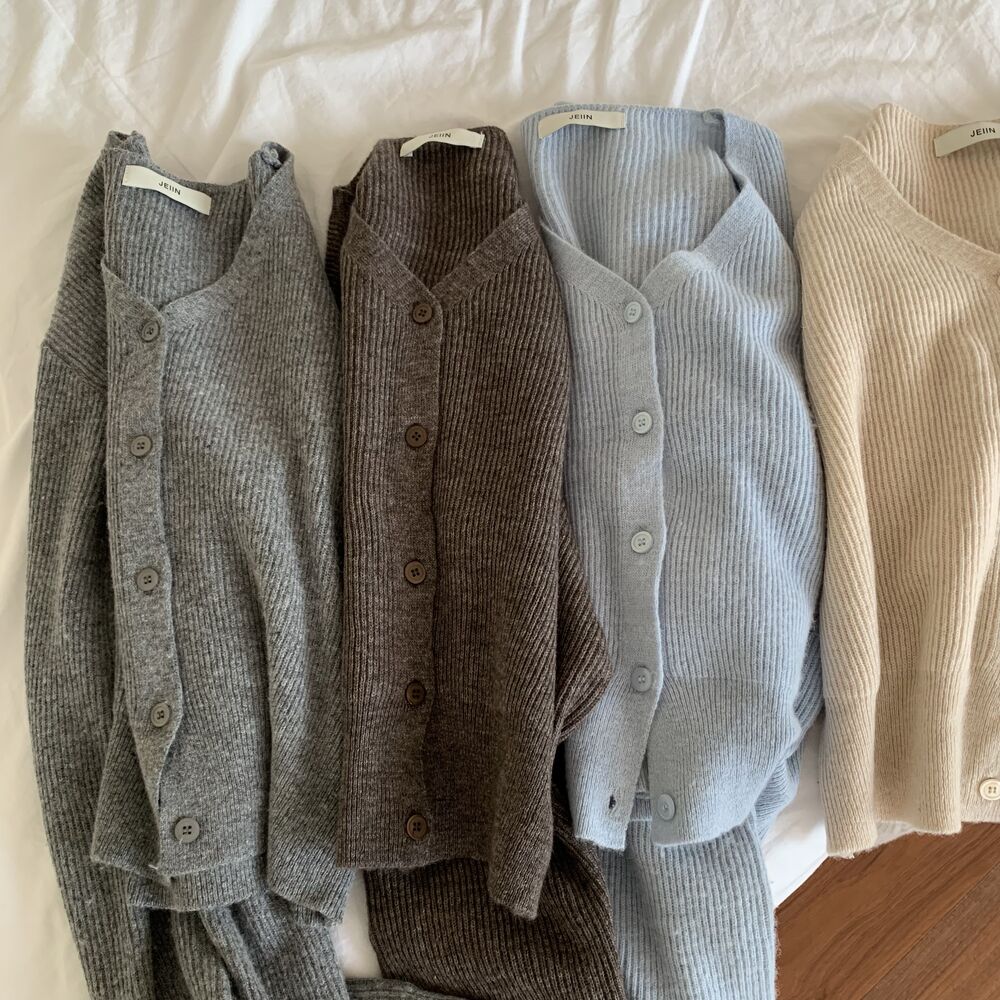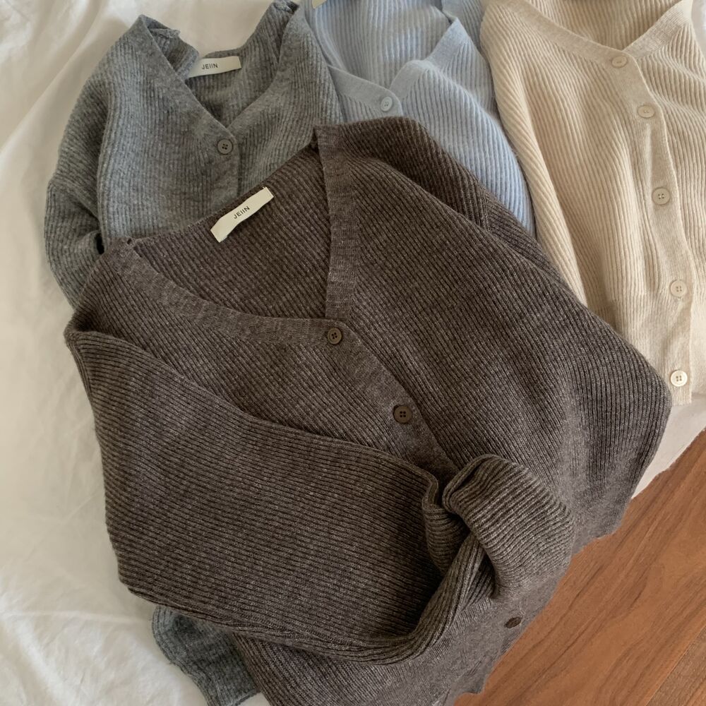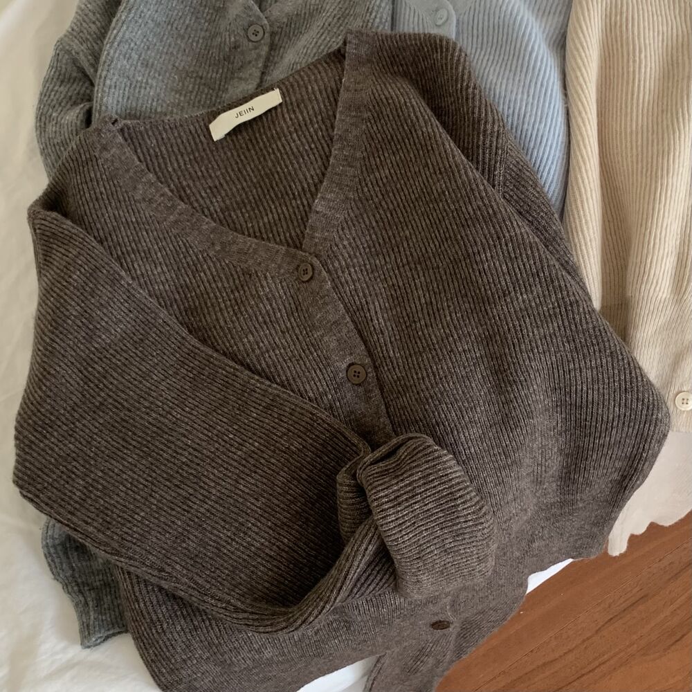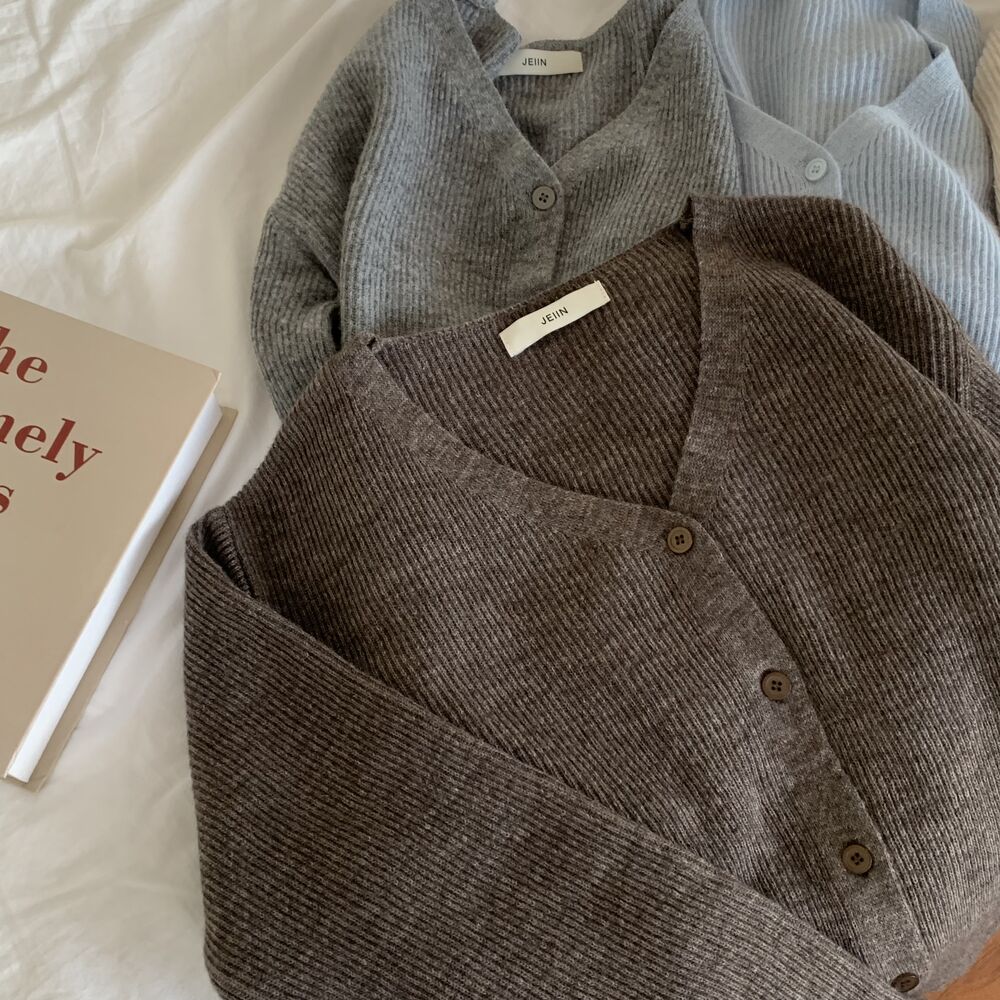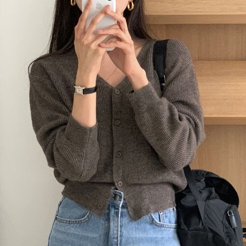 [ウール50/スリムフィット]Vネッククロップドウールカーディガン
