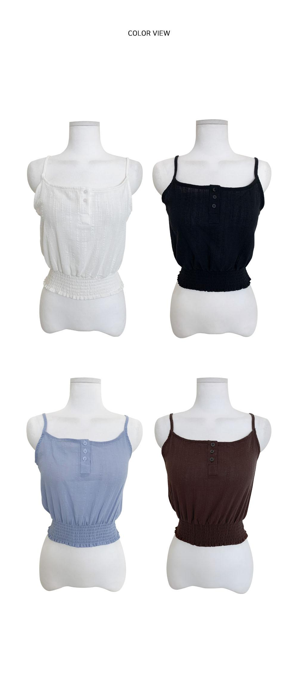 コットンクロップドゴムノースリーブトップブラウス-4color