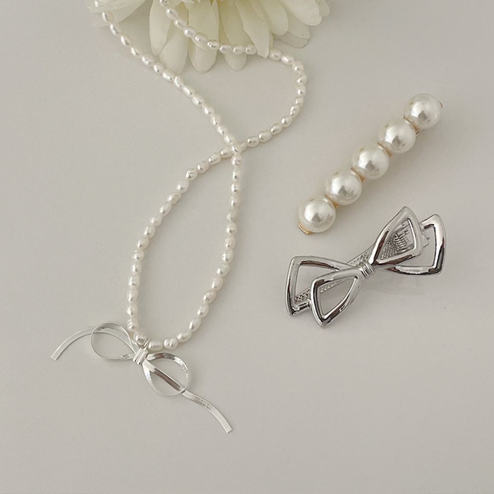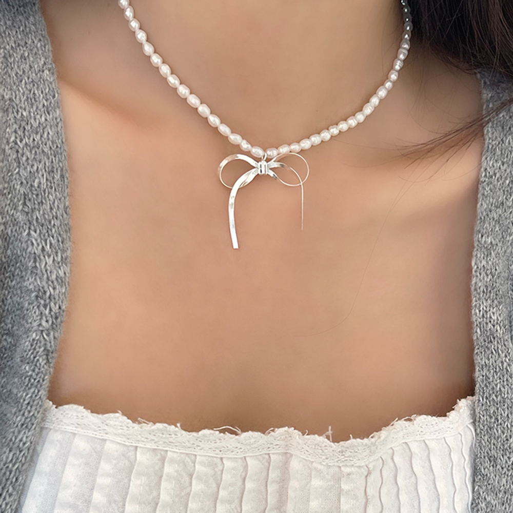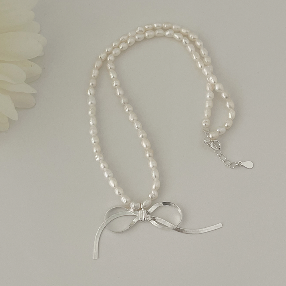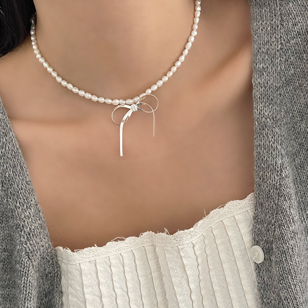 シルバーリボンパールネックレス