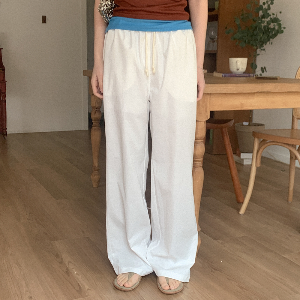 リネンワイドウエストゴムパンツ
