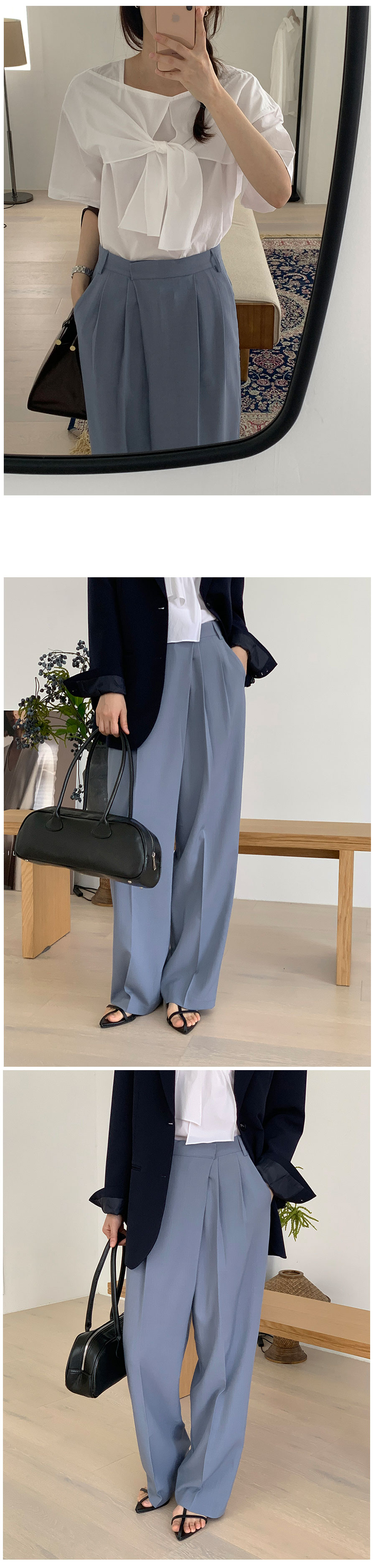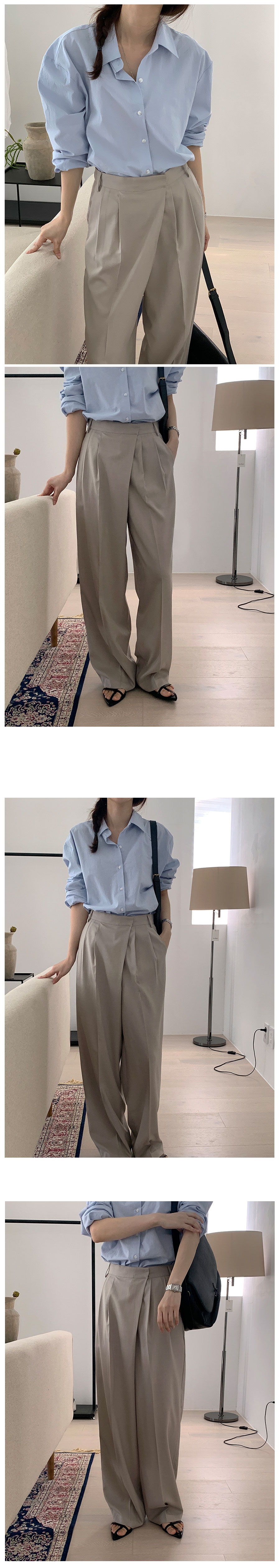 斜めストライプタック入りワイドスパンロングスラックス2color