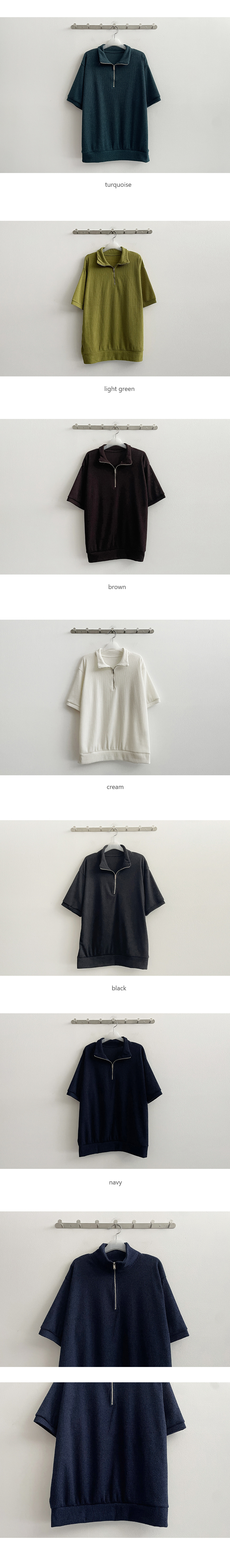 ハイネックハーフジップアップ半袖ニット(6color)