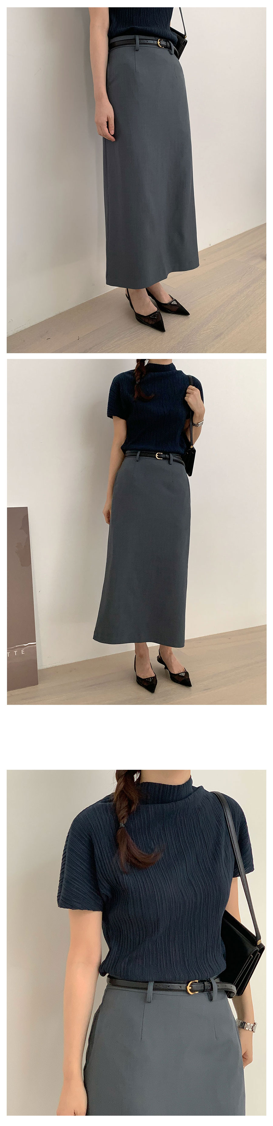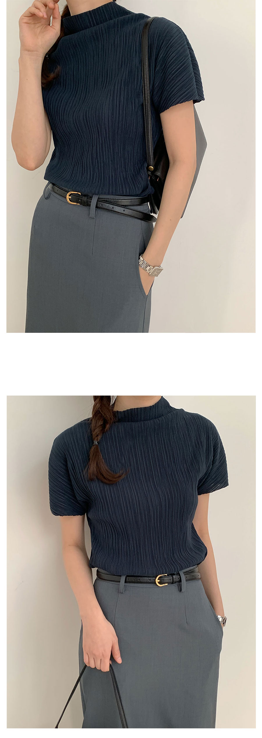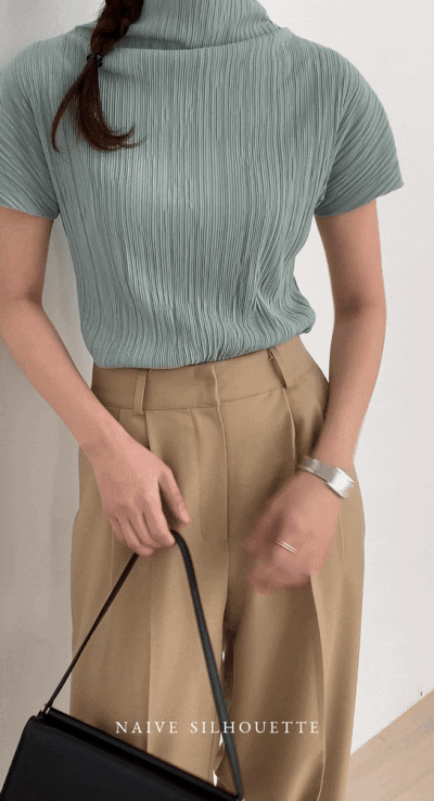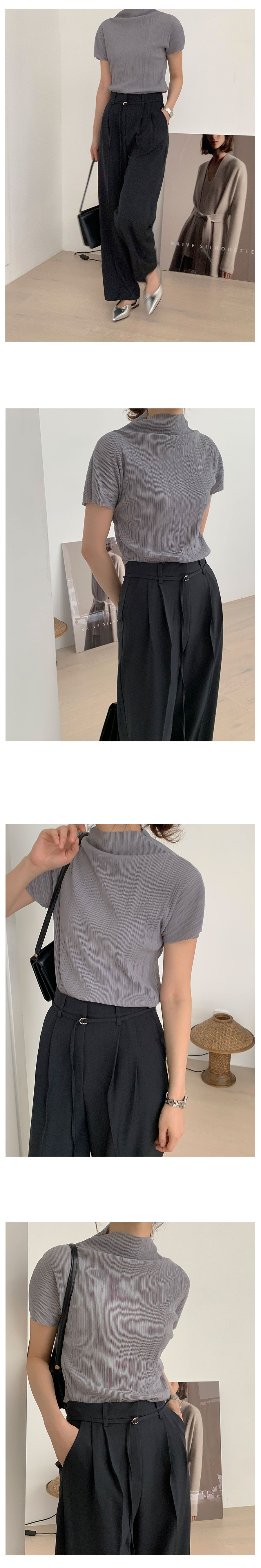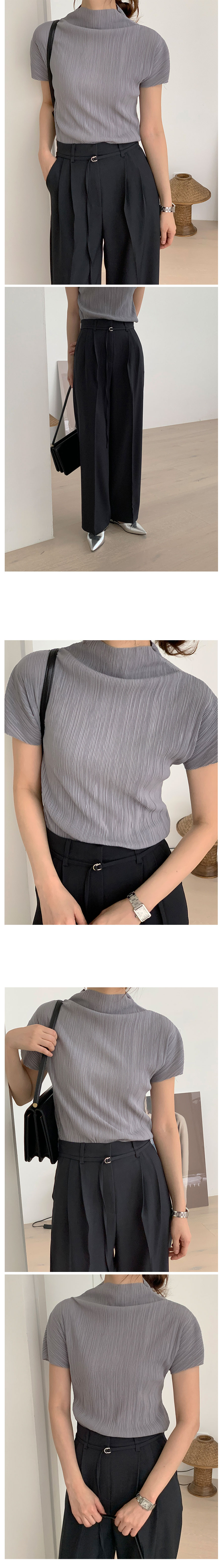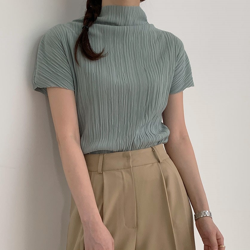 ハーフネックプリーツシャーリングブラウス5color