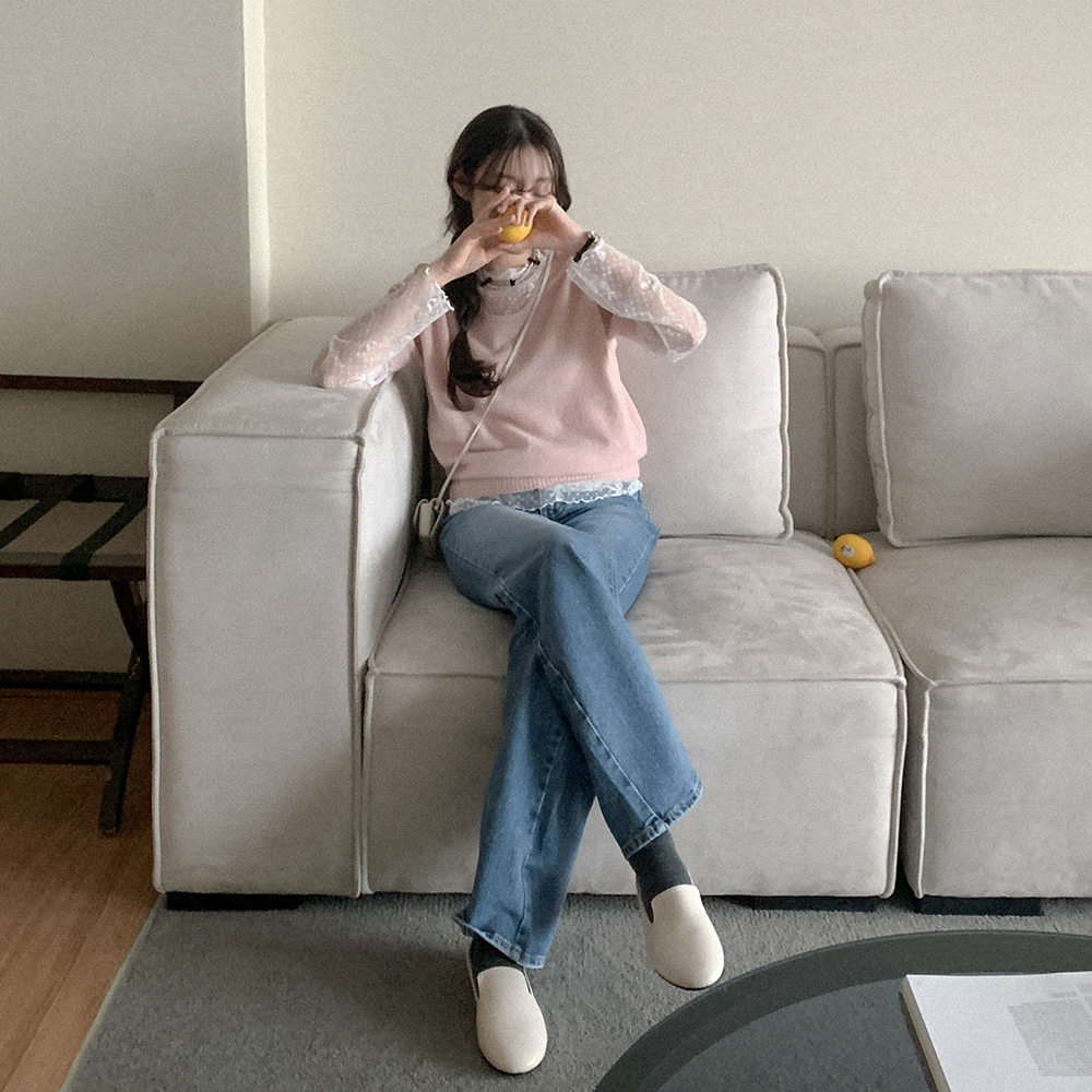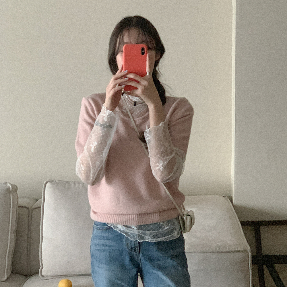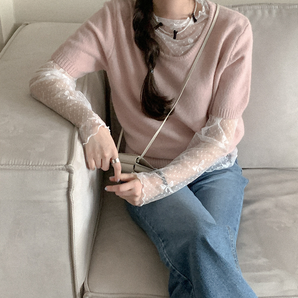 さくらUネック半袖ニット