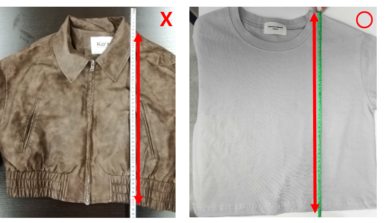 *各測定部分の端をメジャーの「0cm」に合わせ、写真と同一な位置への測定をお願い致します。