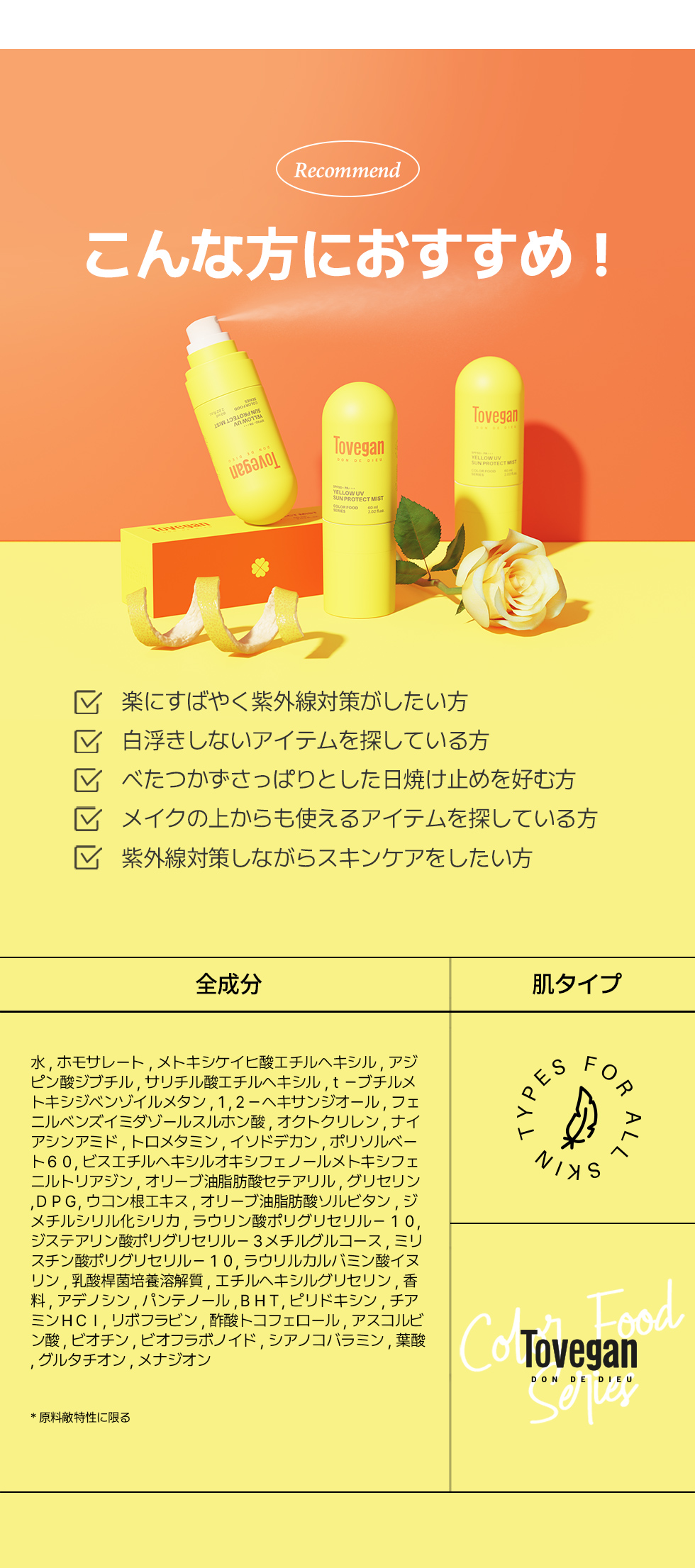 [Tovegan]イエローUVサンプロテクトミスト SPF50+ PA+++
