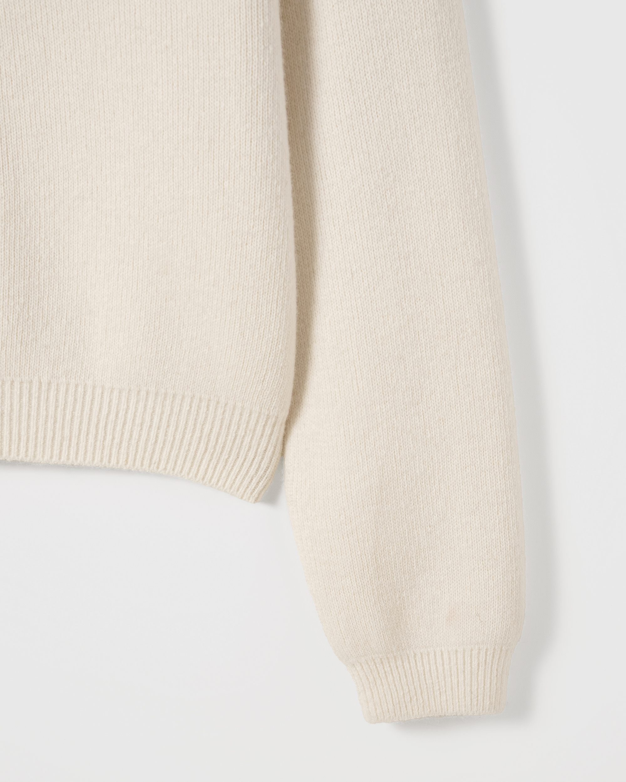 ウールとカシミヤをブレンドした糸で編み立てられており、肌にやさしく触れ、冬でも暖かく快適に着用できます。