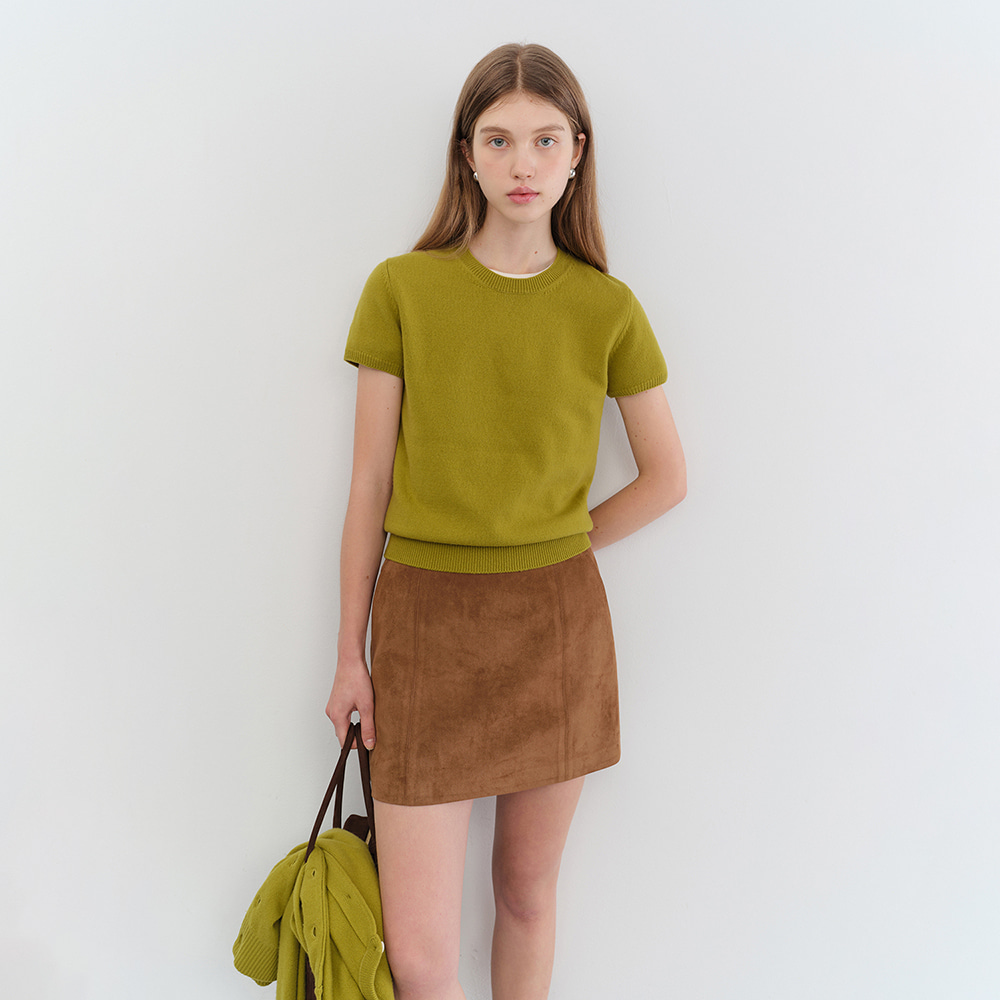 HALF SLEEVE KNIT TOP OLIVE_UDSW5C201K1