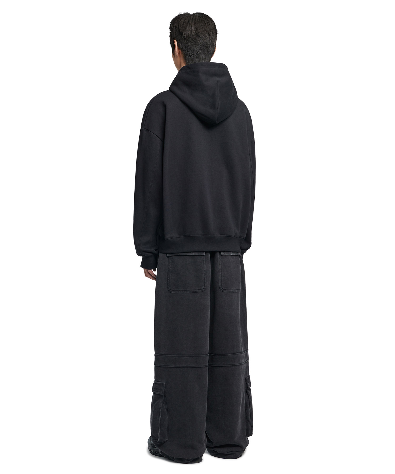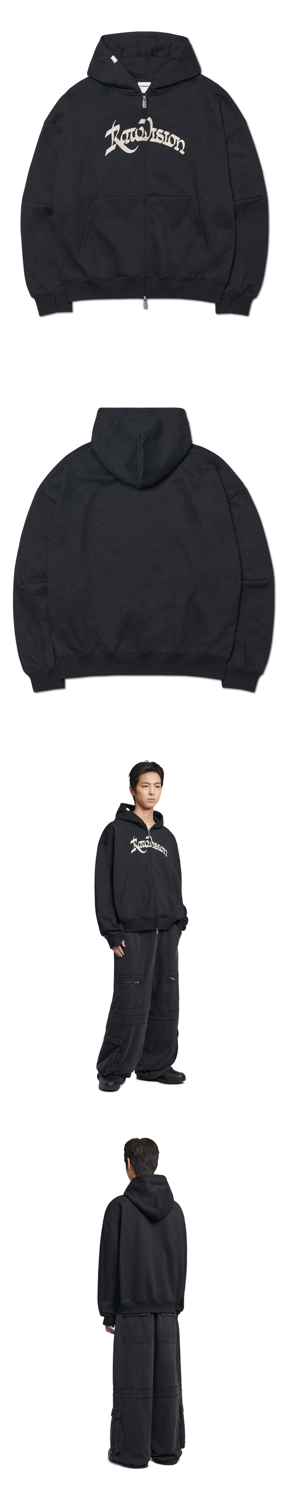 R.V CHAIN STITCHED HOODED ZIP-UP - BLACK