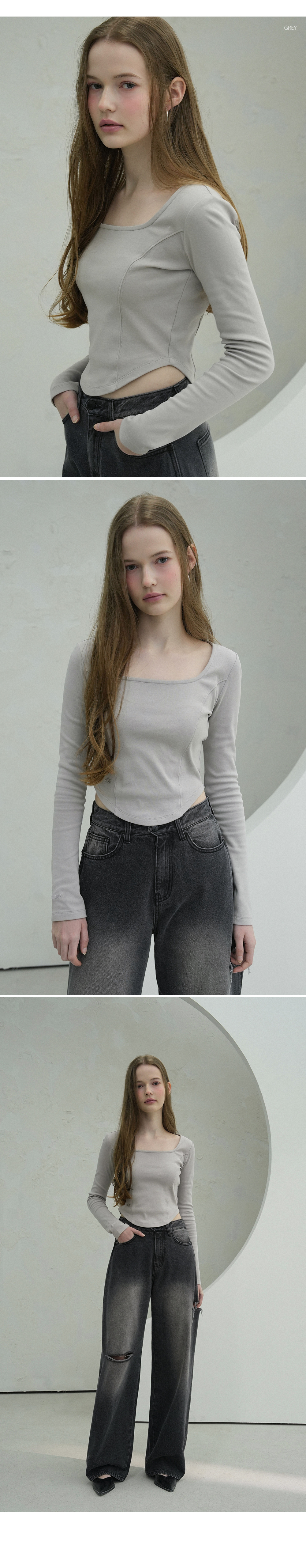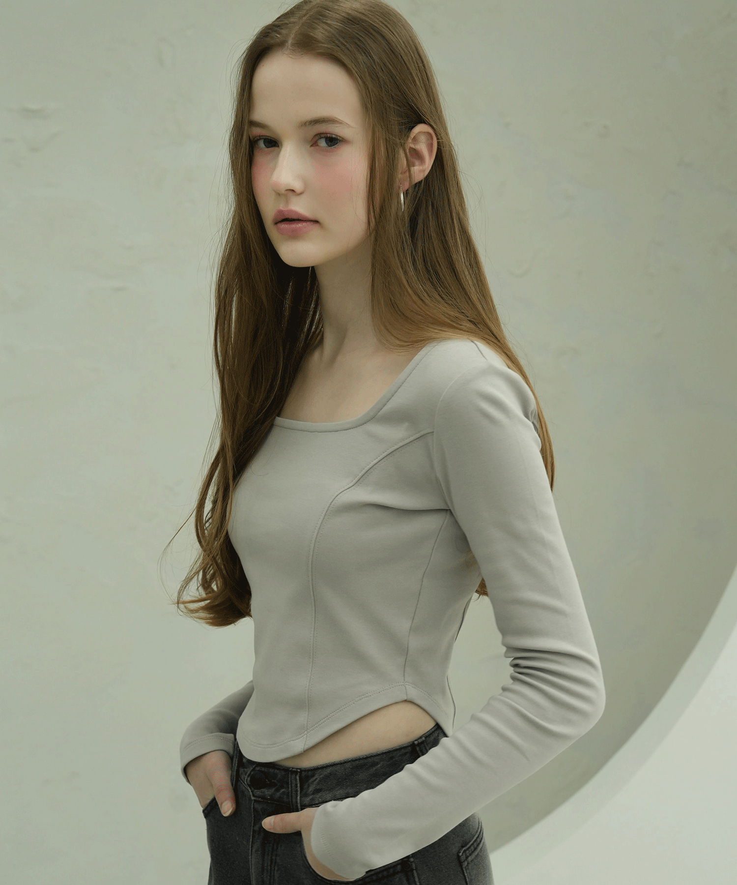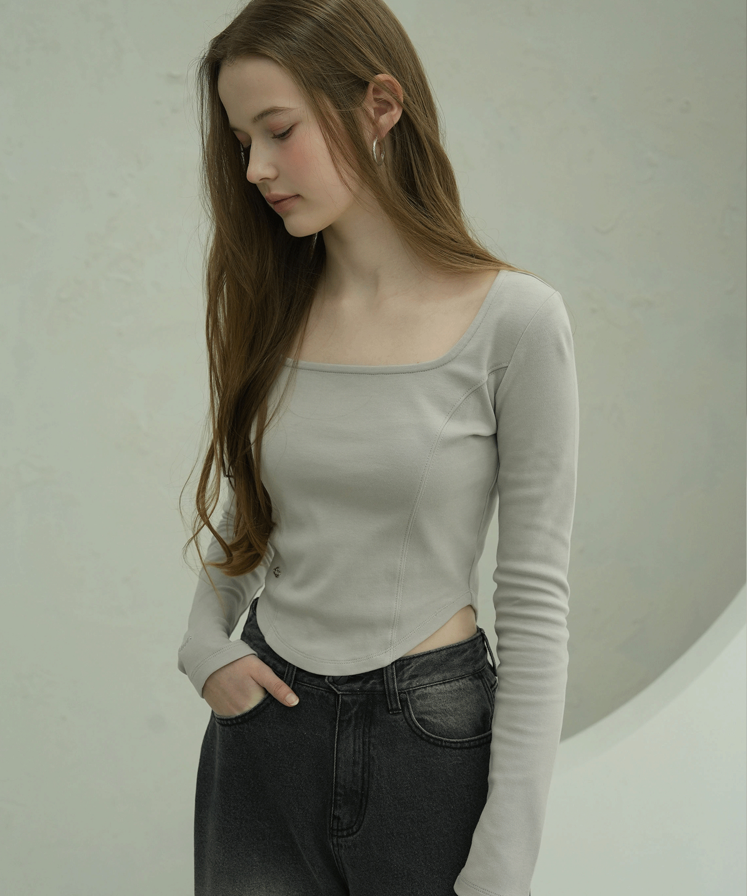 Neuel Square Neck Line Crop Long Sleeve - 5COL
