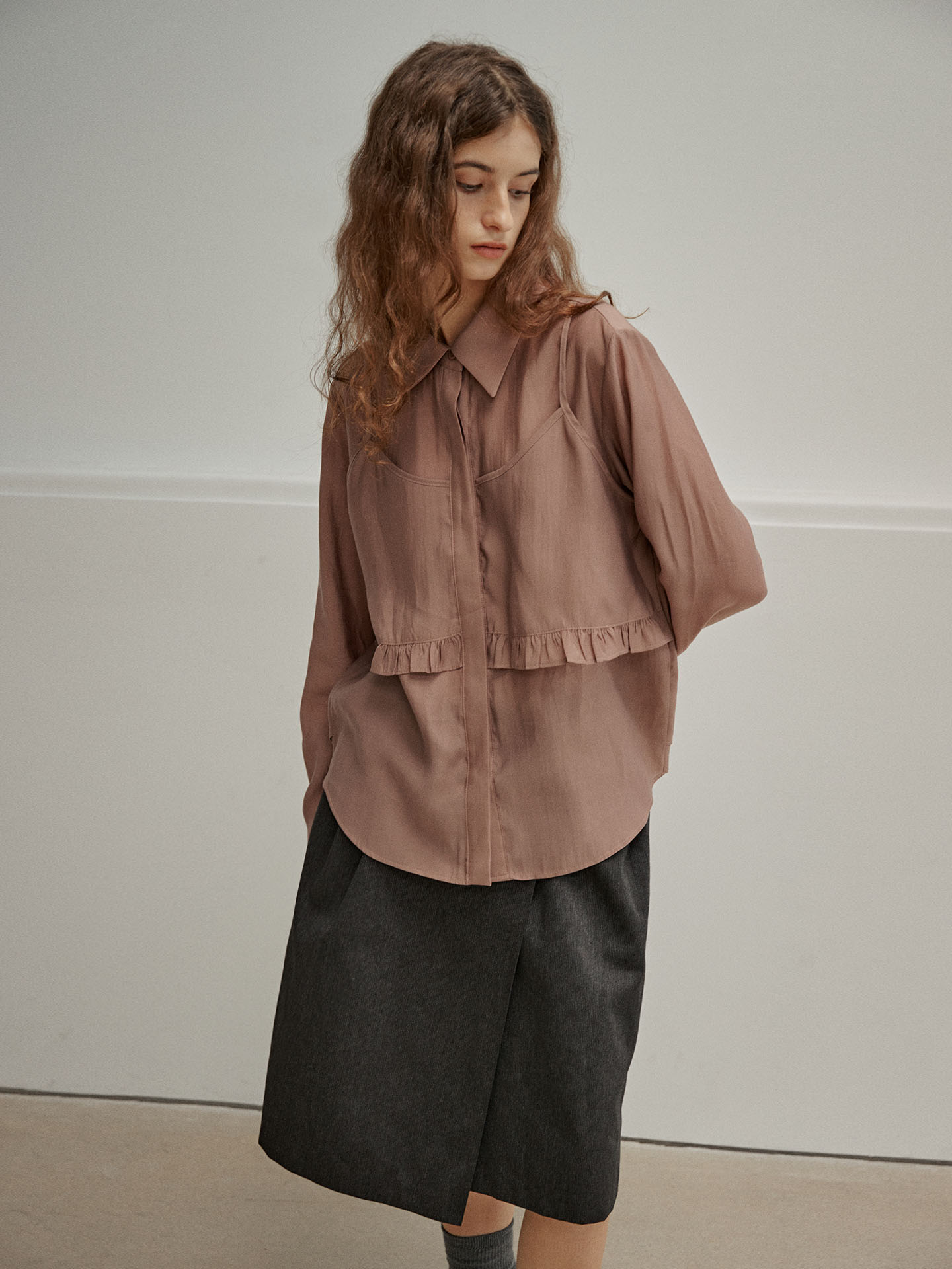 RUFFLE BUSTIER BLOUSE [ MAUVE ]