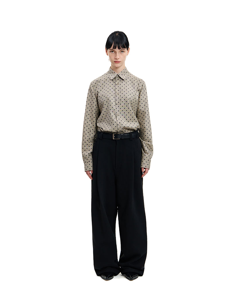 ASH BEIGE SLIM FIT POLKA DOT SHIRT