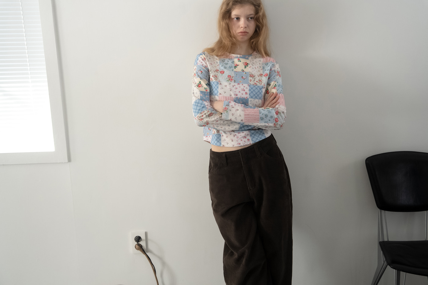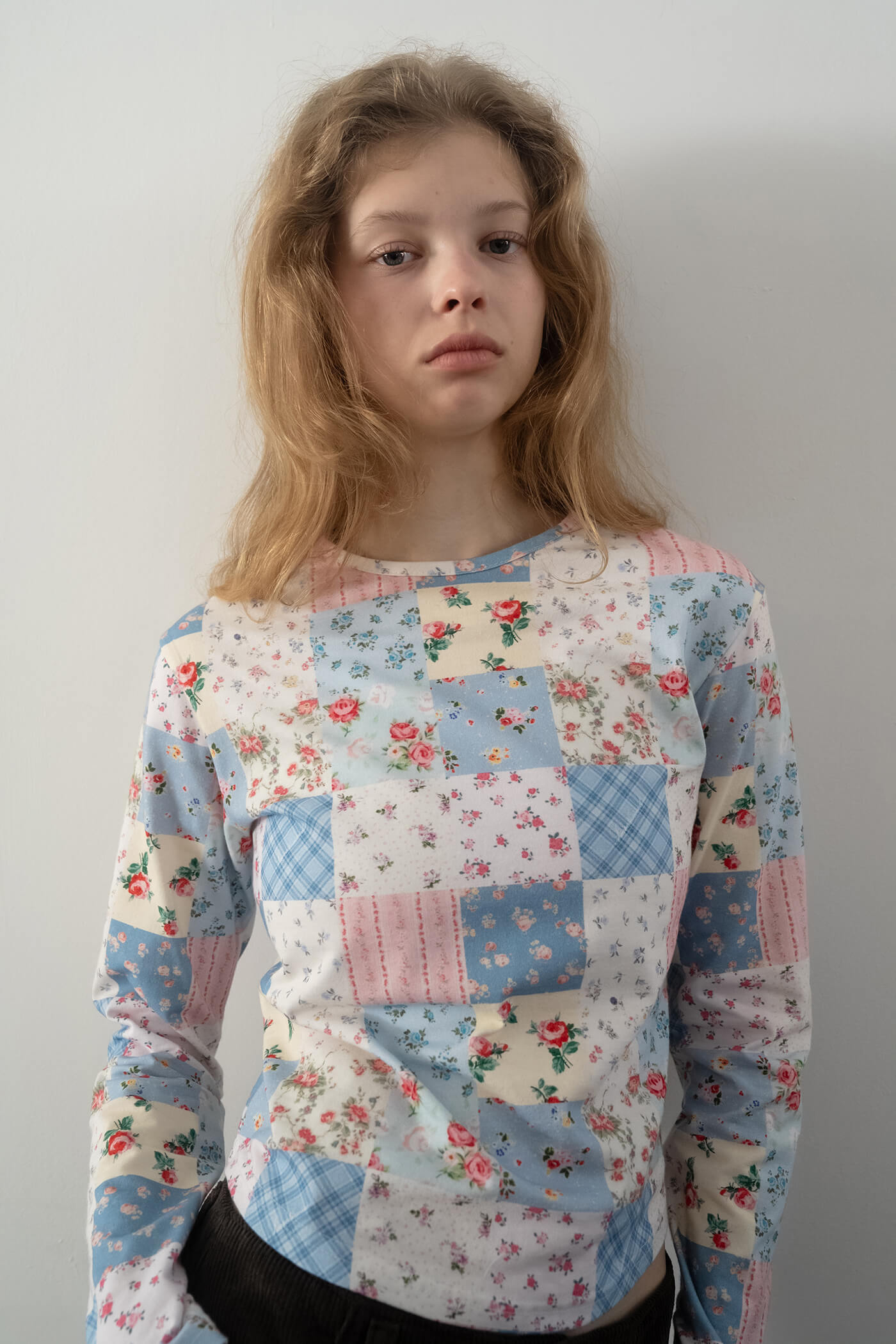 [K-POPアイドル着用] Shalott Floral Patchwork Tee