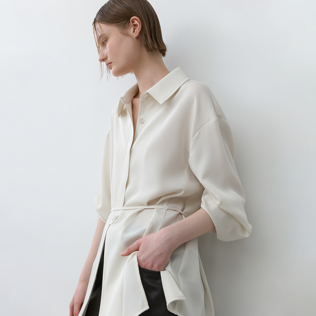 오버핏 실루엣에 깊은 슬릿이 있어 감각적으로 연출하기 좋은 셔츠 입니다.