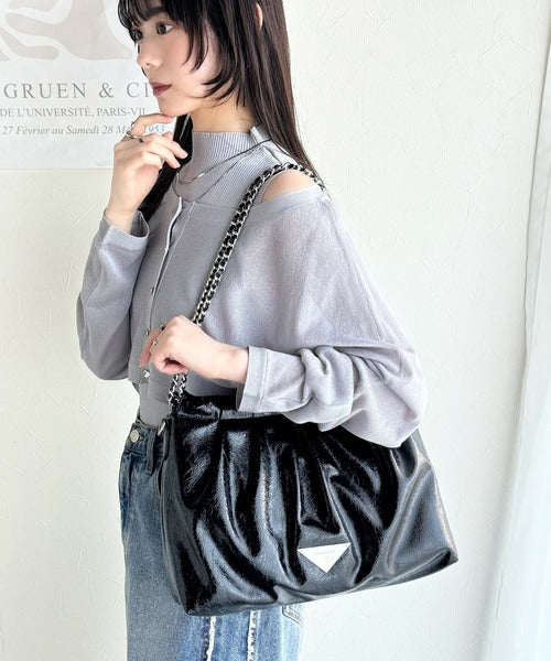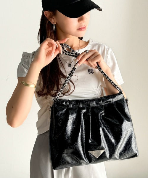 【mily bilet】エンボスエナメルライクフェイクレザー2WAYショルダーバッグの登場。