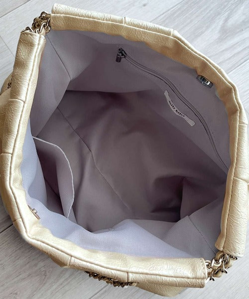 高級感あふれるエンボス加工が施されたフェイクレザーのバッグ。