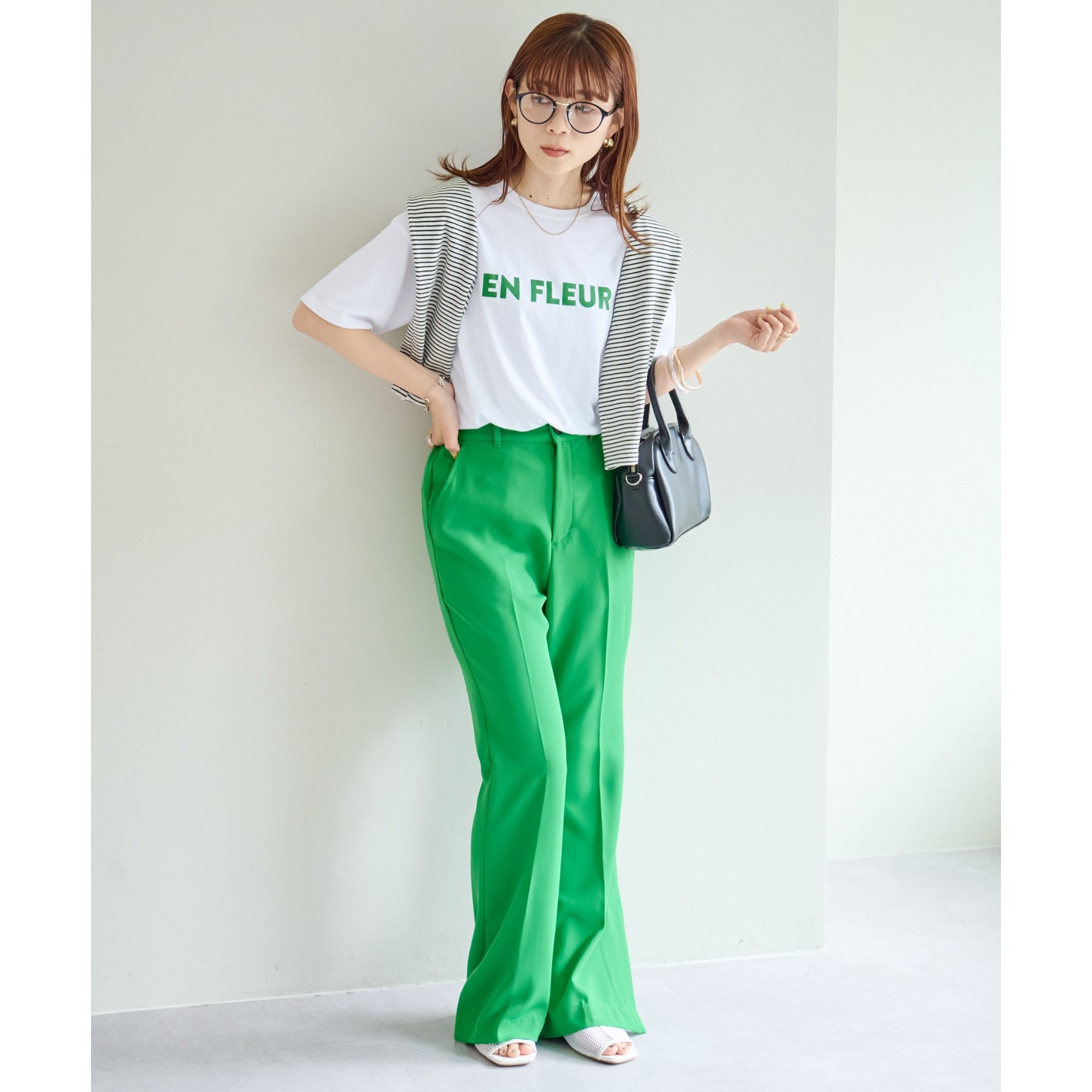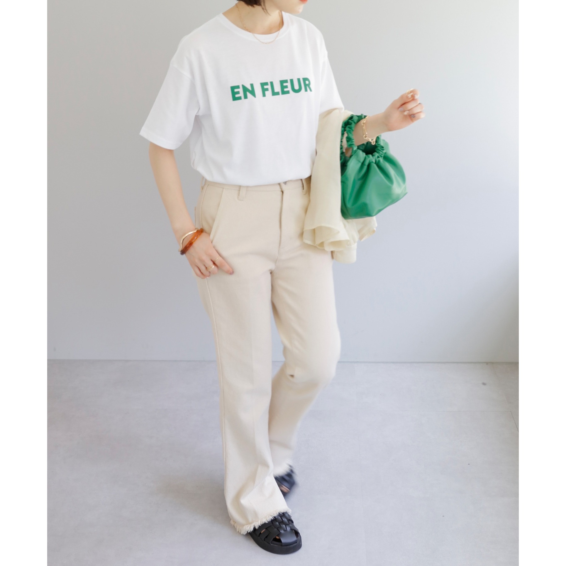 一枚着はもちろん、レイヤードのインナーとしても万能なロゴプリントTシャツ。女性らしく仕上がる旬のバイカラーに、パッと目を惹くロゴプリントがシンプルでありながらコーディネートにトレンド感をプラスしてくれるデザイン。程よくゆったりした、インでもアウトでも使いやすいシルエットで、幅広い着回しに大活躍間違いなしです◎
