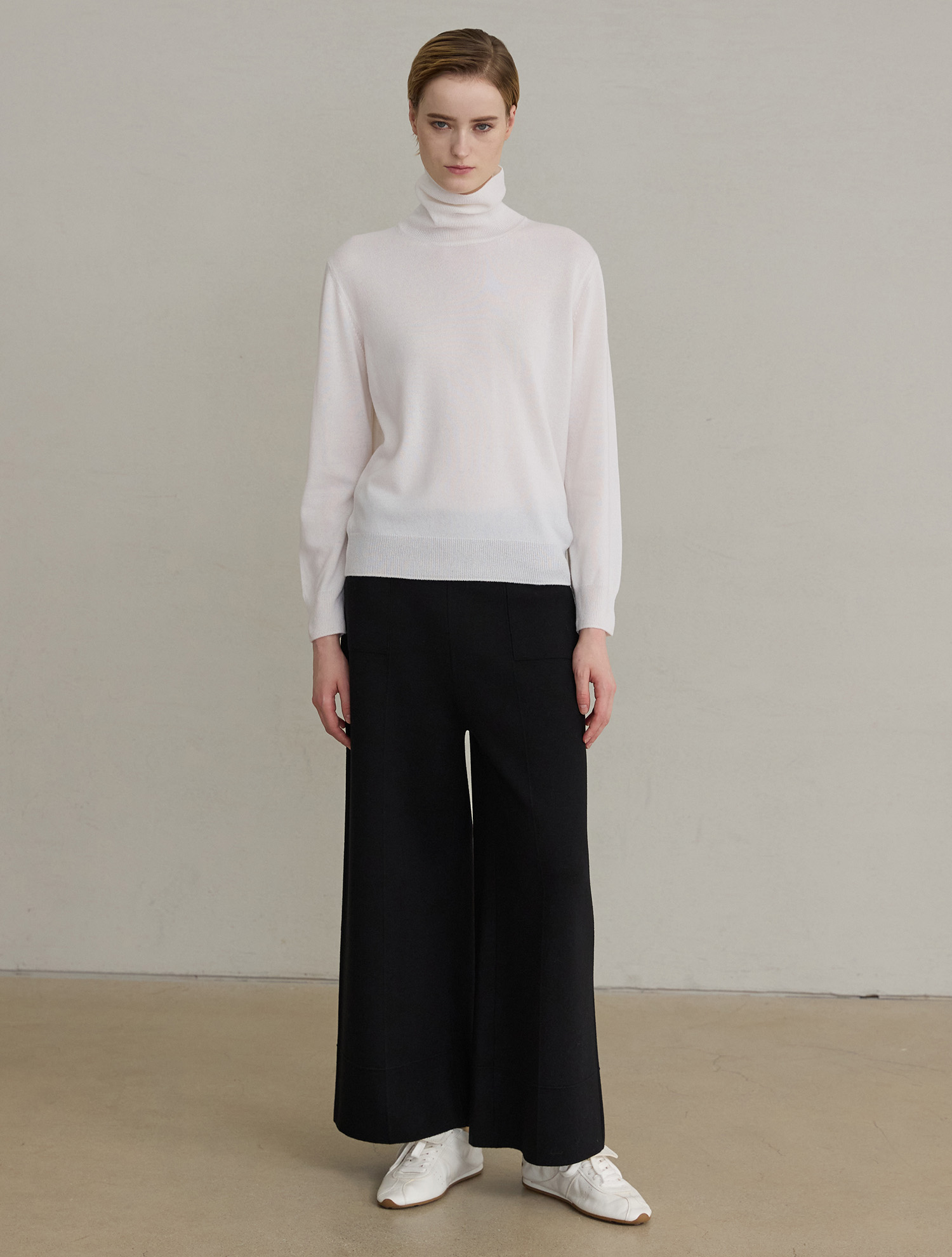 [Cashmere 100%] Turtleneck Pullover Knit Top - Ivory