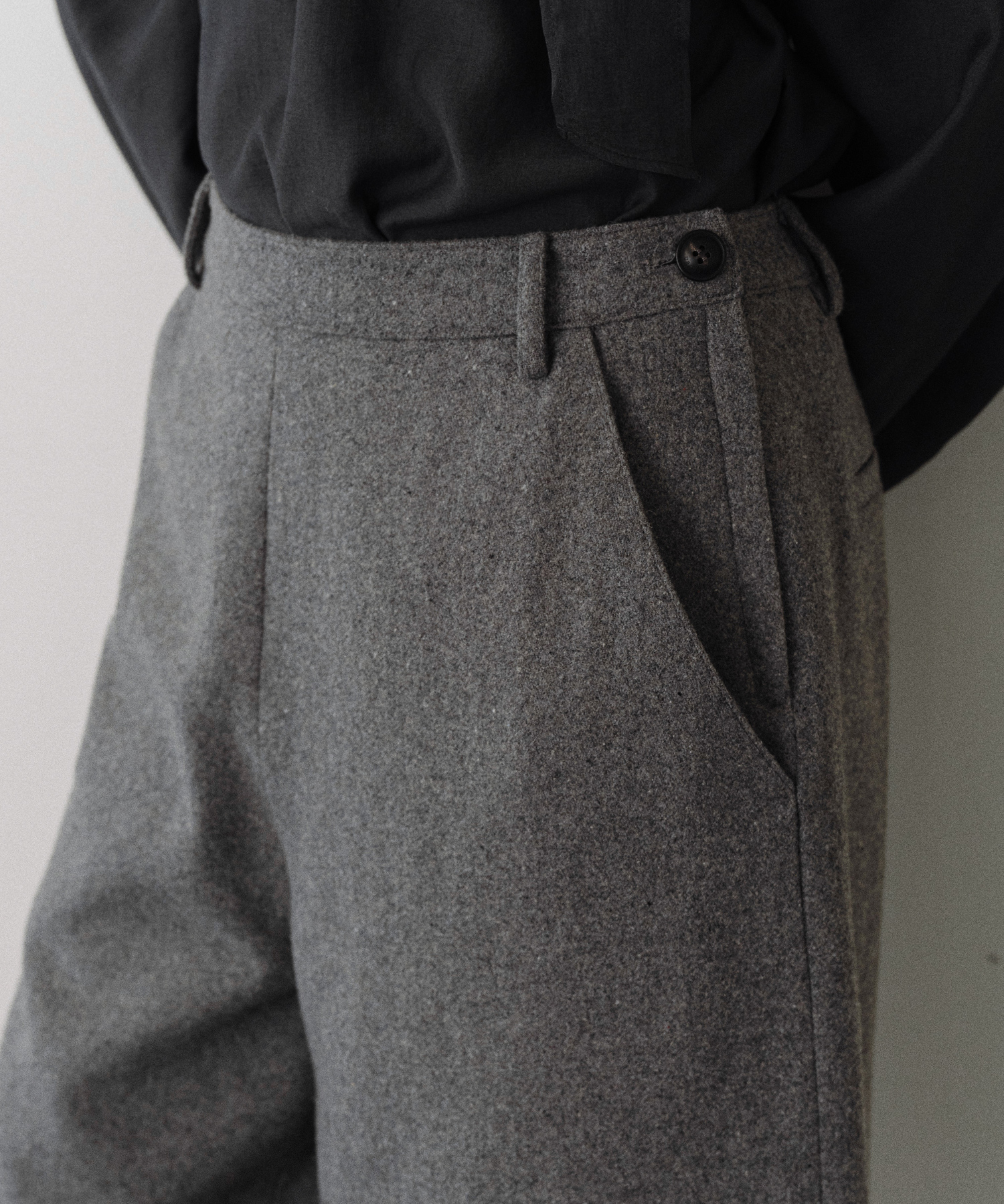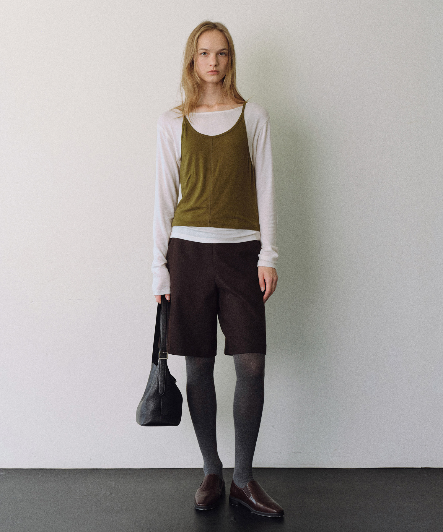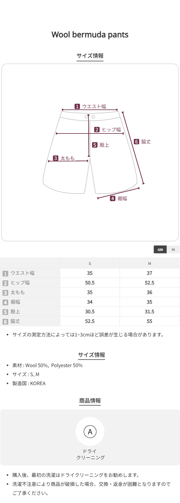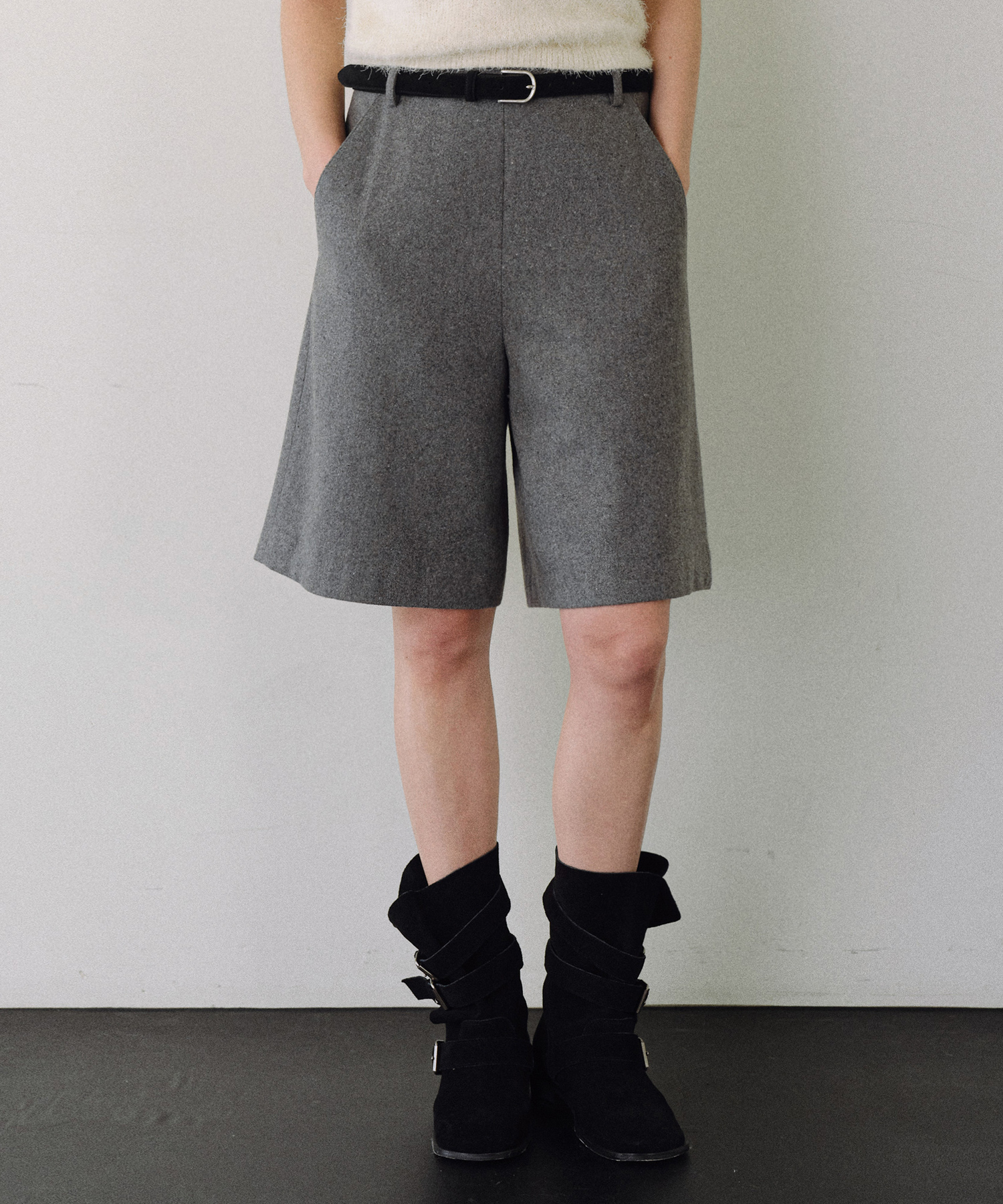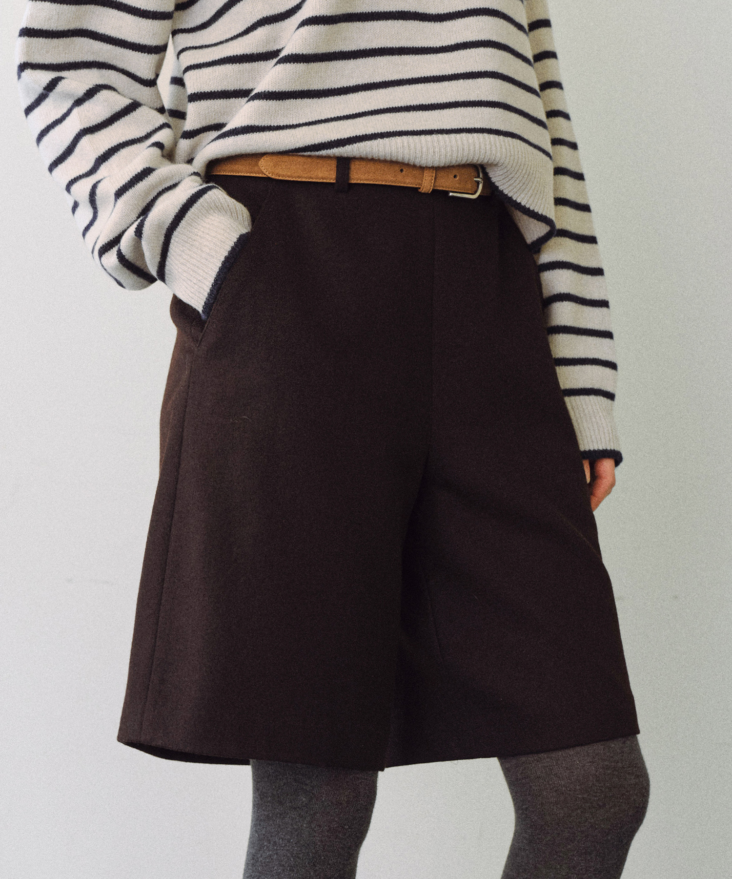 - 厚すぎない秋用ウール混素材で仕立てたバミューダパンツです。
