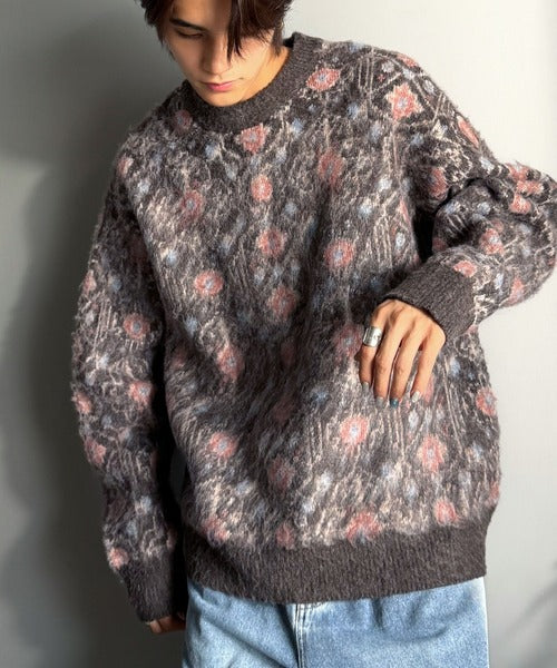 【classical origin】「ヴィンテージな存在感。」アンティークラグモチーフ柄ニットトップス(長袖)/Antique rug motif patterned knit ao1260469