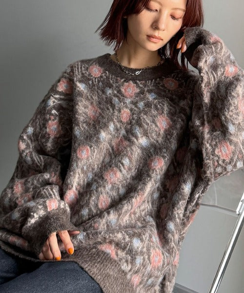 /アンティークラグモチーフ柄ニットトップス(長袖)」