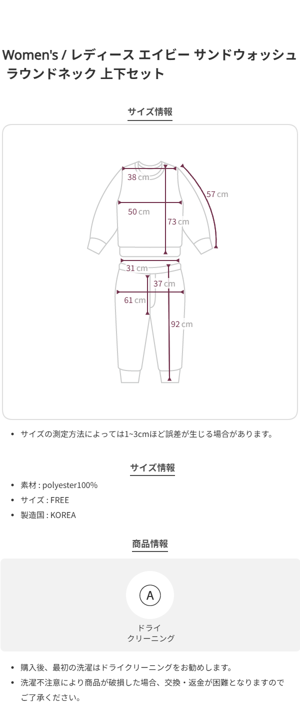 レディース エイビー サンドウォッシュ ラウンドネック 上下セット