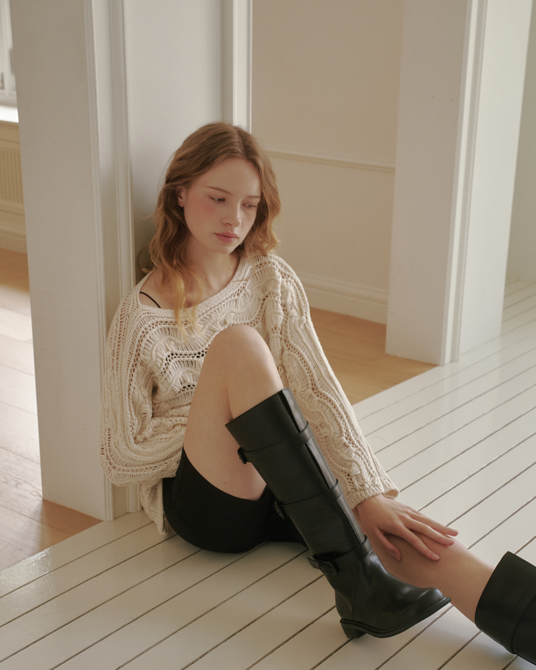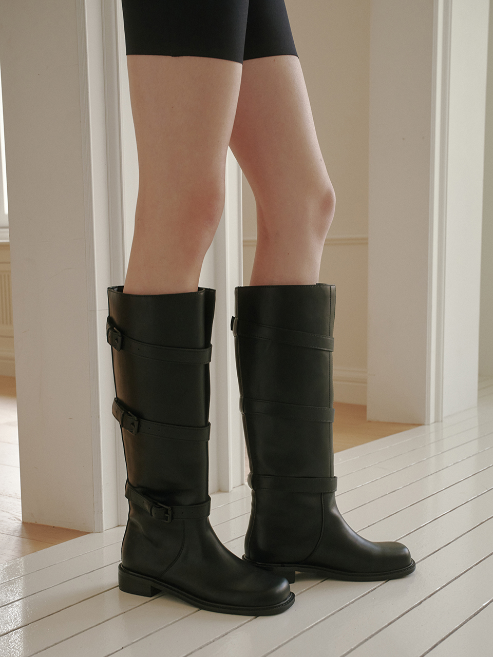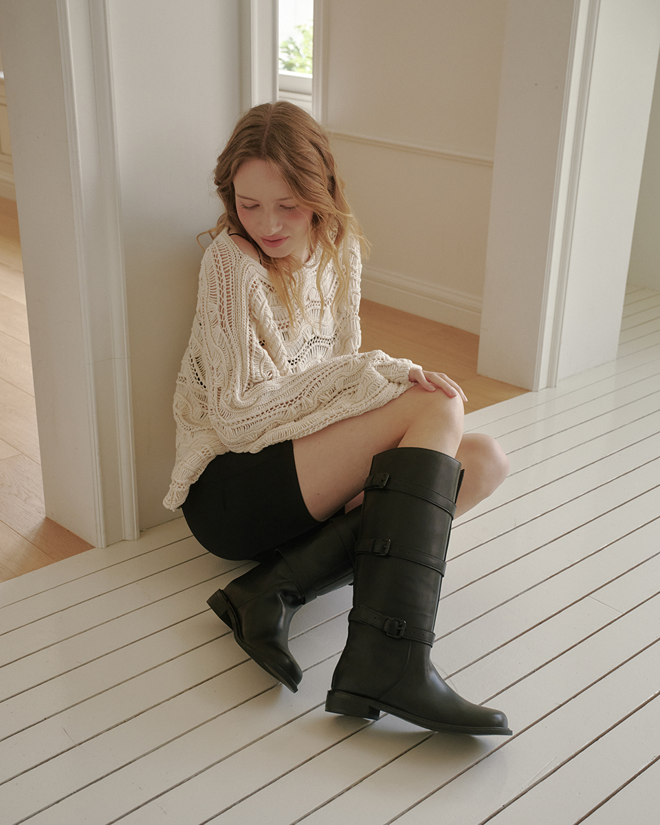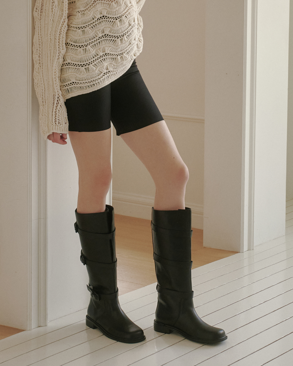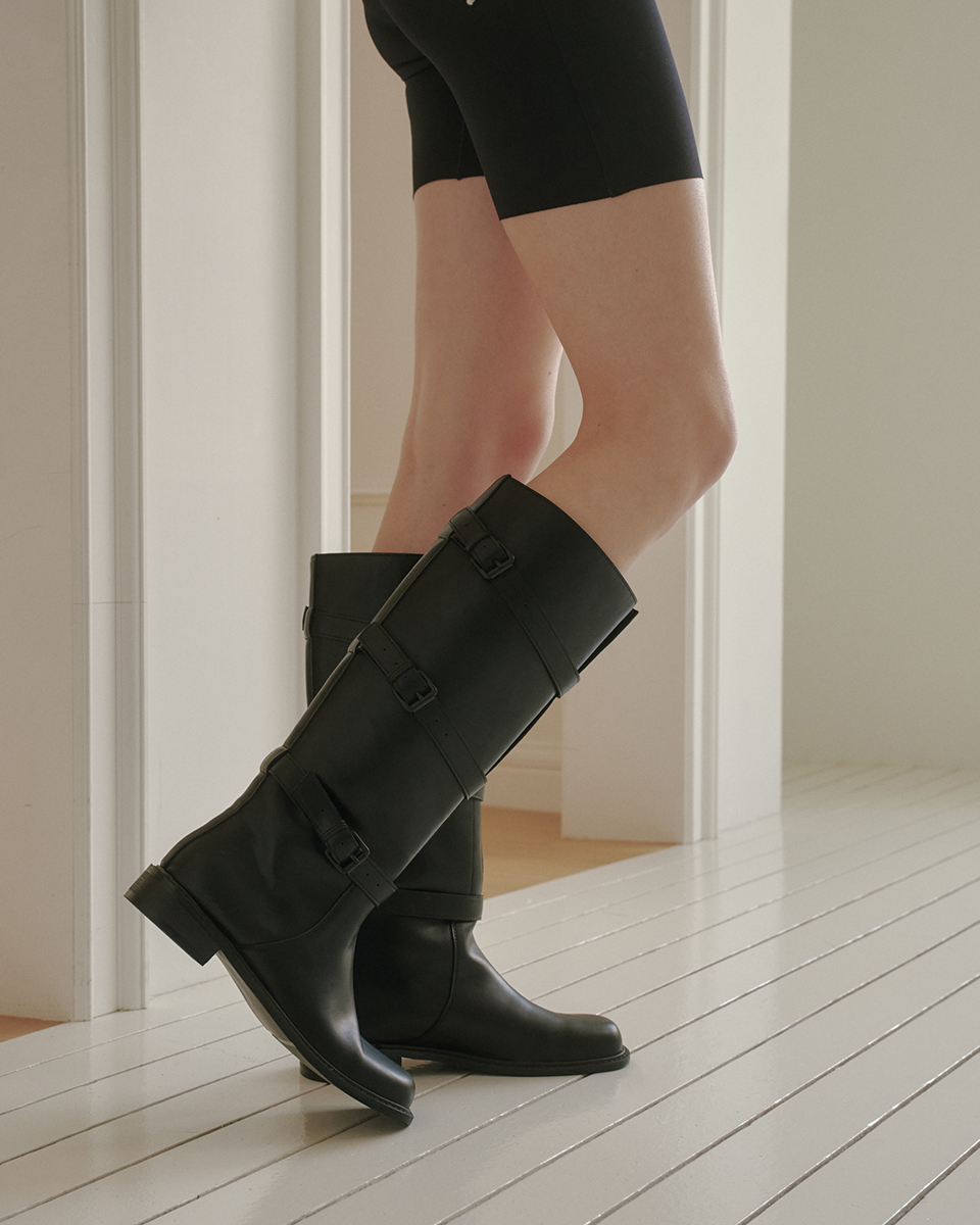 me562 Monica black buckle rider boots