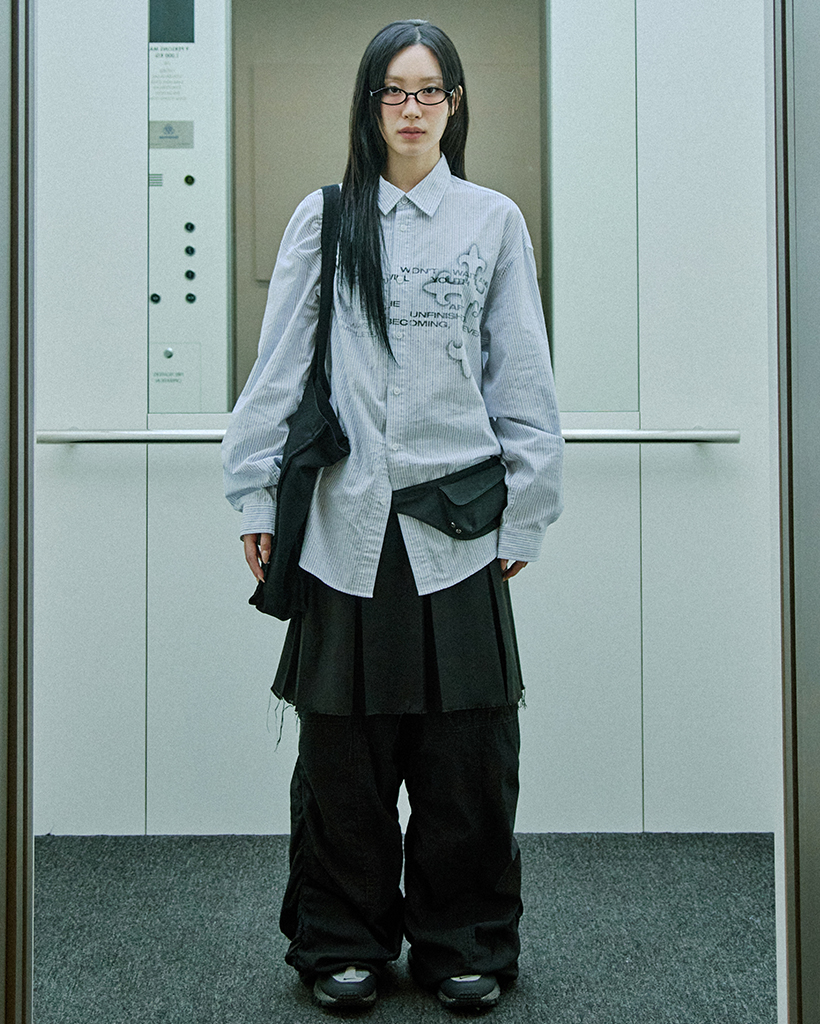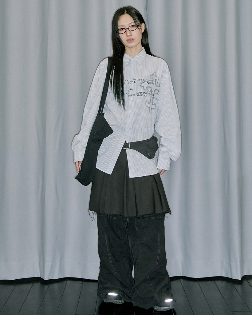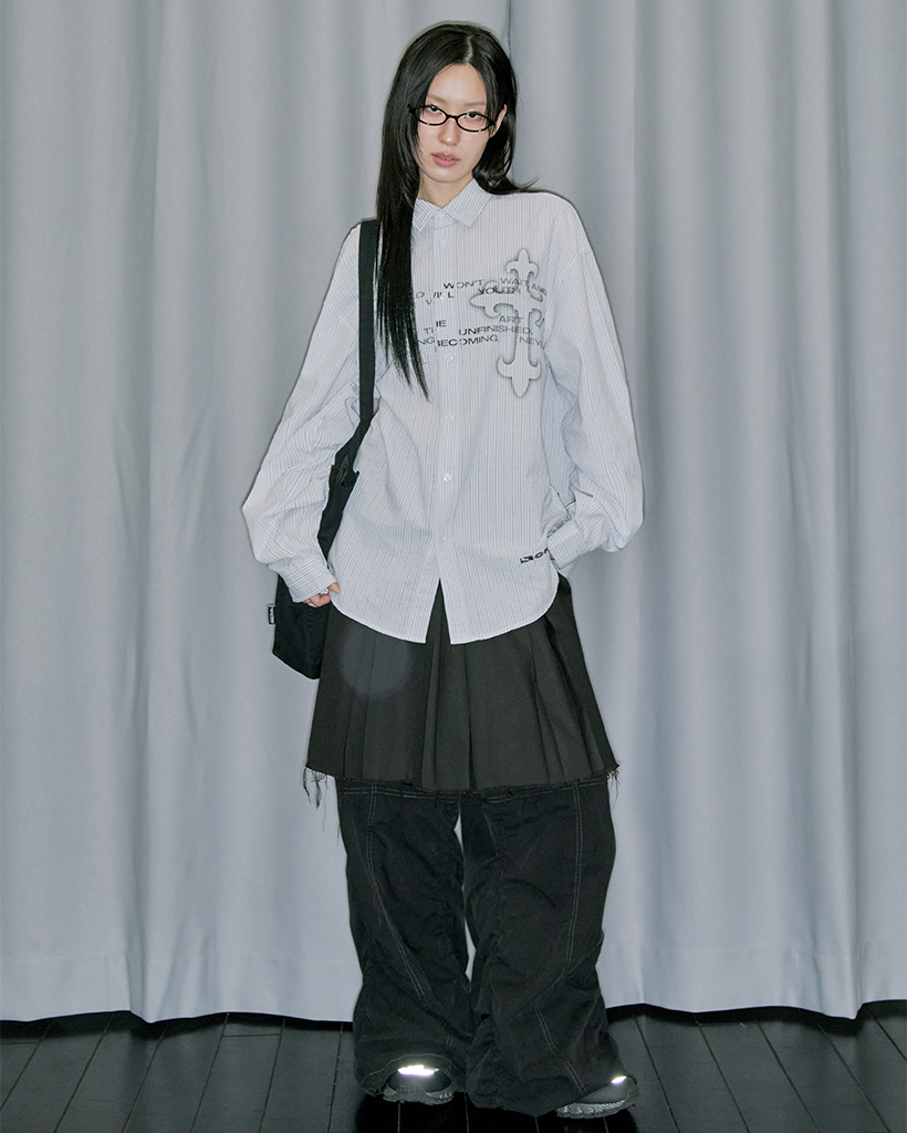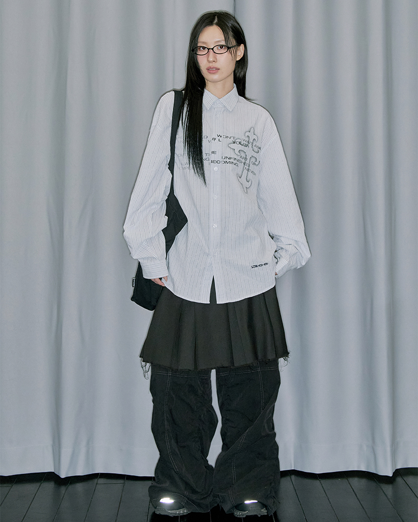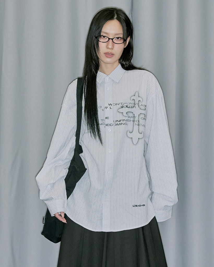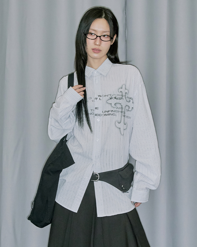 Cross Graphic Stripe Overfit Shirt - BLUE