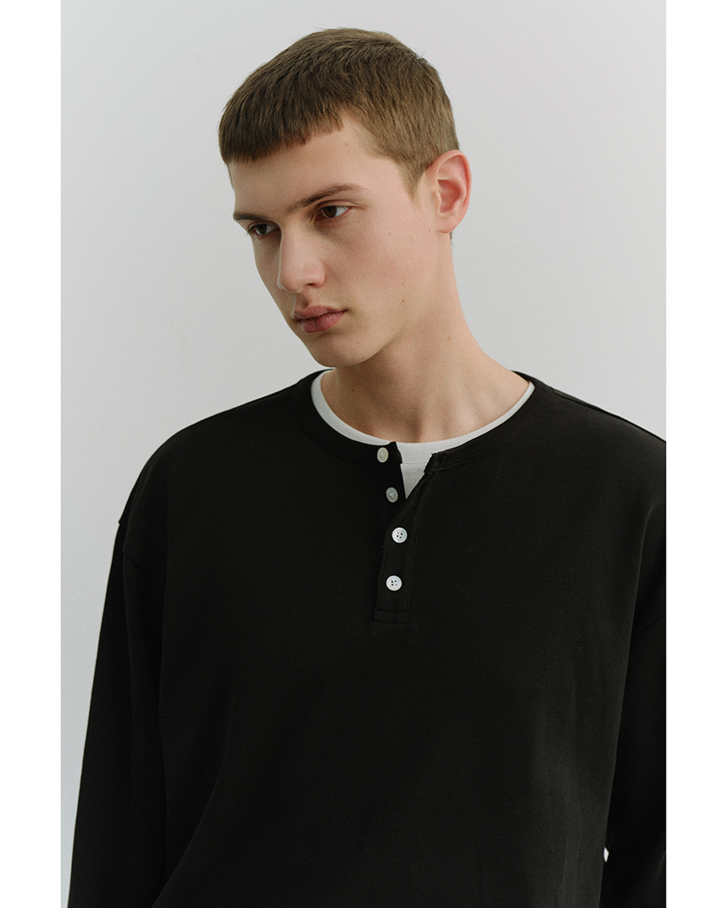 UNISEX HENLEY-NECK T-SHIRT BLACK_M_UDTS6A109BK