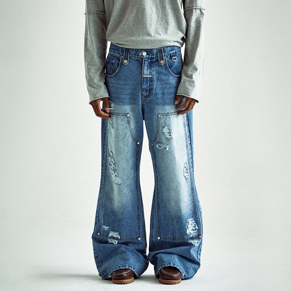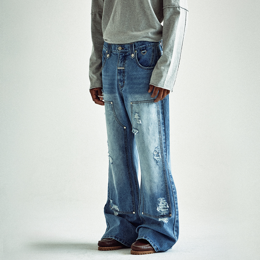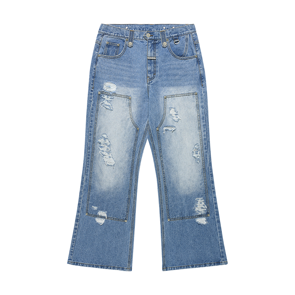 DESTROYED BOOTS CUT DENIM PANTS LIGHT BLUE