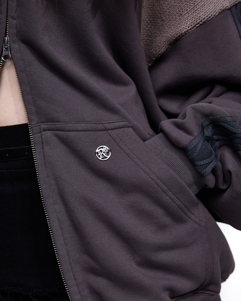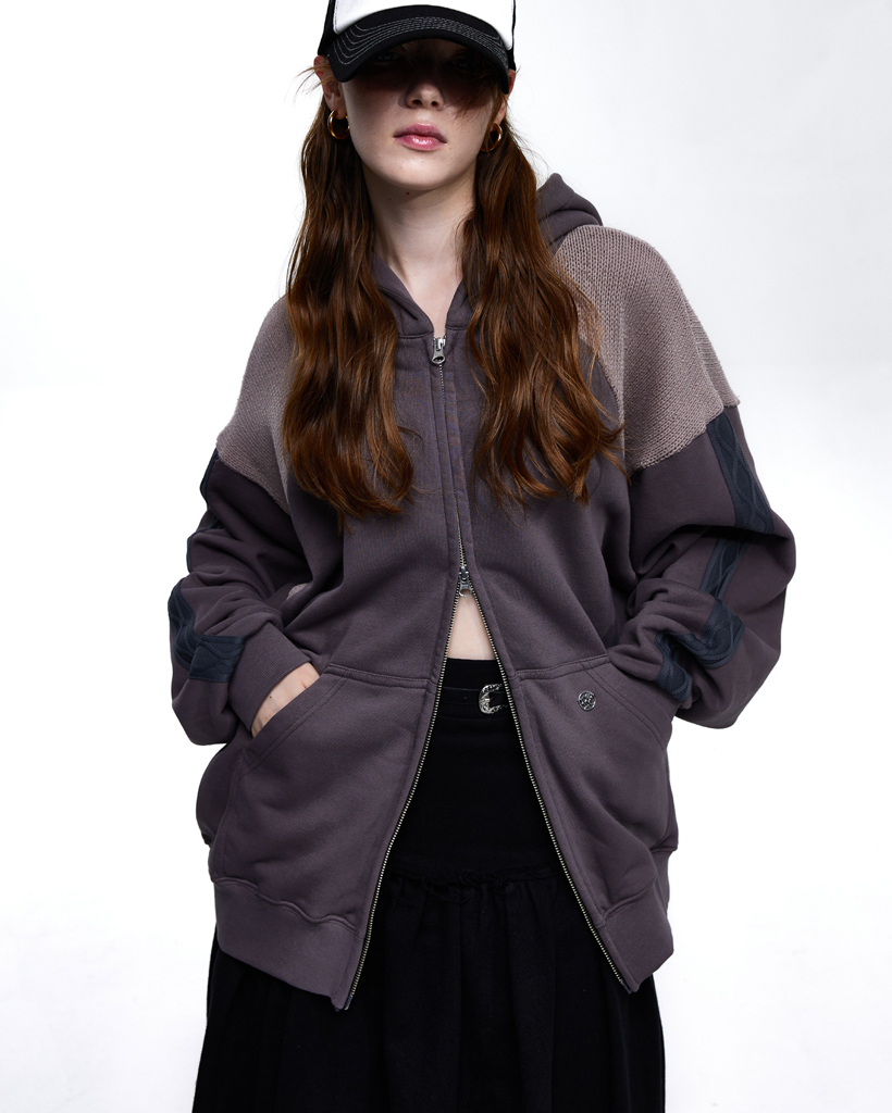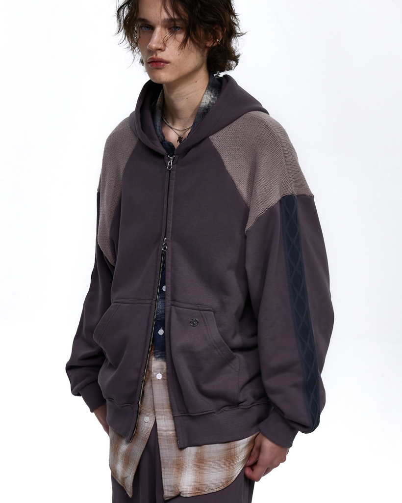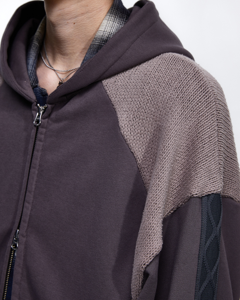 KNIT MIXED HOOD ZIPUP - CHARCOAL