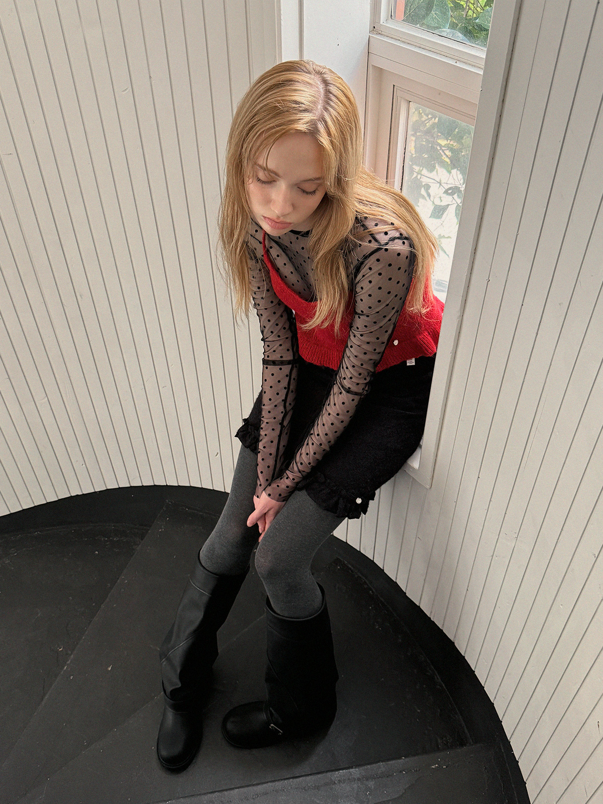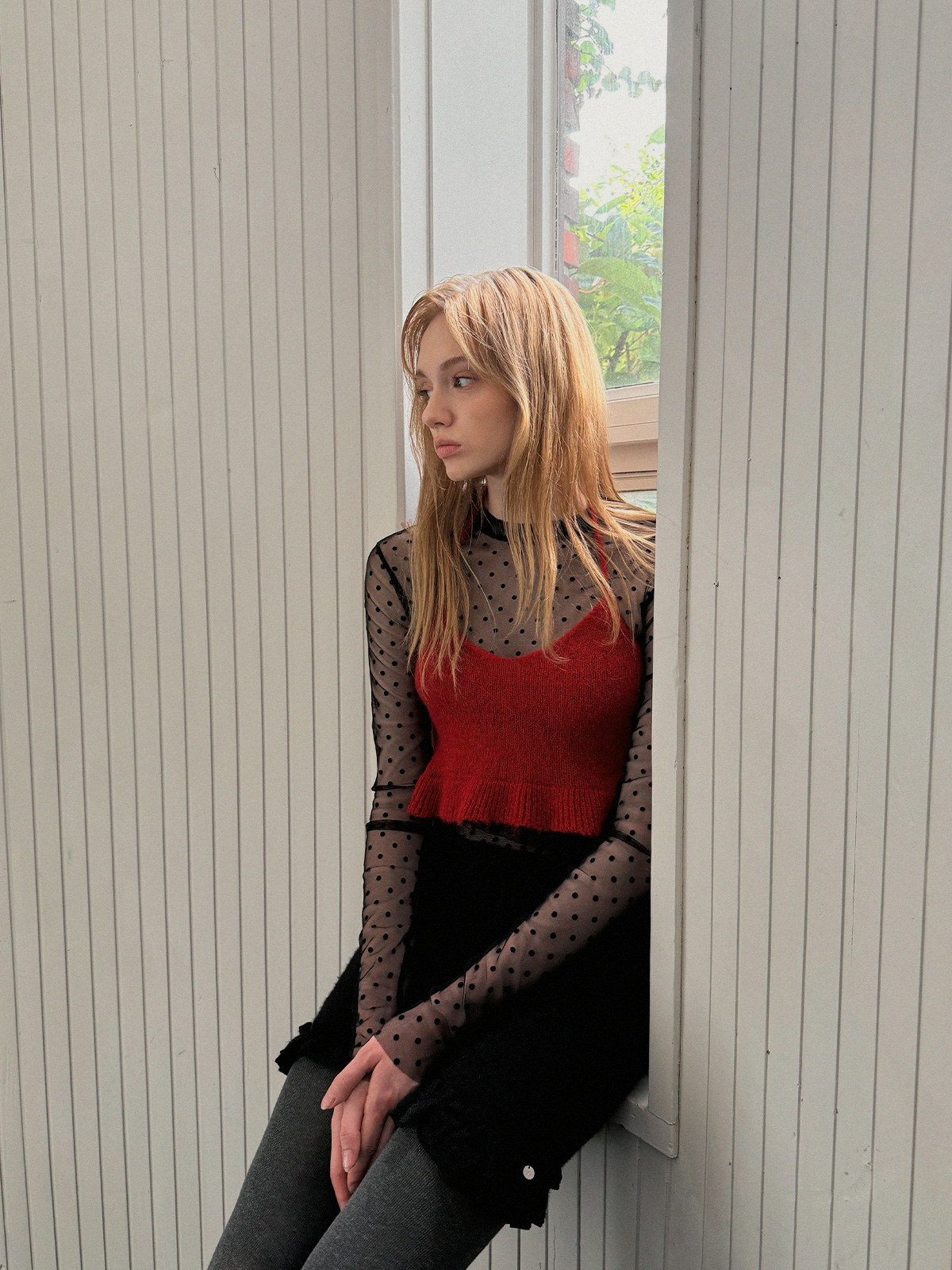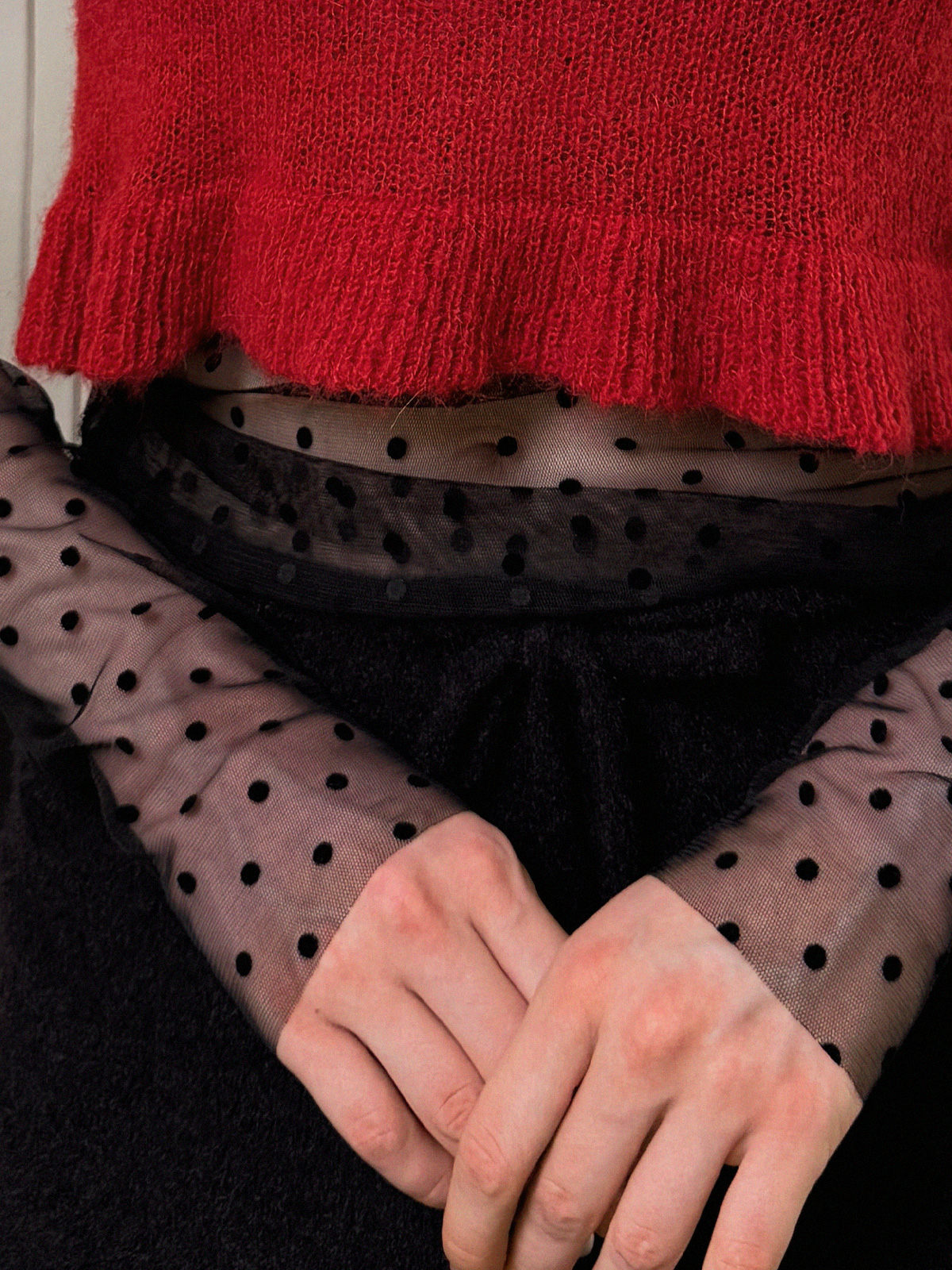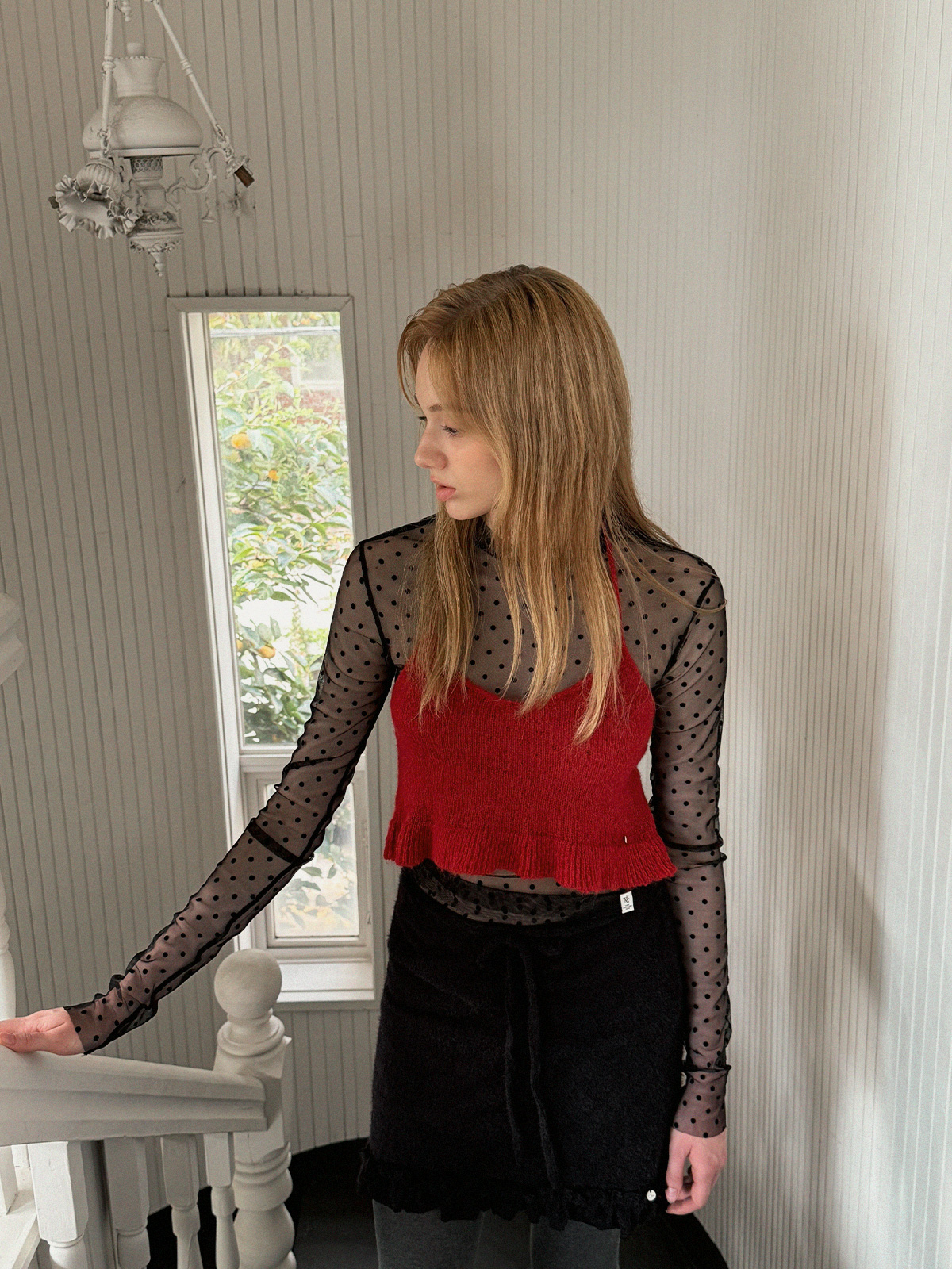Blanc Dot Sheer Long-Sleeve Top