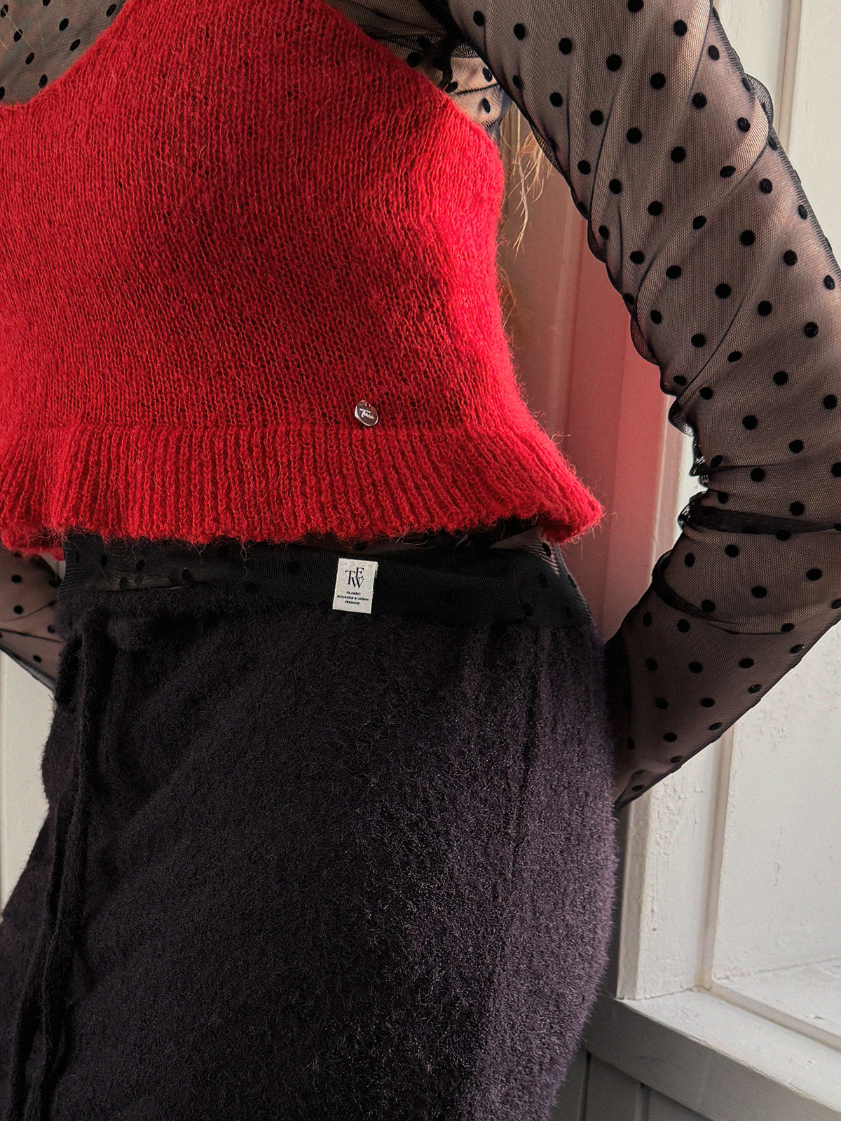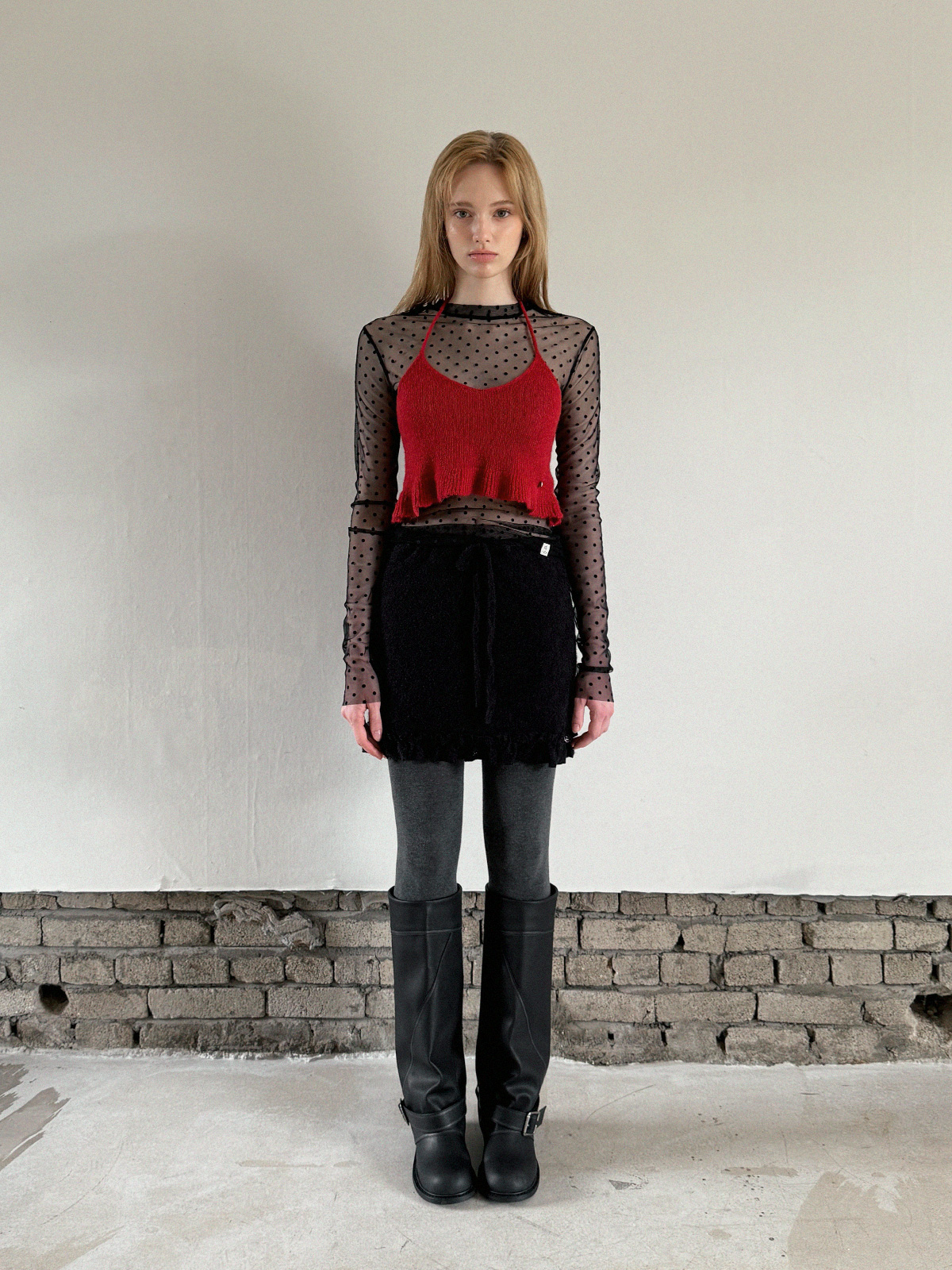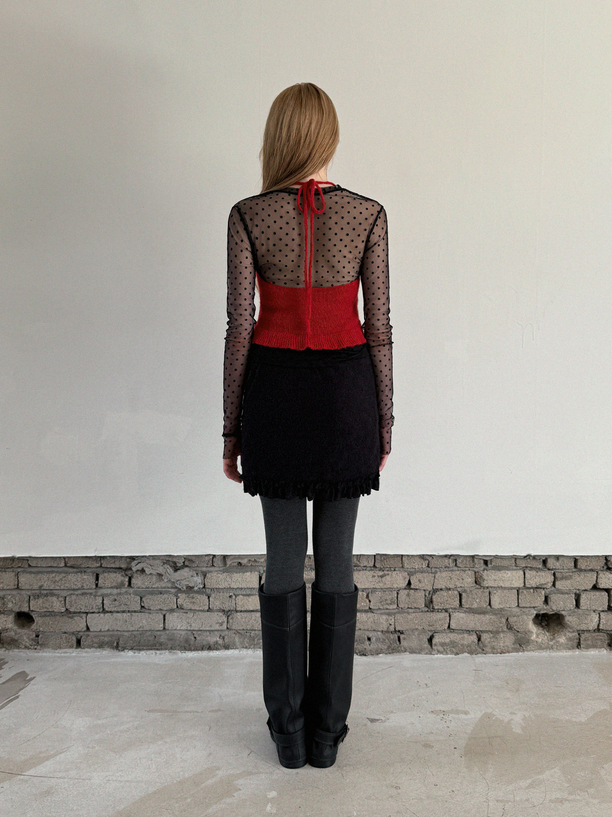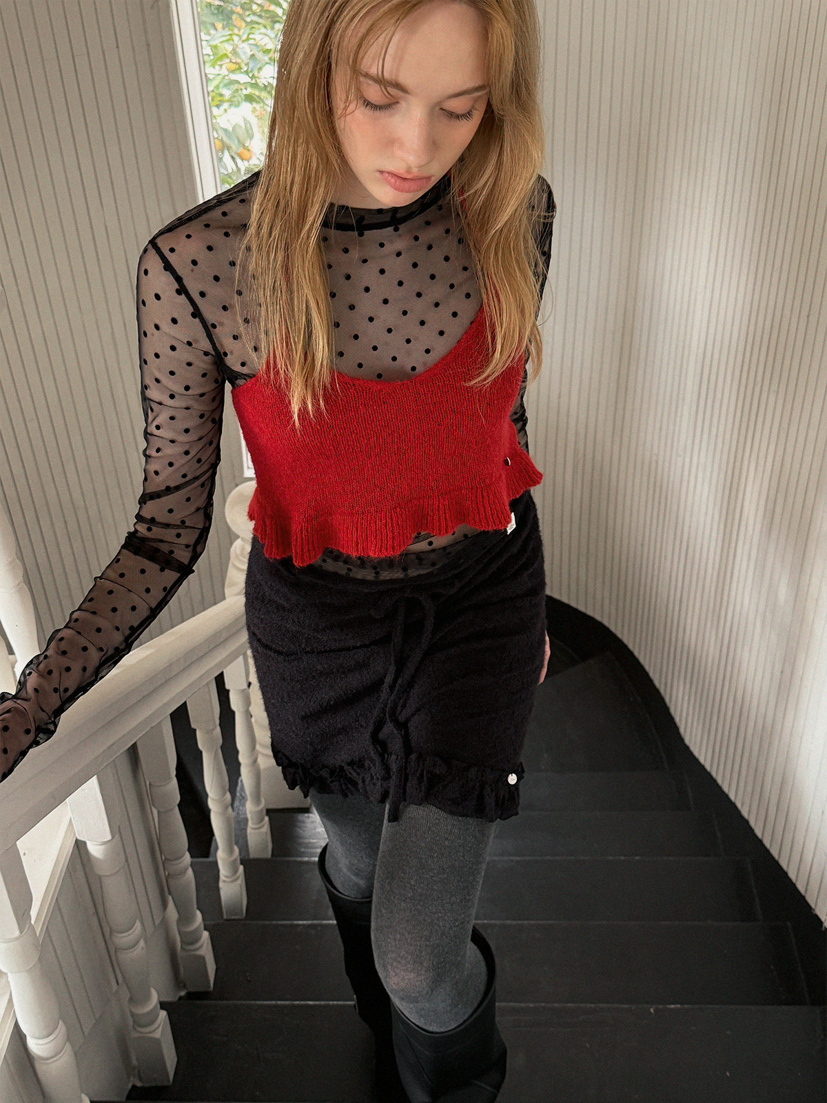 Blanc Dot Sheer Long-Sleeve Top